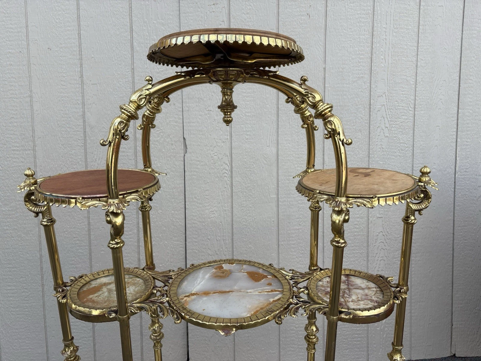 67147 Antique Victorian Brass and marble Etergie Display Cabinet Curio