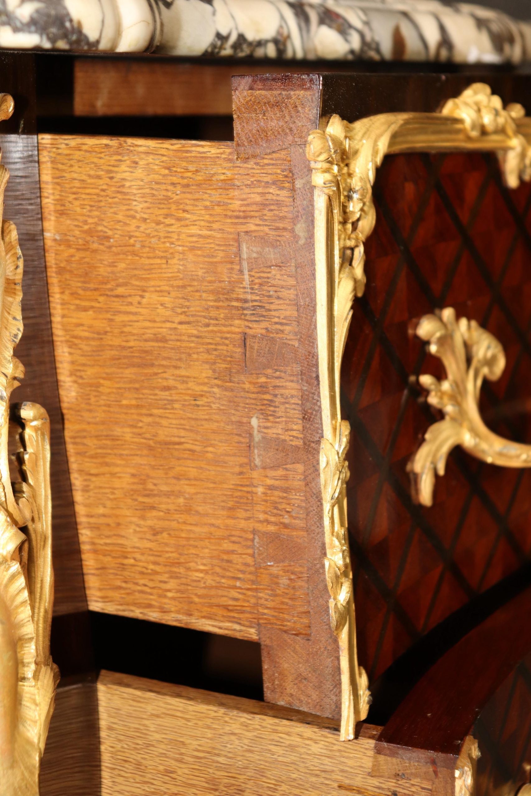 Antique 19th Century French Louis XV Style Ormolu Mounted Marble Top Commode by Maison Roussillon for Alavone and Co, Chest of Drawers