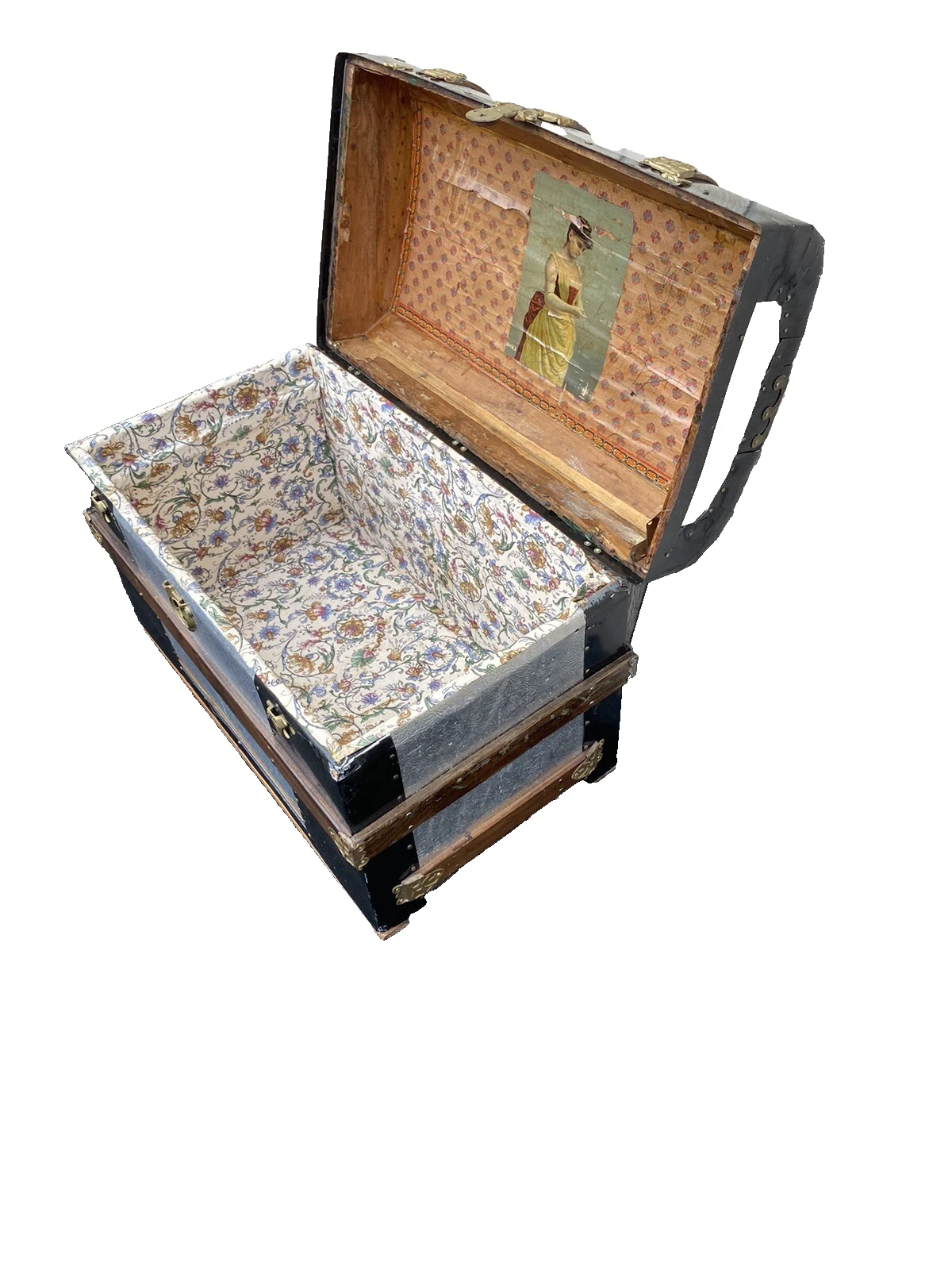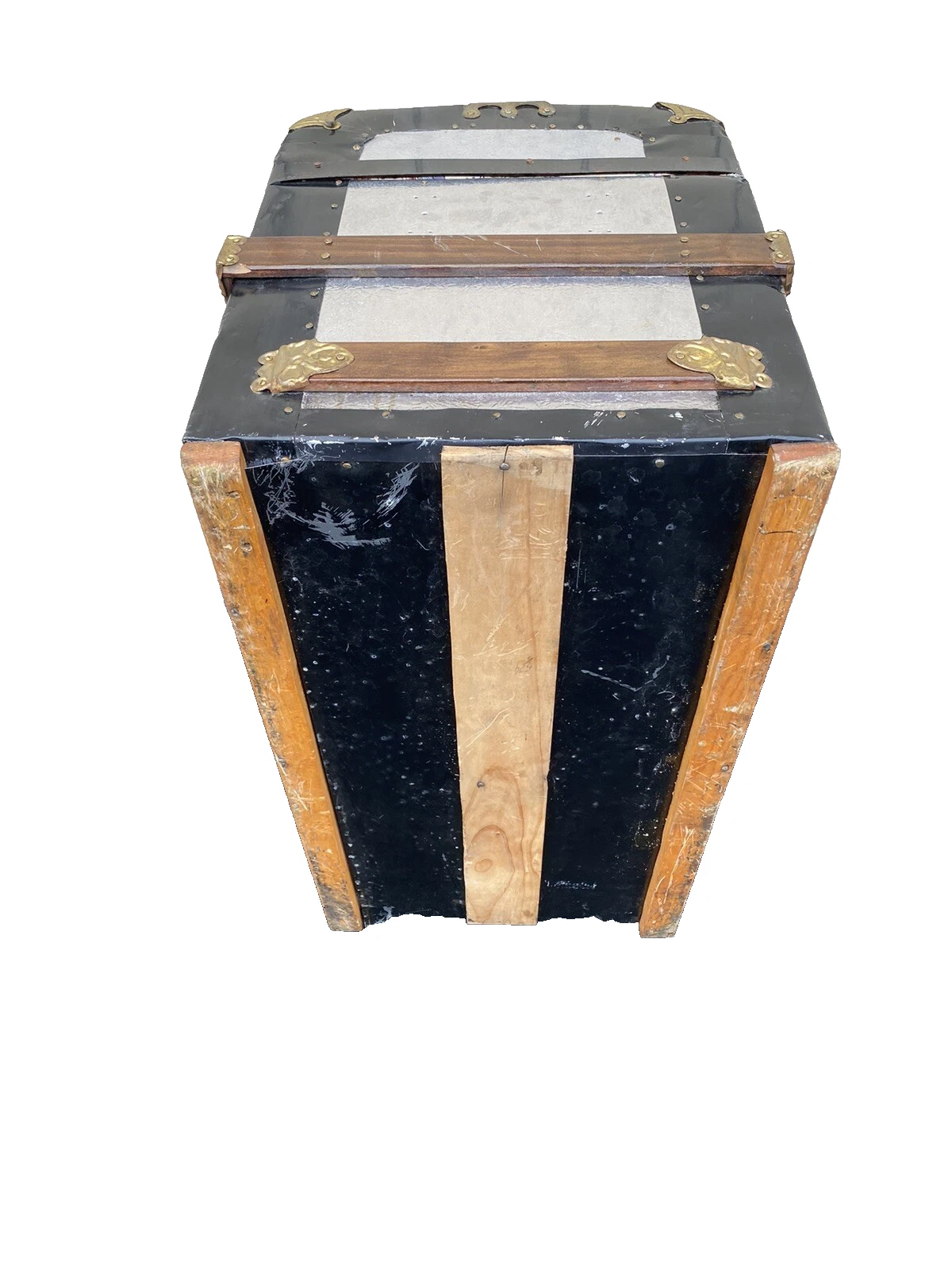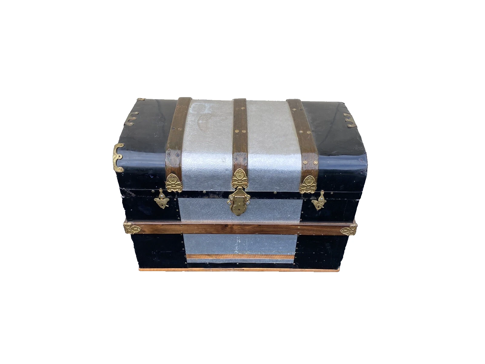 This charming antique dome-top trunk, crafted in the early 20th century, exudes a warmth and character that only decades of use can impart. Its multicolored exterior showcases the artistry of handmade construction, while the gently rounded lid hints at countless stories held within its sturdy frame. Restored by a previous owner, this piece is not only a functional storage solution but also a beautiful testament to American craftsmanship, inviting you to fill it with your own cherished memories.