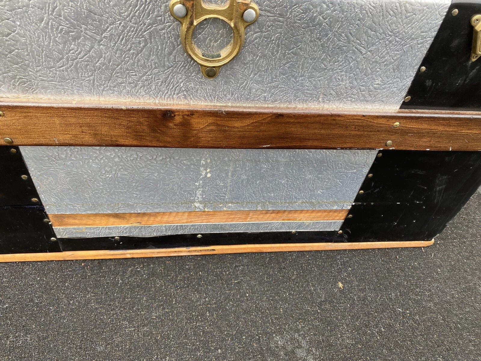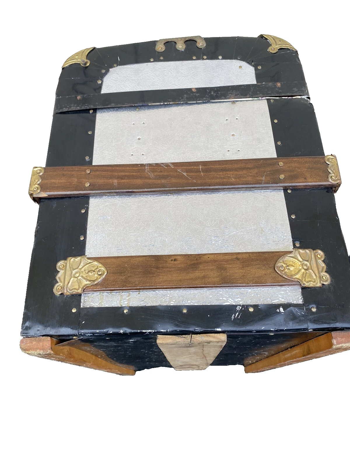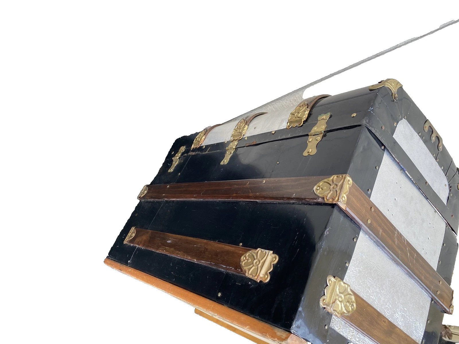 This charming antique dome-top trunk, crafted in the early 20th century, exudes a warmth and character that only decades of use can impart. Its multicolored exterior showcases the artistry of handmade construction, while the gently rounded lid hints at countless stories held within its sturdy frame. Restored by a previous owner, this piece is not only a functional storage solution but also a beautiful testament to American craftsmanship, inviting you to fill it with your own cherished memories.
