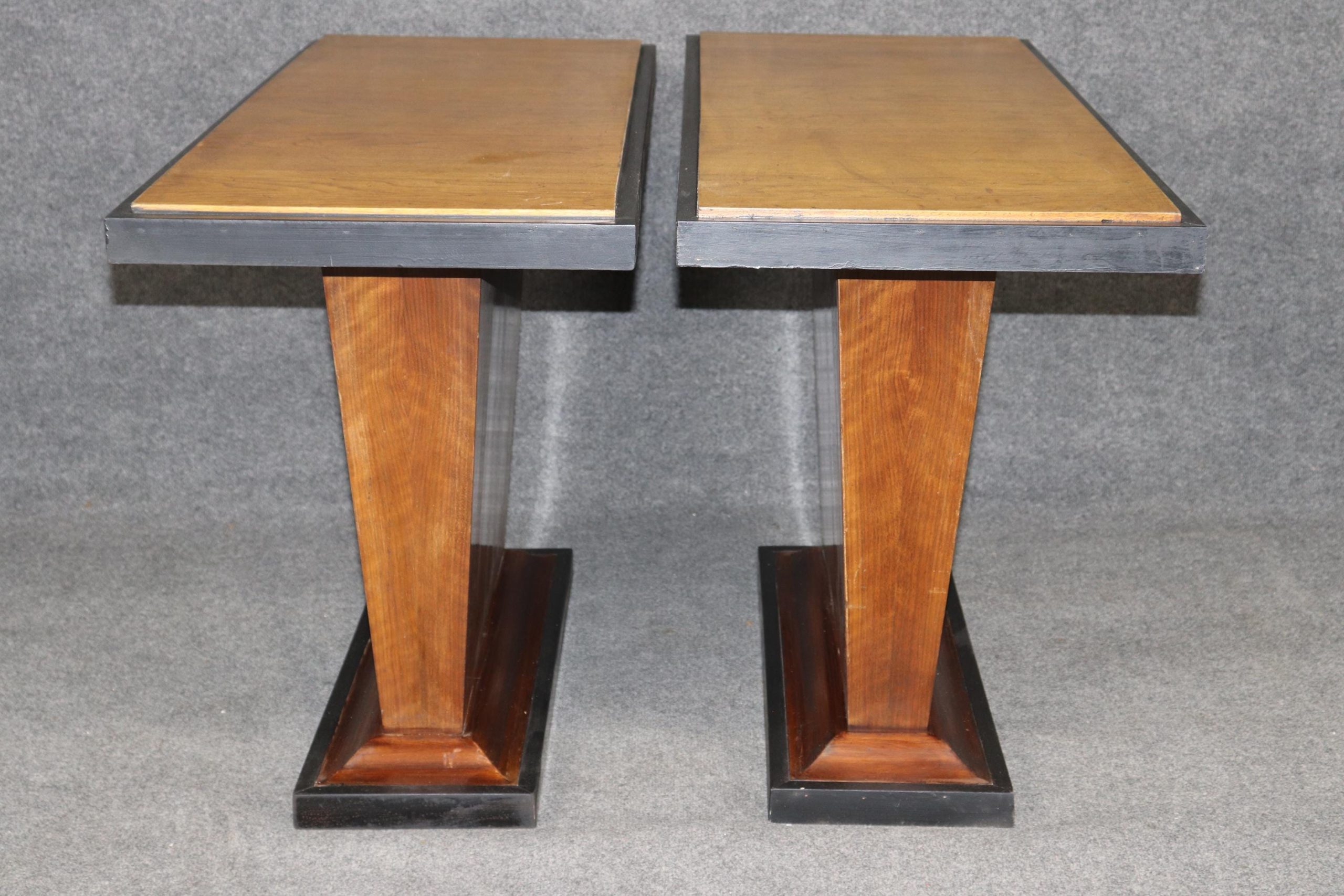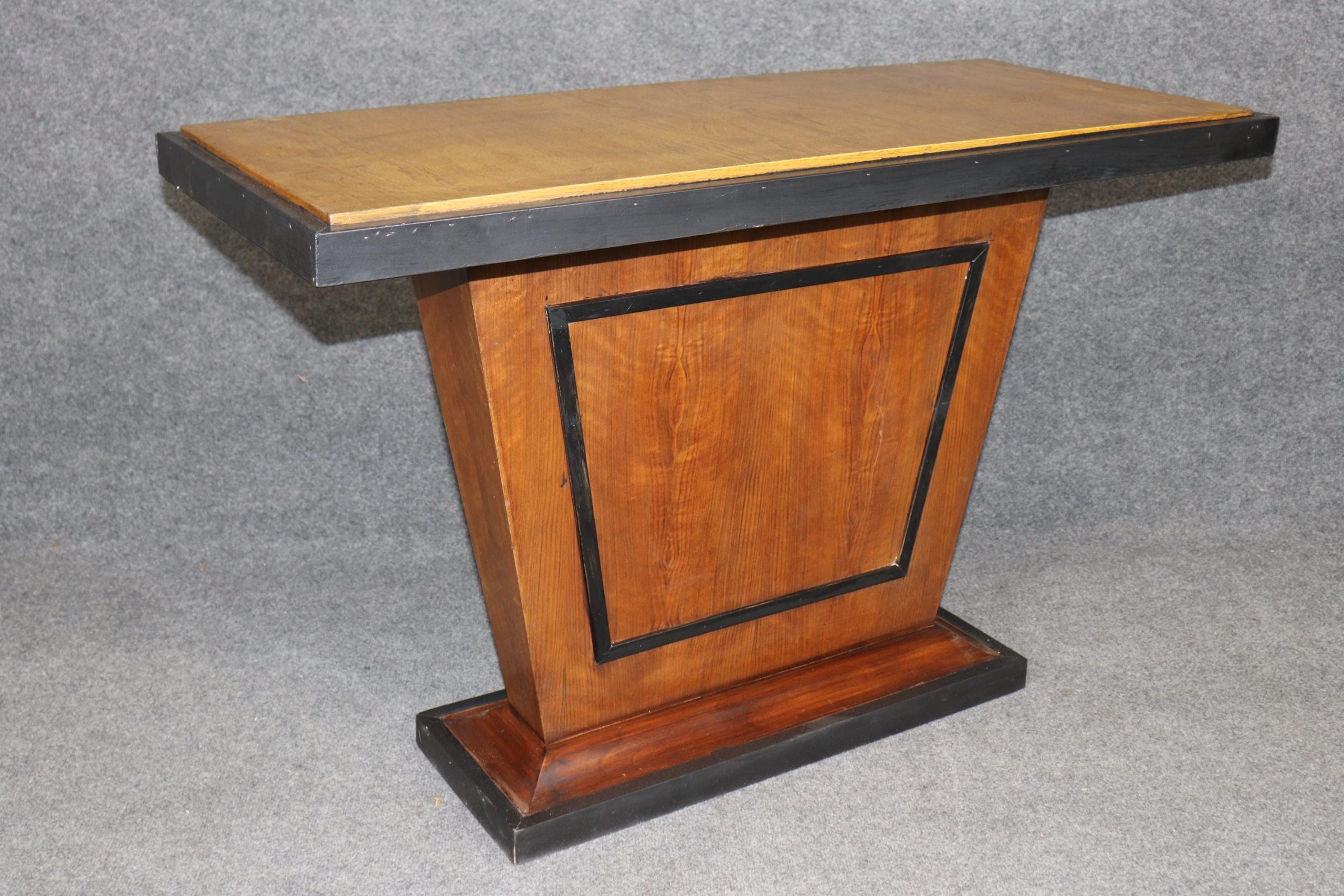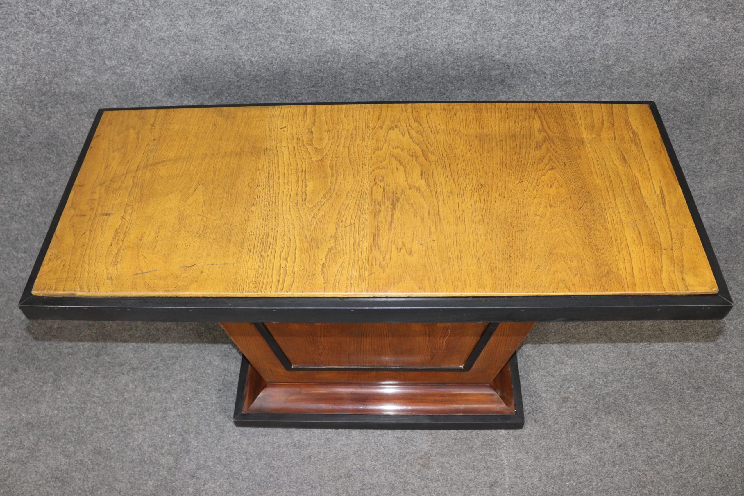 The rarity of finding a matched pair makes these console tables especially desirable. Whether placed symmetrically in a grand entry, flanking a doorway, or used individually in different rooms, they bring an unmistakable sense of Parisian Art Deco glamour while remaining practical and versatile in scale. The pair is in good antique condition with the exception of some light surface scratches, Minor finish loss and normal age related wear. As to be expected with items of age and use.