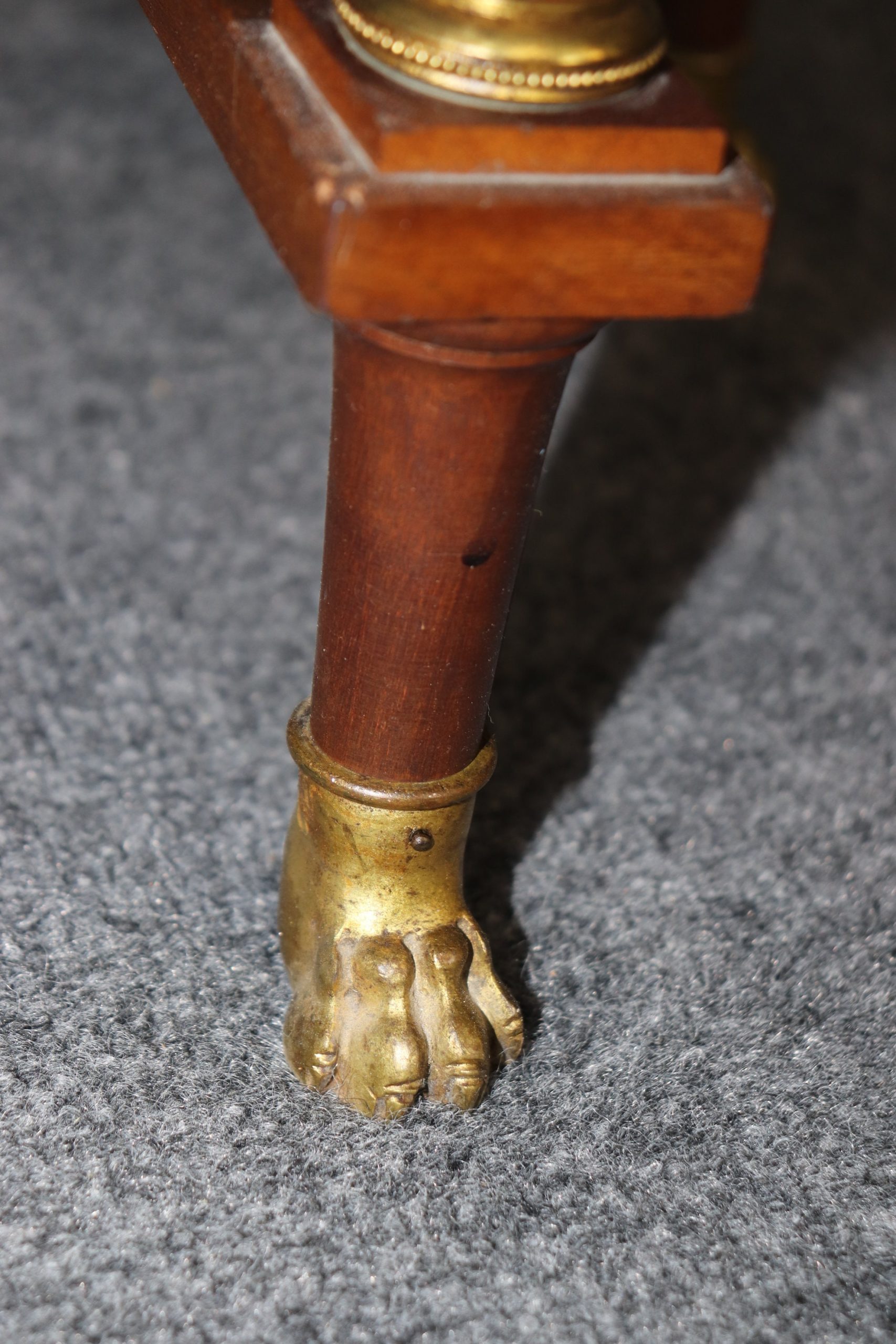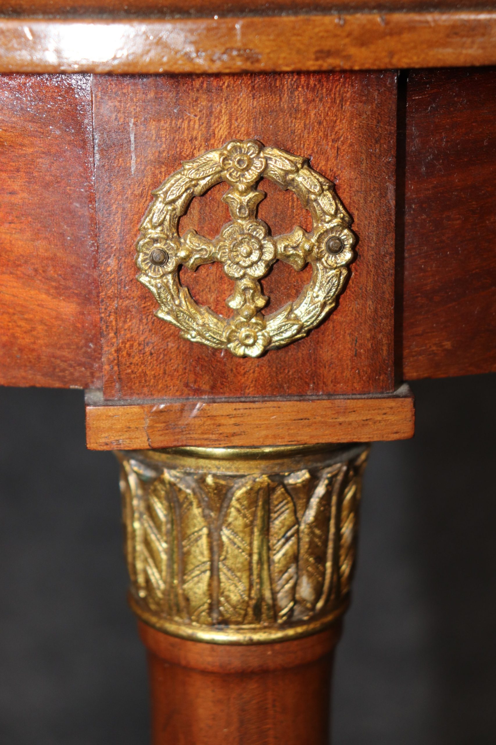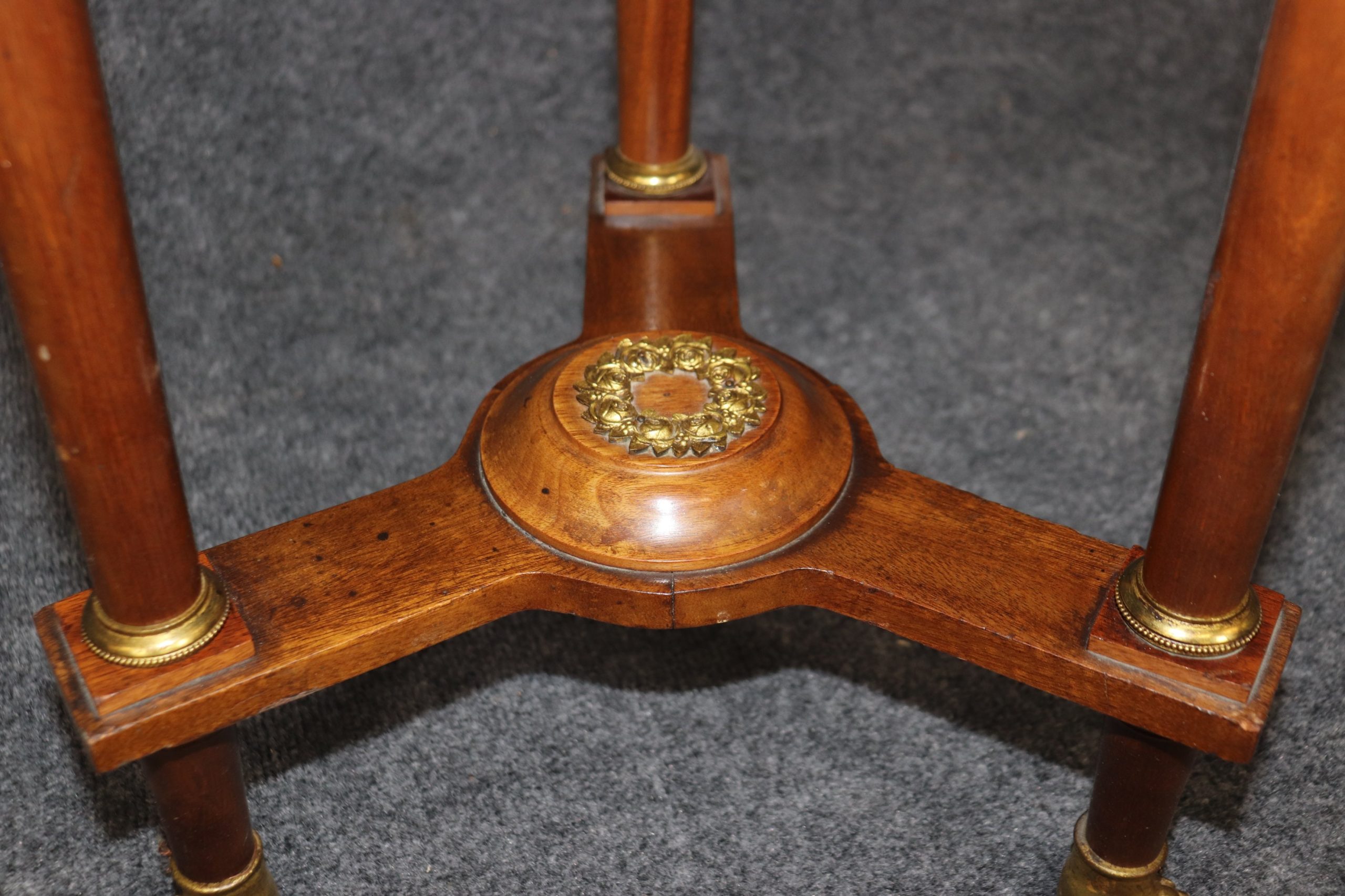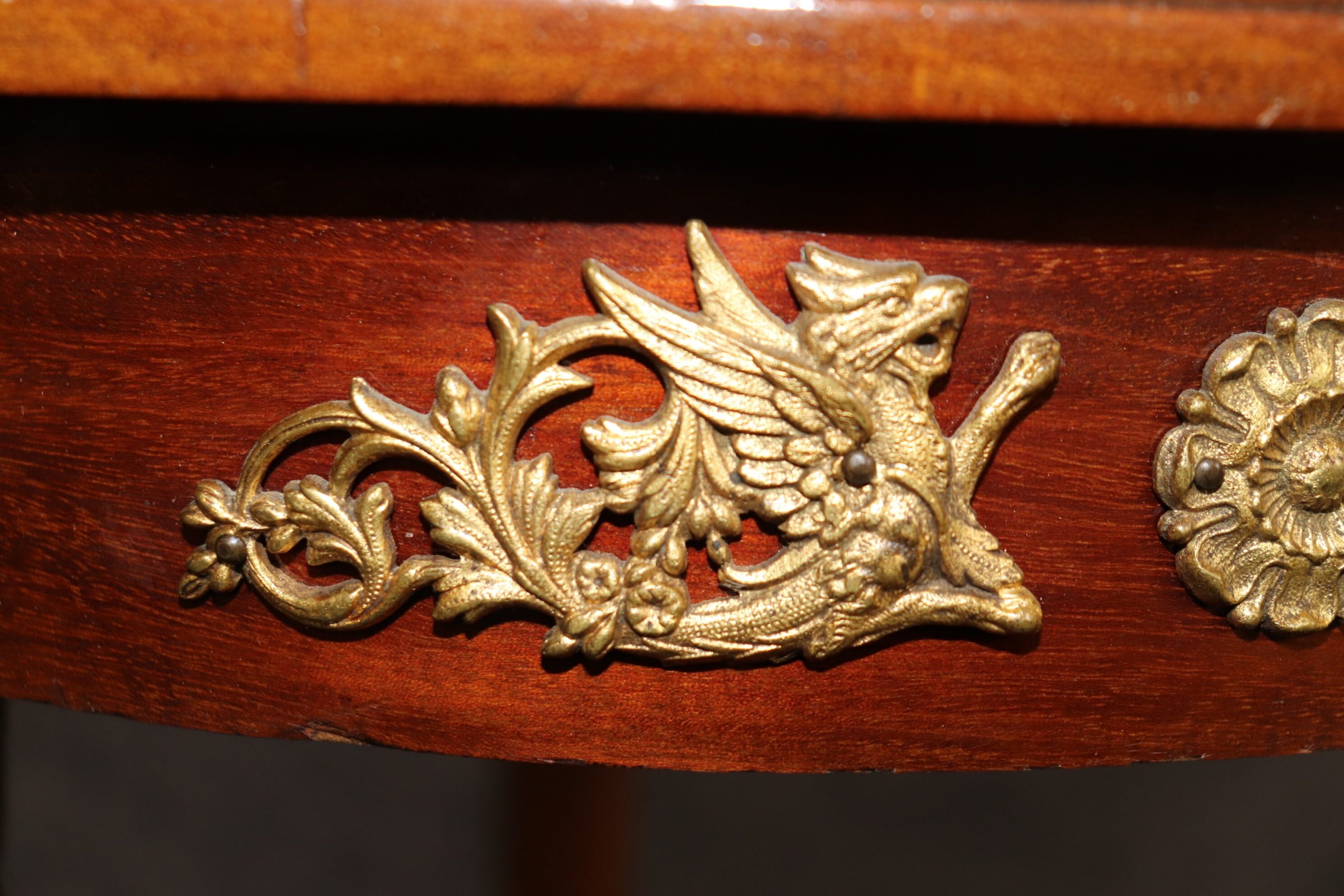 This French Empire style marble top end table accent table is an exceptional example of fine early 20th century French furniture! If you look at the photos provided, you can see the attention to detail in the bronze decorations. This will certainly be a conversation piece in your entryway, office, living room, bedroom, dining room or place of your choosing! The table is in good antique condition with minor surface scratches as well as some imperfections to the marble as to be expected with an antique item!