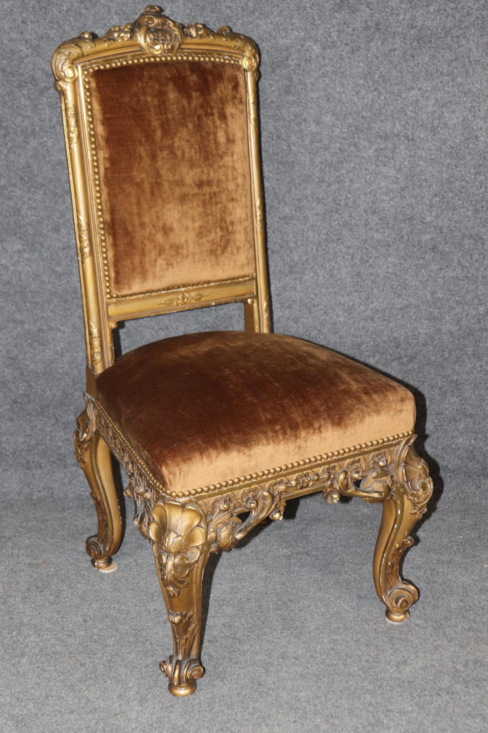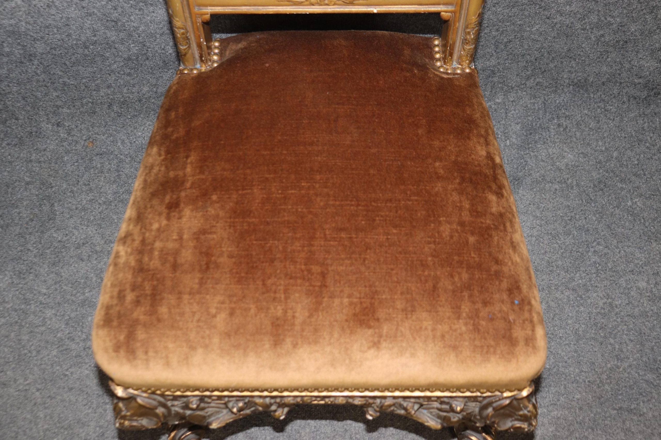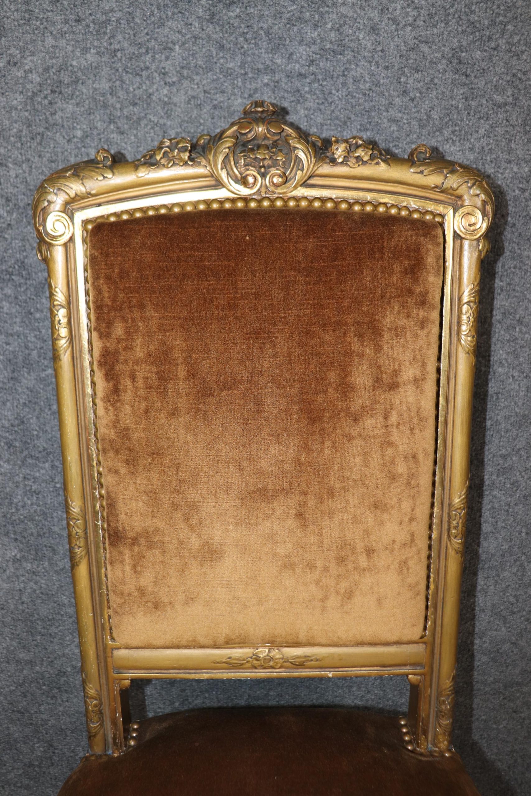 This antique turn of the century set of 4 French Louis XV style side chairs is made with immense detail and of the highest quality! If you look at the photos provided, you can see the beautifully carved frames along with the luxurious upholstery. These chairs are perfect for you and your home, and will bring a sense of luxury and sophistication into your home or place of choosing! These chairs can be used as dining room chairs, as kitchen chairs, or office chairs. (FYI all chairs are side chairs). One nice aspect is that not only do the chairs look good but they can also be used on a daily basis as they are sturdy and strong. Antique furniture in general has stood the test of time and this set of chairs is no exception! The chairs are in good antique condition with light surface scratches, minor finish loss as to be expected! The upholstery appears to be in good condition, but may show minor signs of wear. Otherwise, good condition.