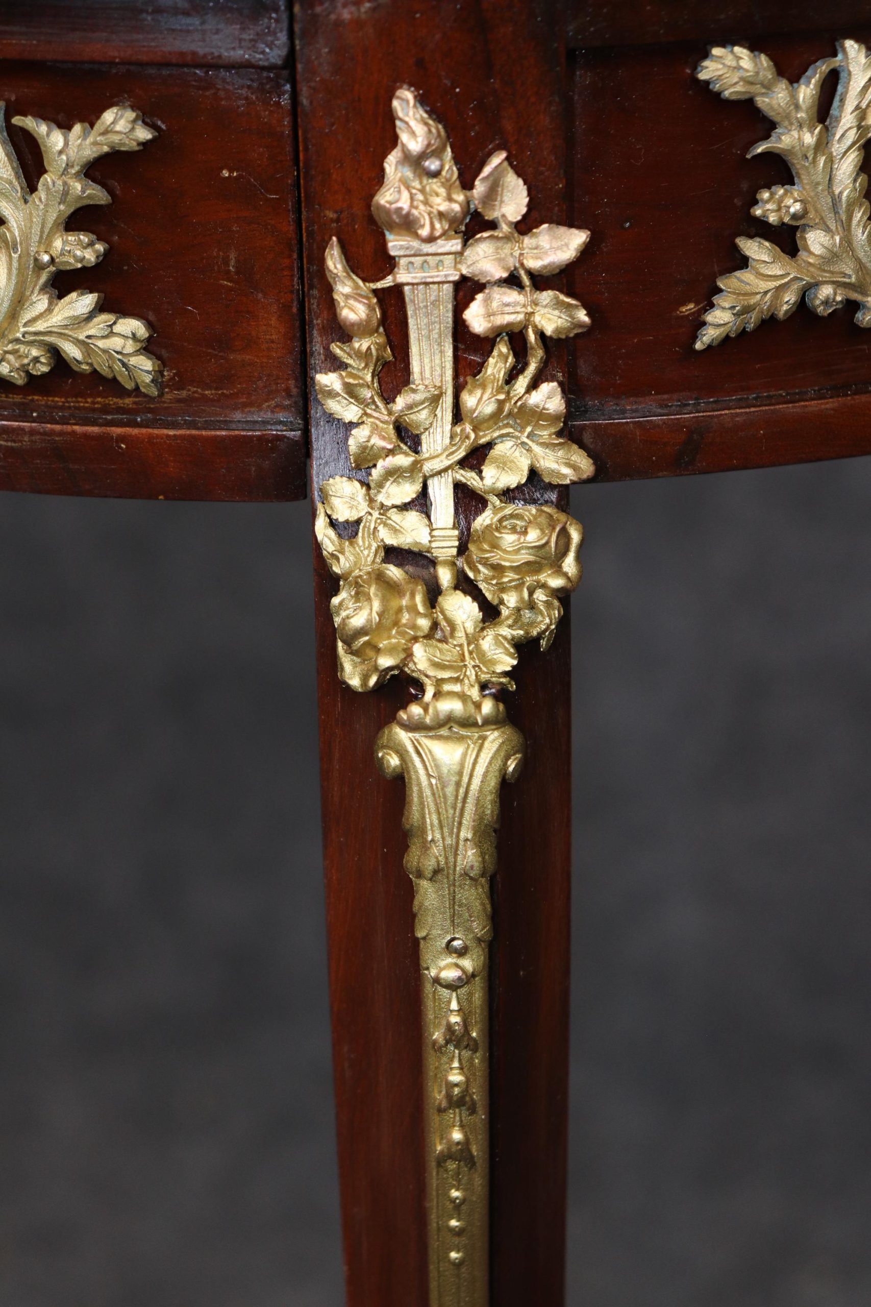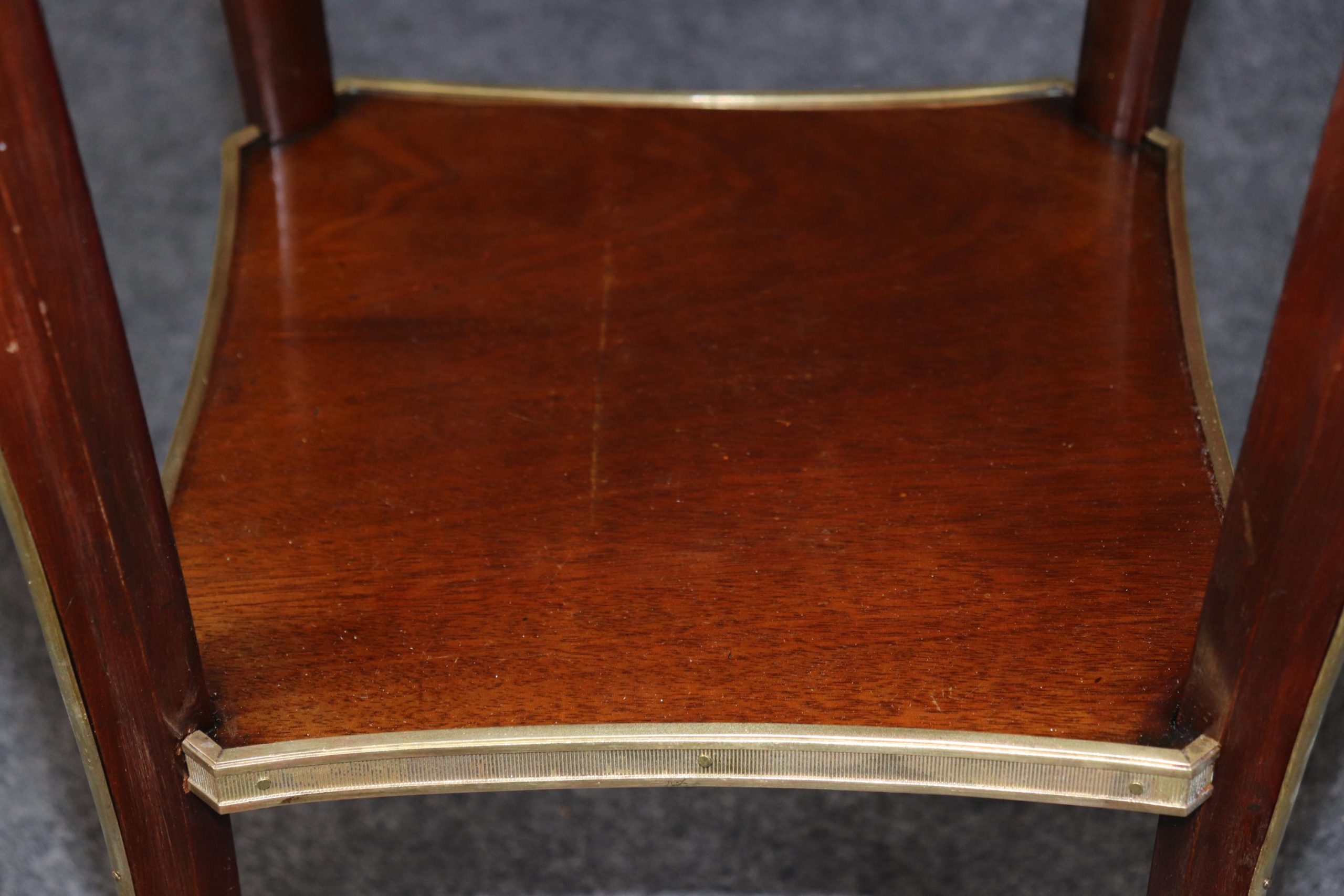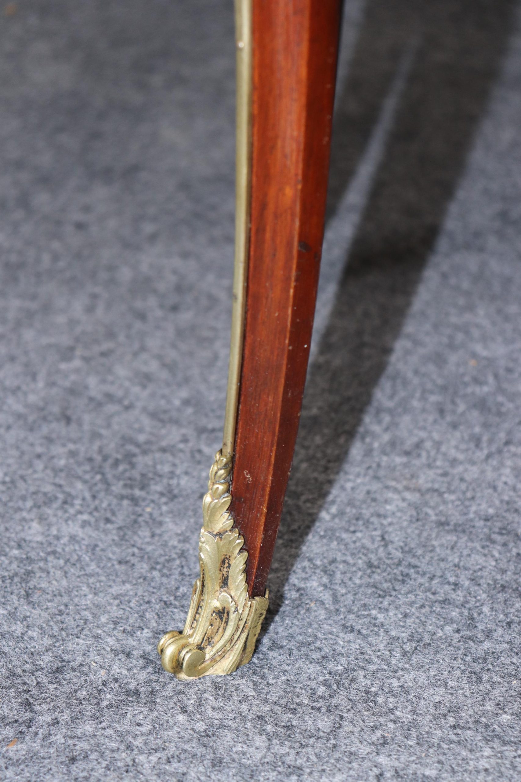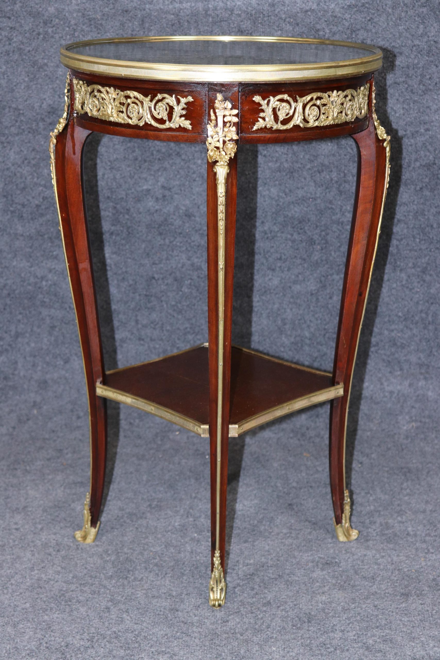 This antique French Louis XV style marble top end table, in the manner of Francois Linke, is made of the highest quality and is bound to bring class and character into your home or place of choosing! François Linke was a leading Parisian ébéniste of the late 19th and early 20th centuries. If you look at the photos provided, you will see the beautiful verdi green marble. The table is equipped with one small pull out drawer this piece can be used functionally on a daily basis. This is perfect for any entryway, bedroom, living room, hallway or office all while bringing a sense of luxury and character. Antique furniture and vintage pieces have stood the test of time and this end table is no exception. With its quality materials and great craftsmanship this piece is bound to last you and your family for many years to come. The table is in fine quality antique condition with some minor surface scratches as to be expected of an item from the 1920s.
