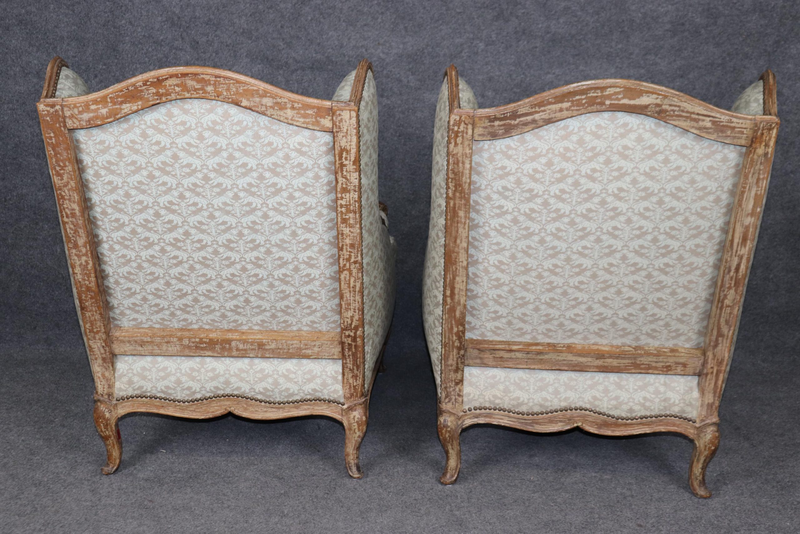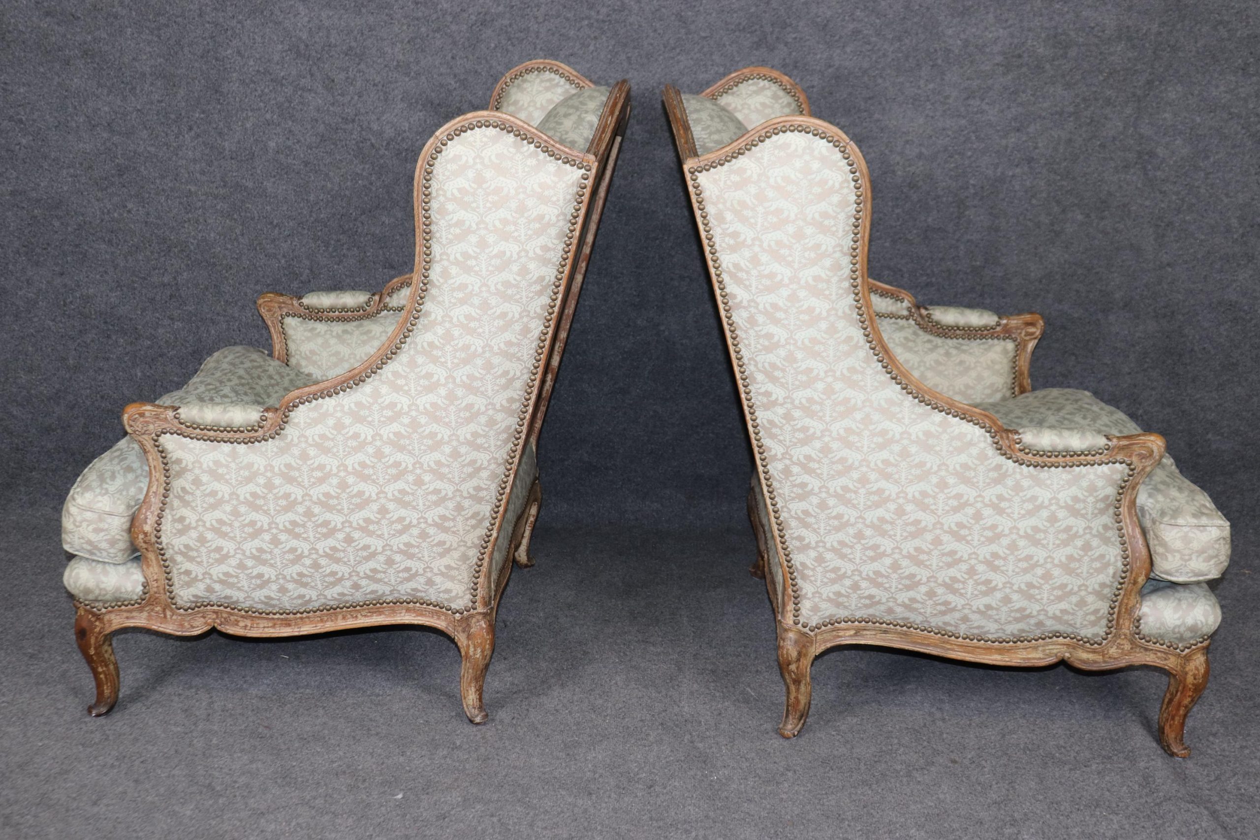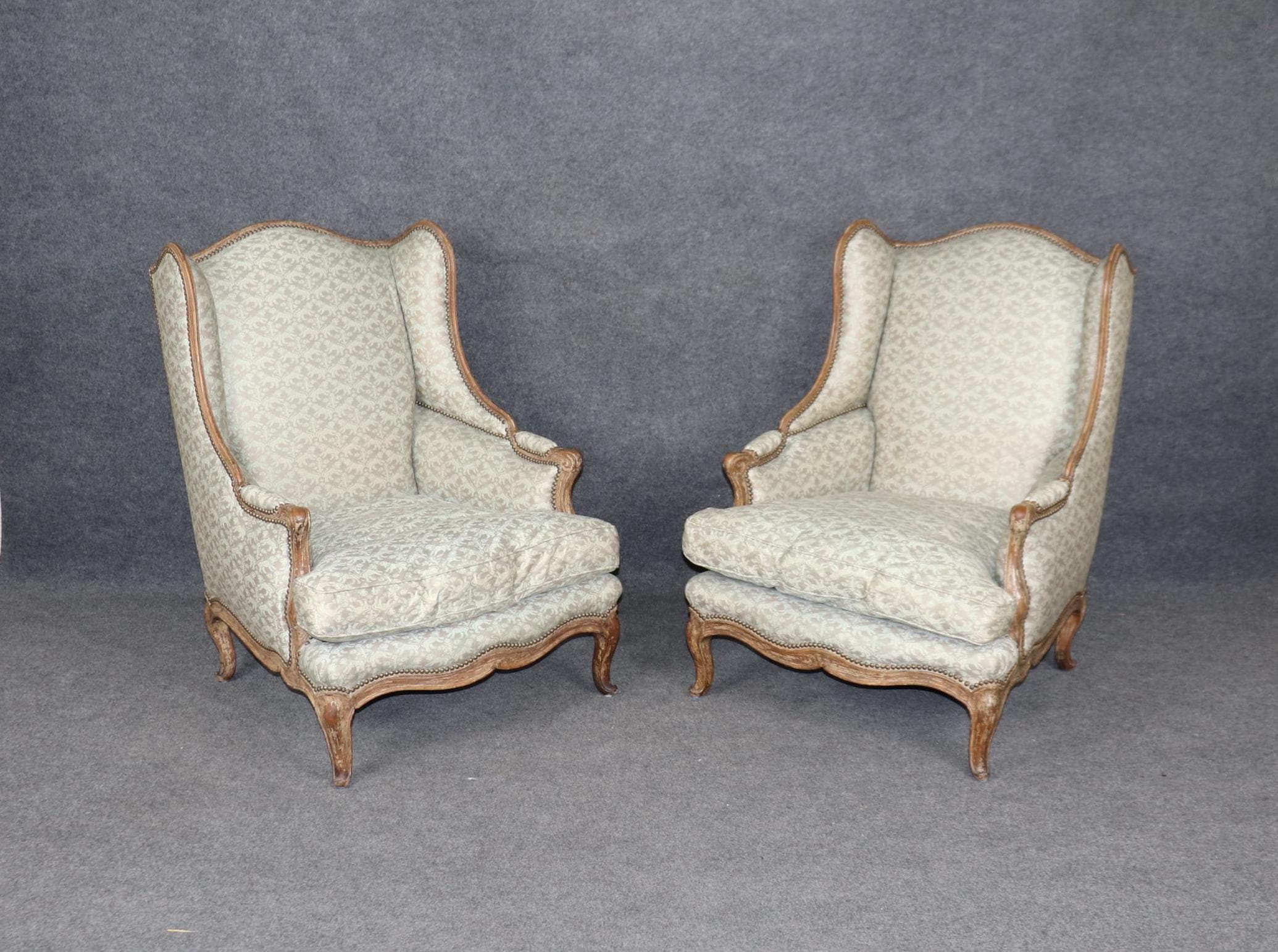 This pair of antique French Louis XV style wingback chairs is made of the highest quality and are truly lovely pieces! These chairs are bound to bring sophistication and a sense of class into your home or place of choosing! This pair is perfect for use as chairs in your living room, office, or foyer and can also be used as accent chairs for decoration if you’d like. This pair of wingback chairs is bound to have your guests mesmerized by their simplistic beauty and class and will have them talking about it for hours. The chairs are in good vintage condition with some scuffs to the feet. Otherwise good condition!