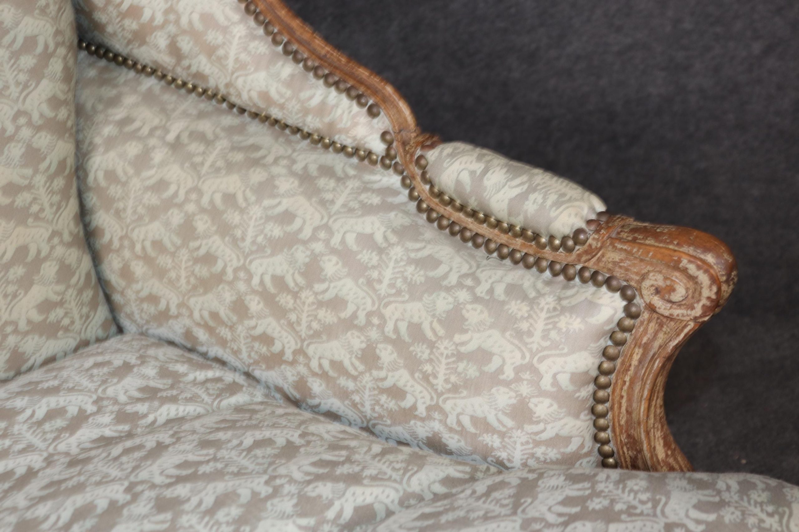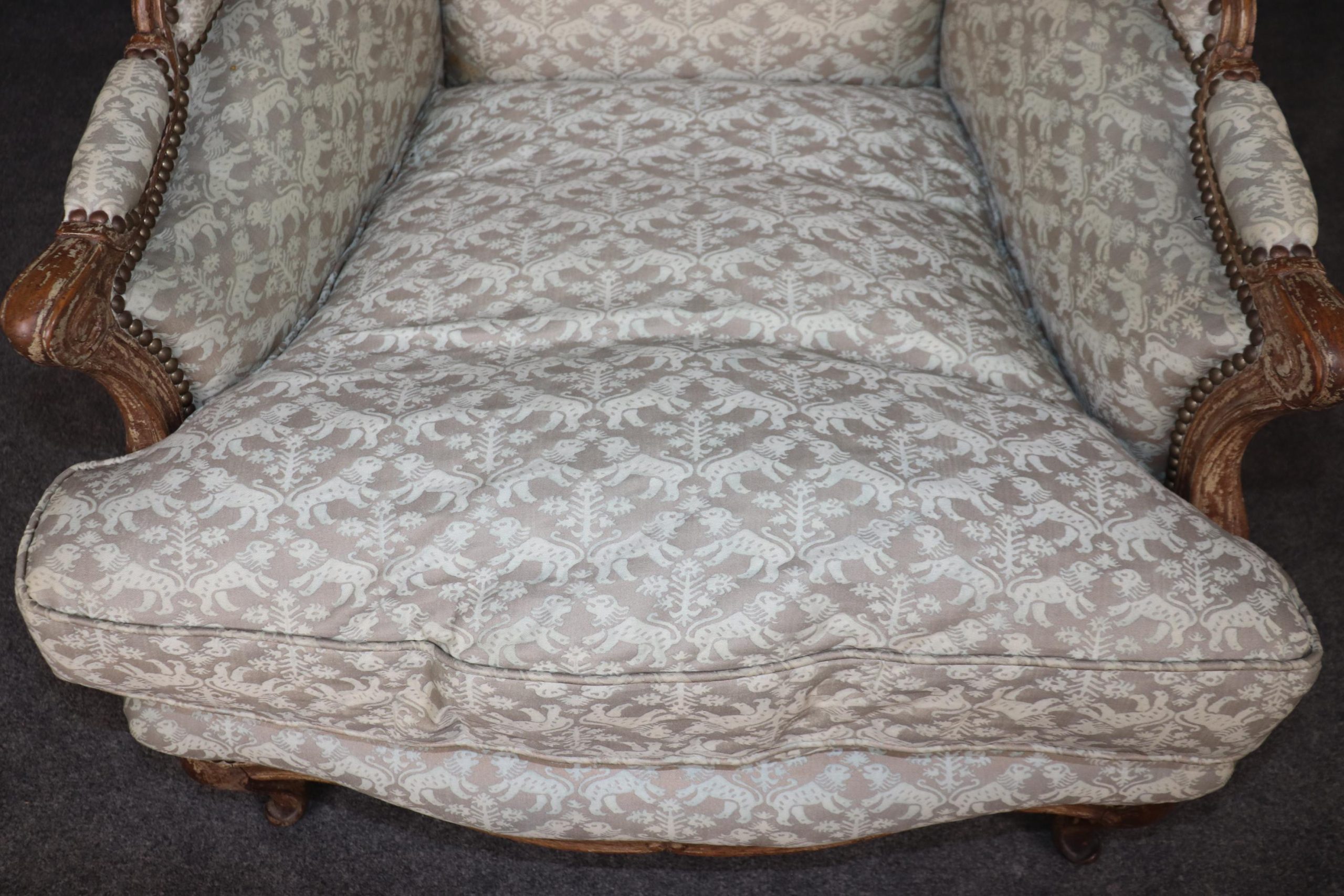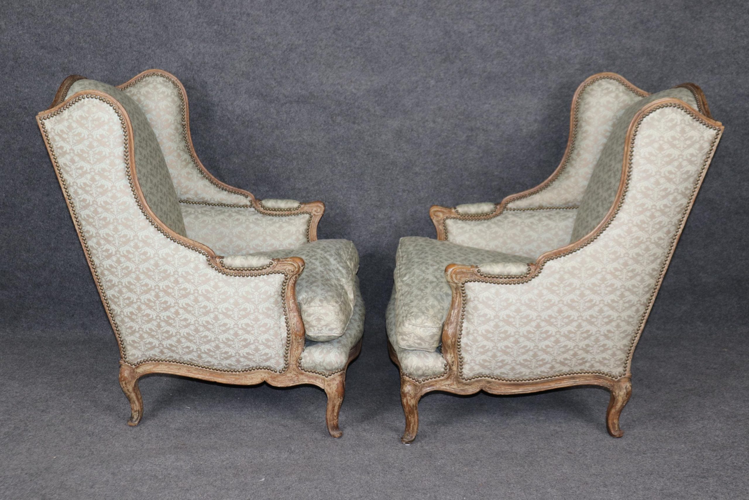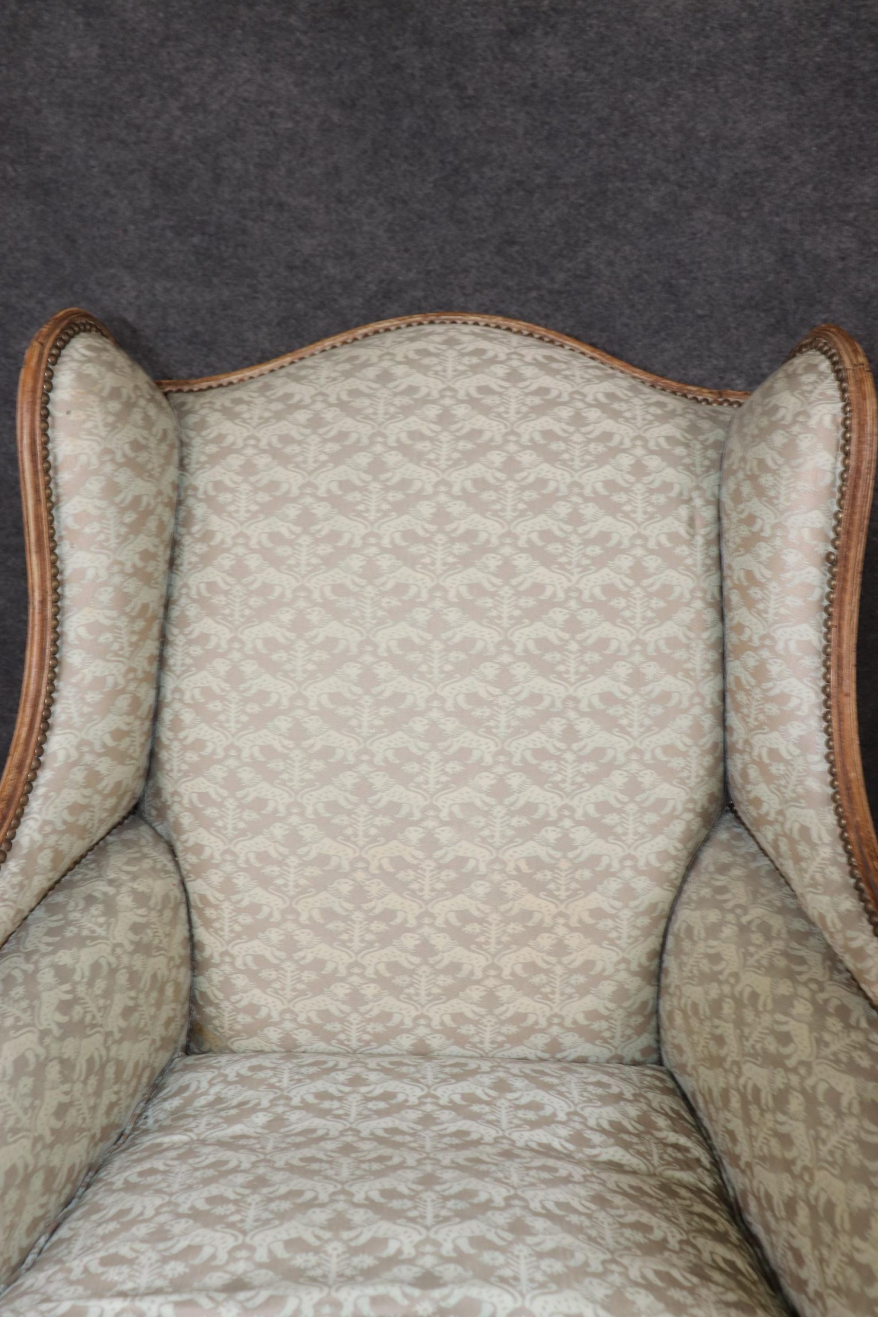 This pair of antique French Louis XV style wingback chairs is made of the highest quality and are truly lovely pieces! These chairs are bound to bring sophistication and a sense of class into your home or place of choosing! This pair is perfect for use as chairs in your living room, office, or foyer and can also be used as accent chairs for decoration if you’d like. This pair of wingback chairs is bound to have your guests mesmerized by their simplistic beauty and class and will have them talking about it for hours. The chairs are in good vintage condition with some scuffs to the feet. Otherwise good condition!
