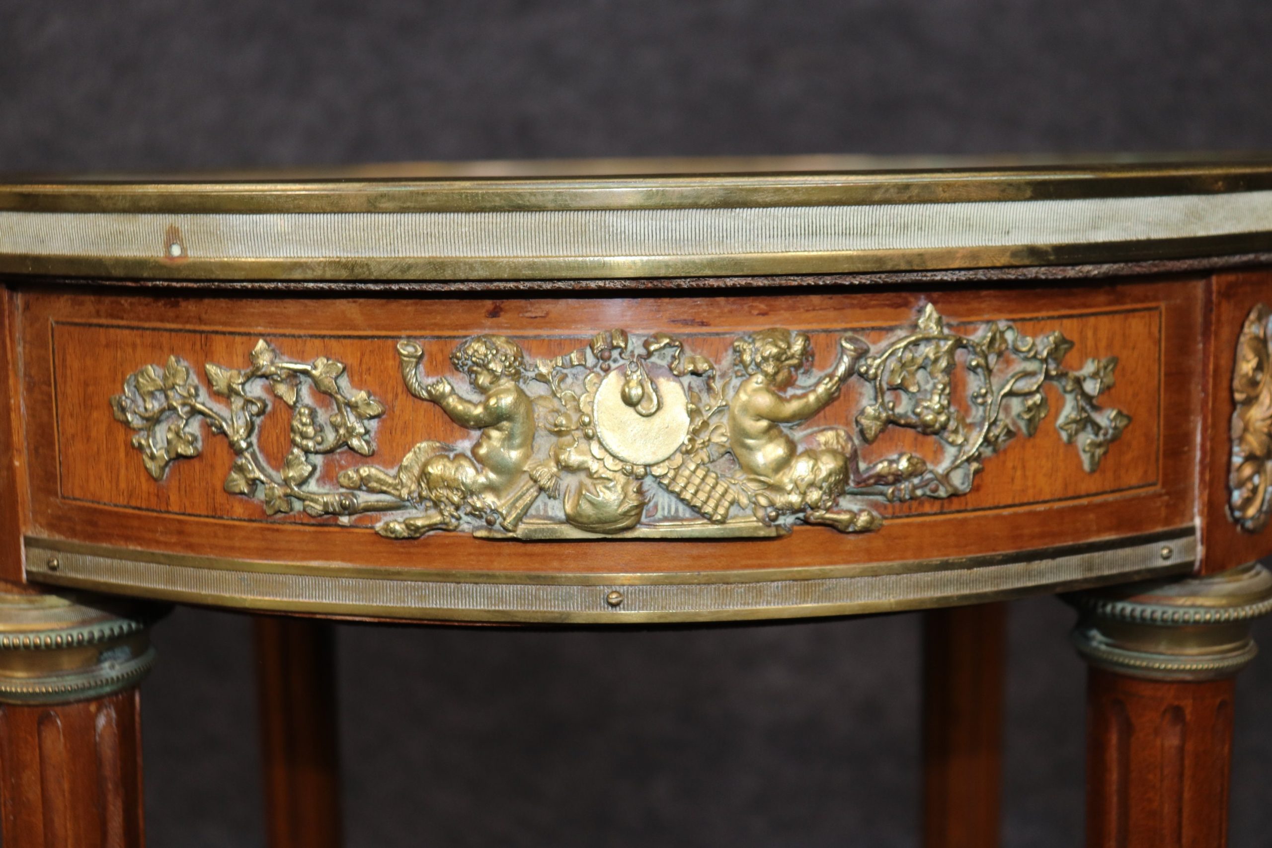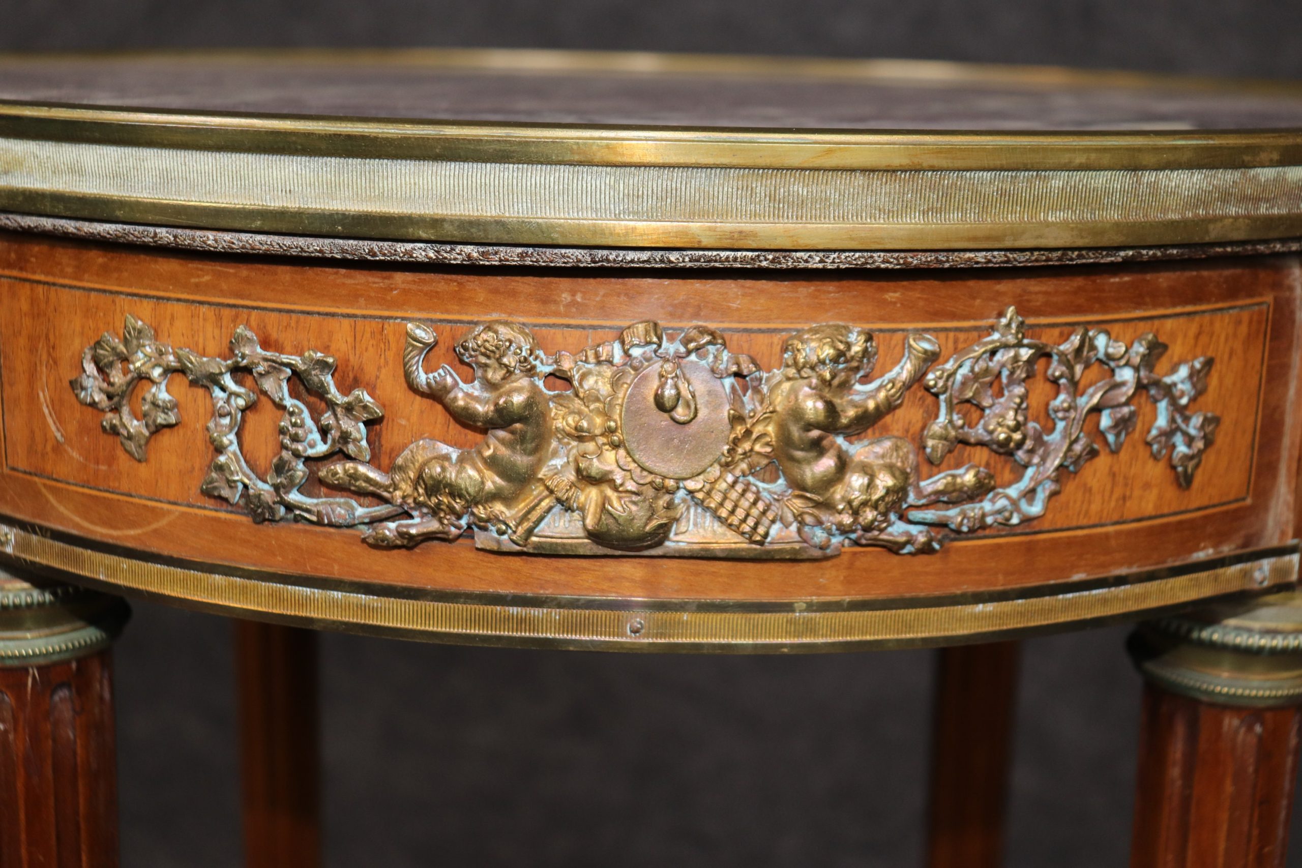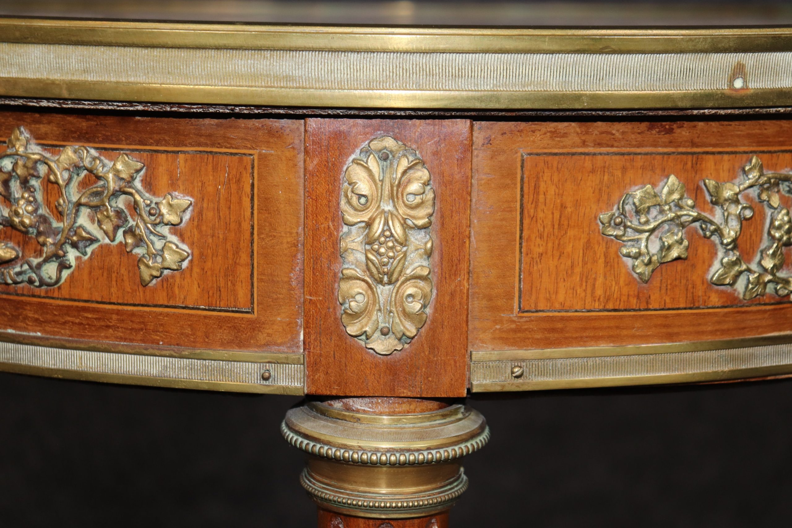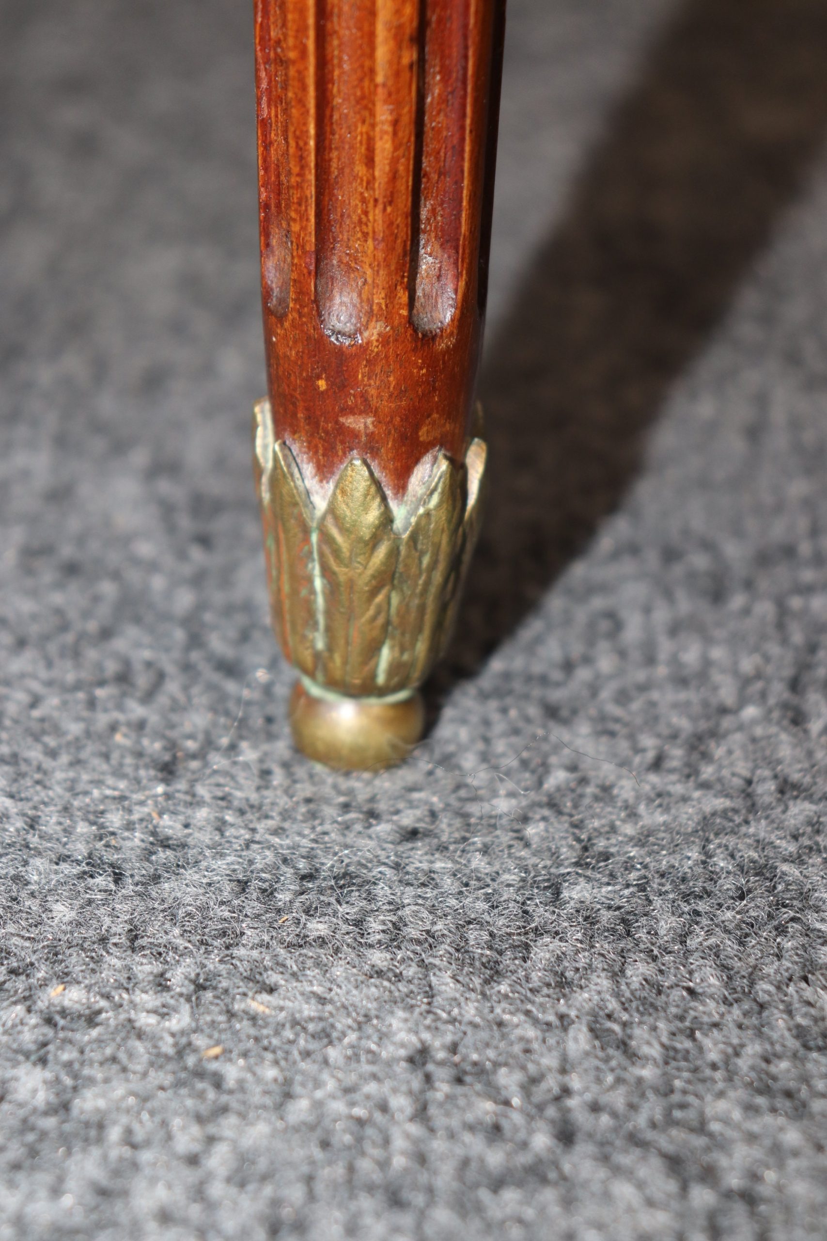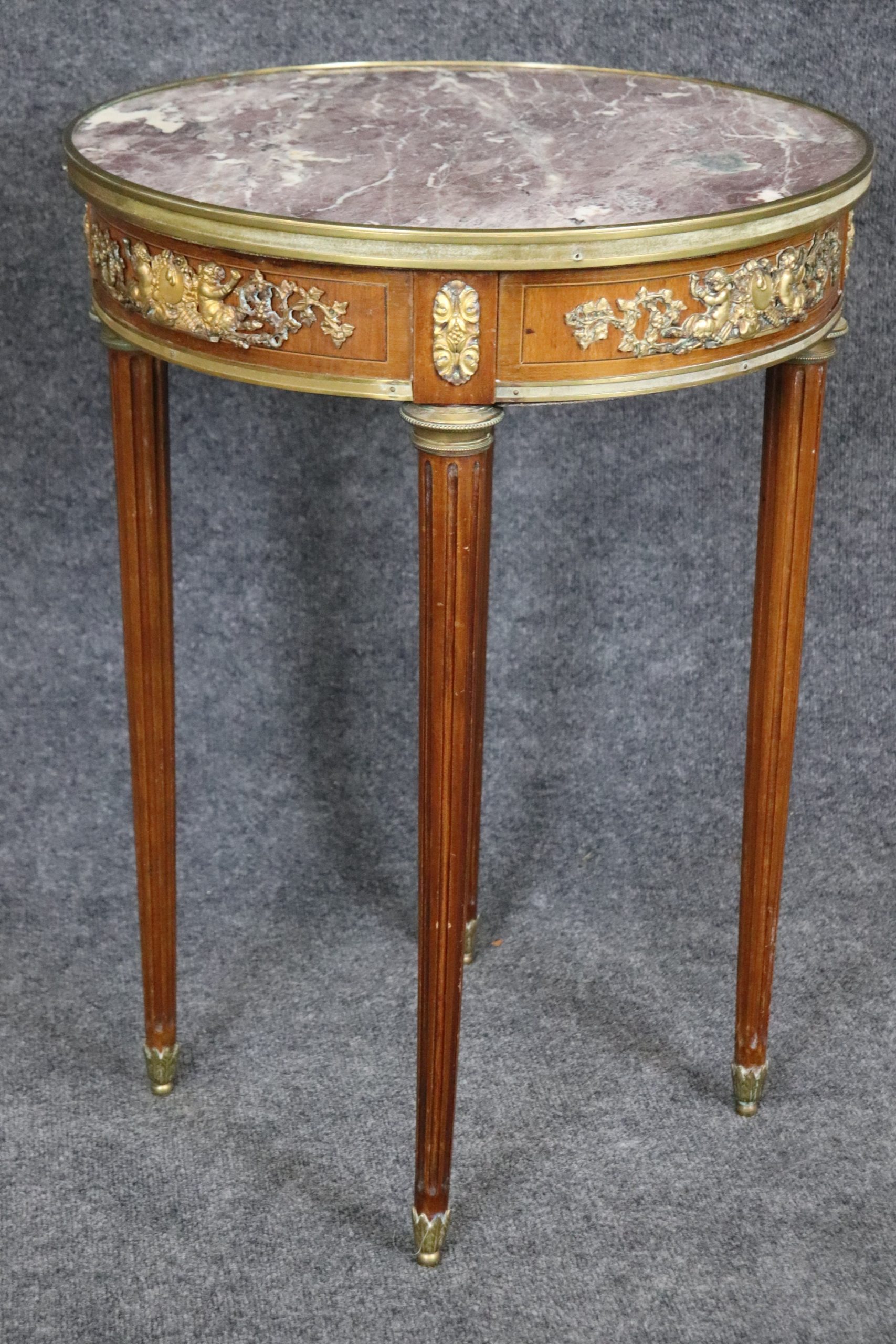 This vintage French Louis XVI Directoire style marble top end table, side table is made of the highest quality and is truly remarkable! Although small, this little side/end table packs a punch, and will most definitely be a conversation starter! If you look at the photos provided, you can see the outstanding design in the brass accents and the “Made in France” stamp. This french table can be paired with just about any style you may already have in your entryway, living room, dining room, bedroom, office or place of choosing and can be placed just about anywhere due to its size! This piece gives off an overwhelming sense of character and luxury and tells its own story as people catch themselves staring at it! The table is in good vintage condition with minor surface scratches, finish loss and some oxidation as to be expected with an item of this age! Otherwise good condition.