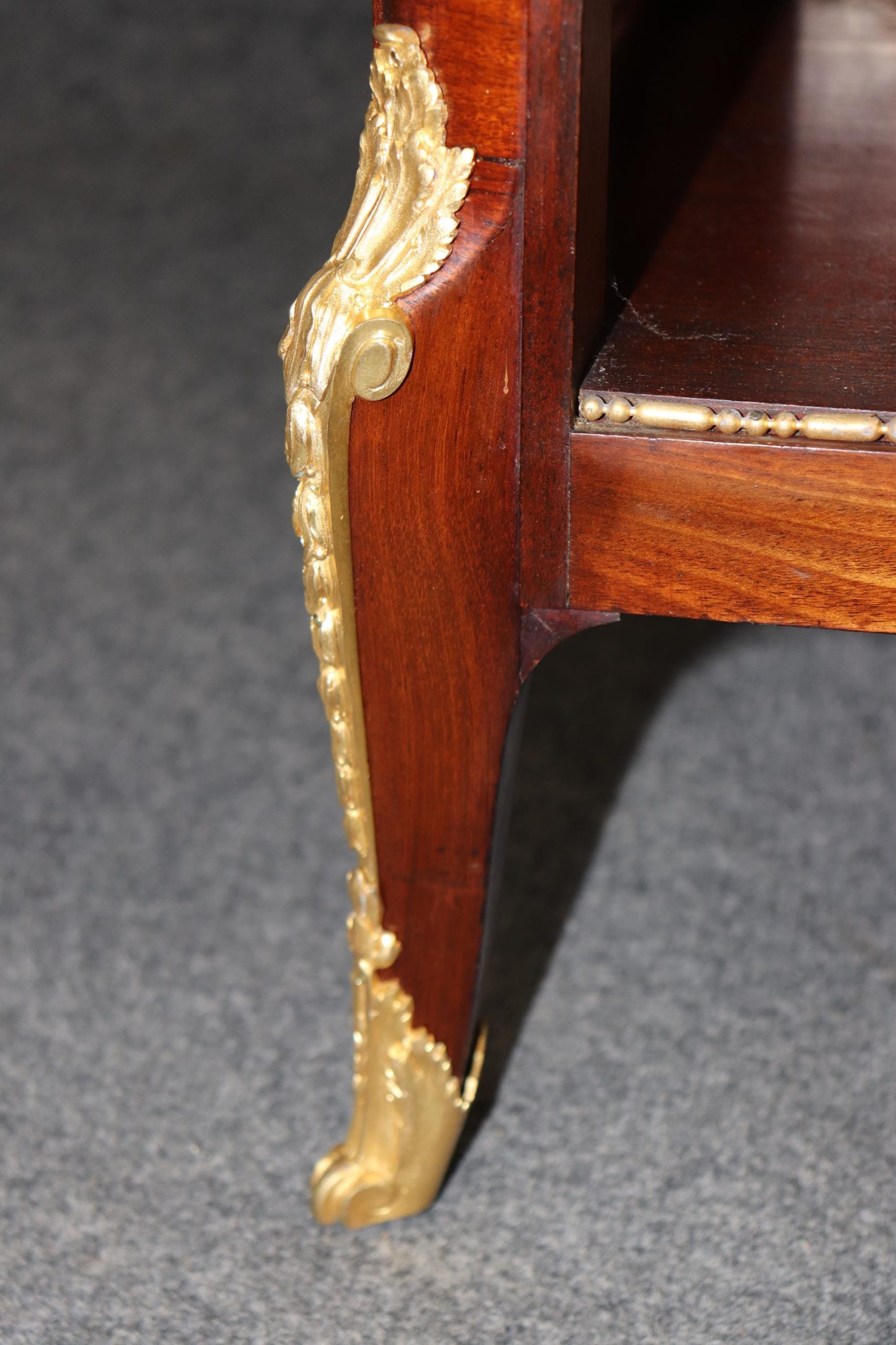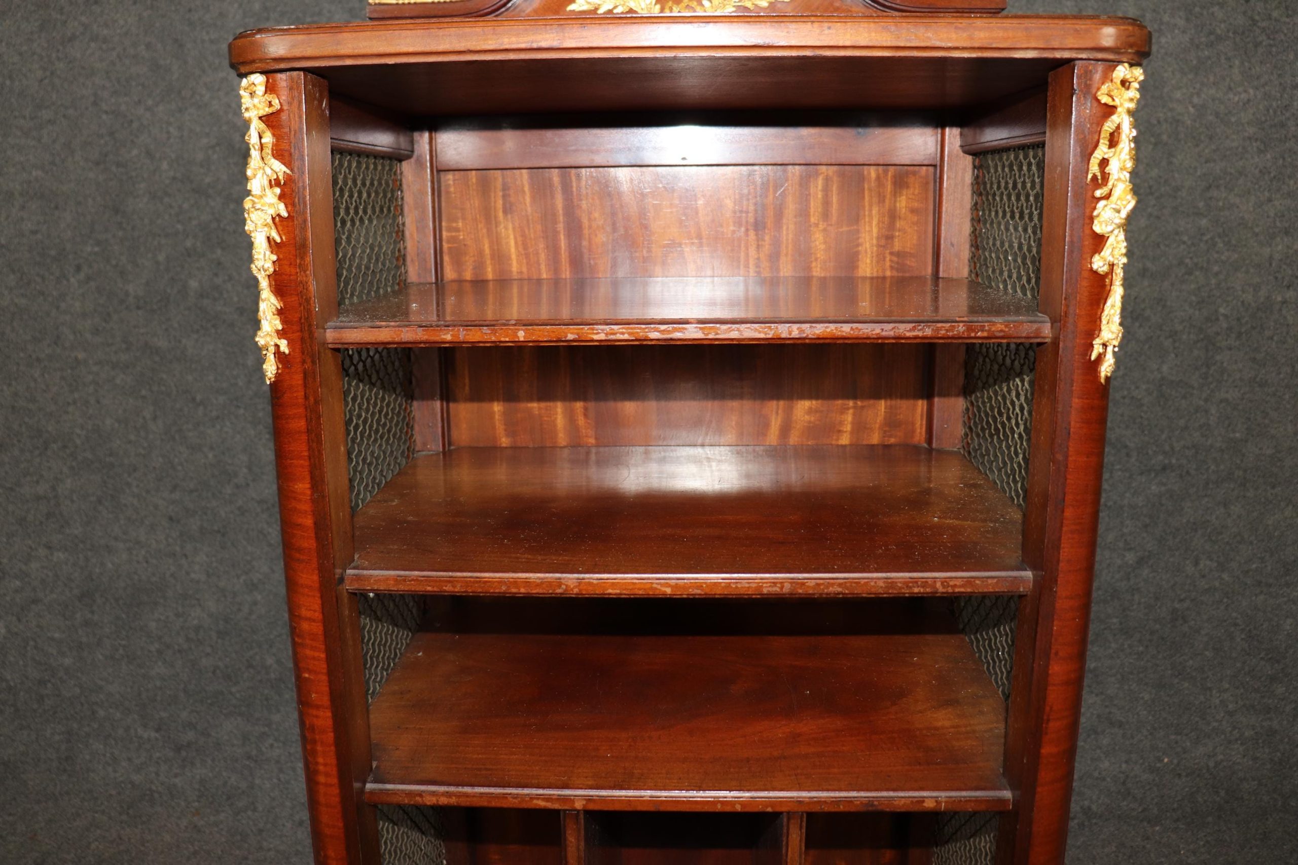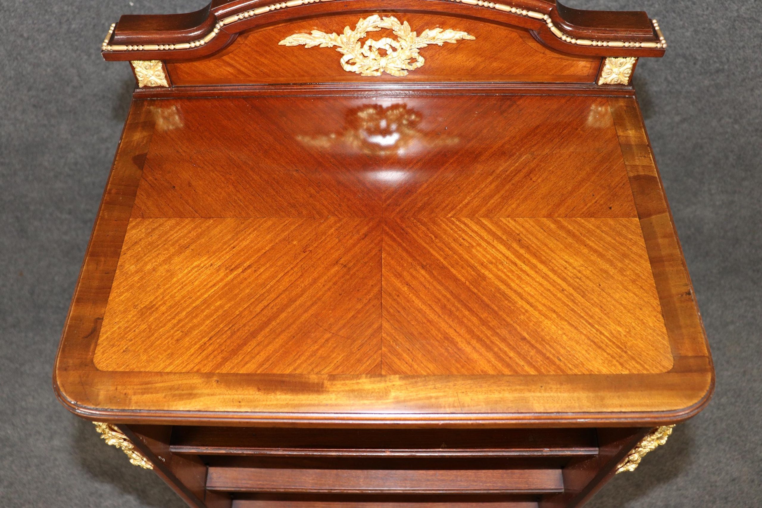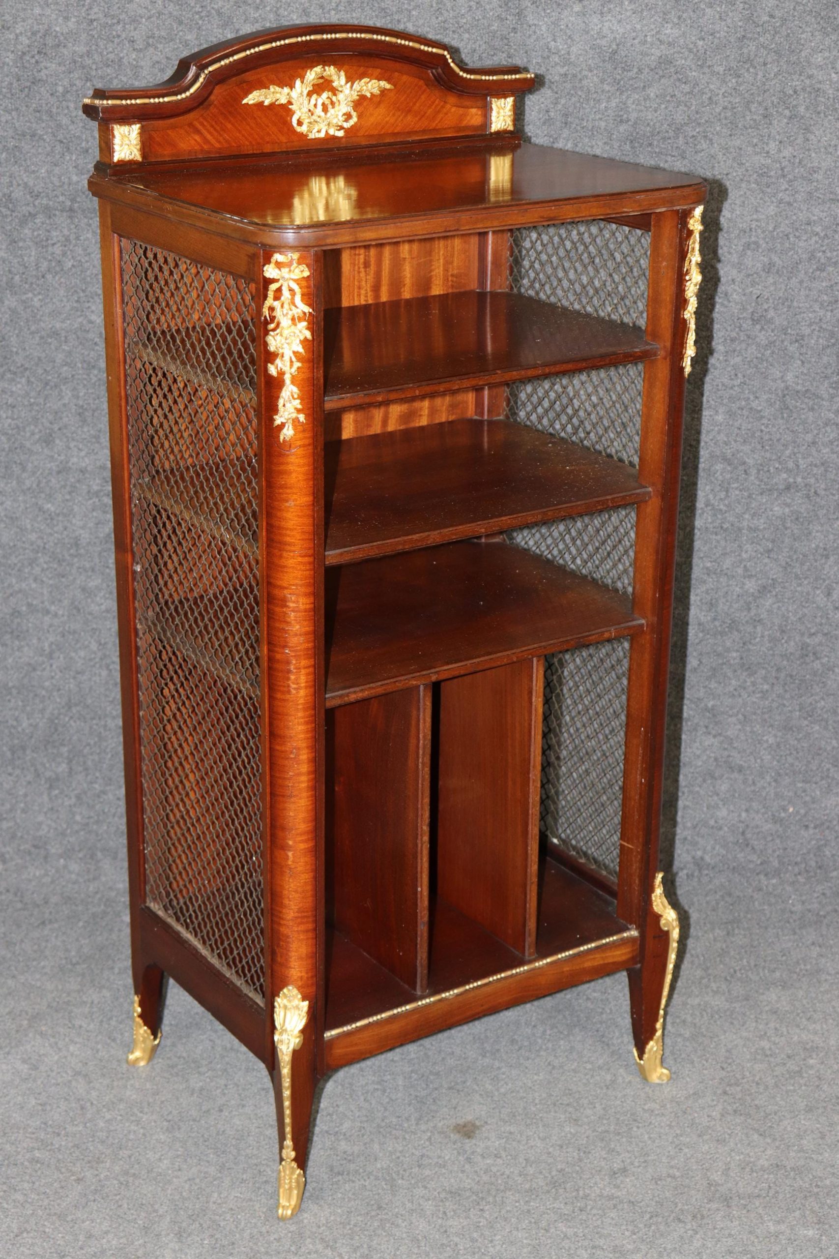 This cabinet features an open front design, originally intended to store and display phonograph records, now offering a versatile and stylish storage solution for books, décor, or fine collectibles. The frame is richly adorned with hand-chased bronze ormolu mounts, meticulously detailed and applied with a level of artistry and technique synonymous with Linke’s atelier. If you look at the photos provided, you can see the attention to detail in the crisp ormolu mounts. This is bound to bring a sense of luxury and sophistication to any entryway, living room, dining room, bedroom, office or place of your choosing! The music stand is in very good antique condition with minor light surface scratches and some minor finish loss, but otherwise in good condition for an item from the turn of the century.