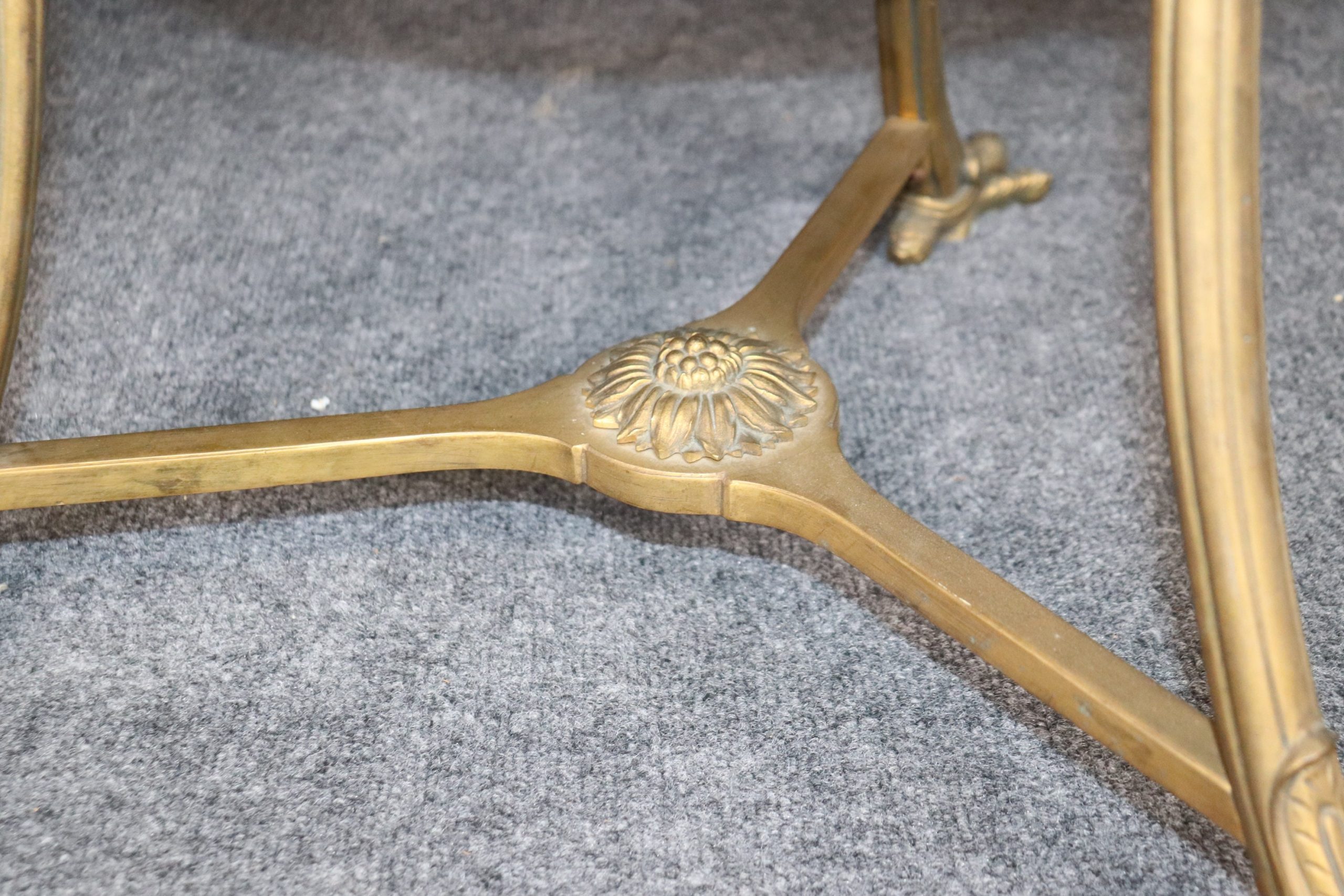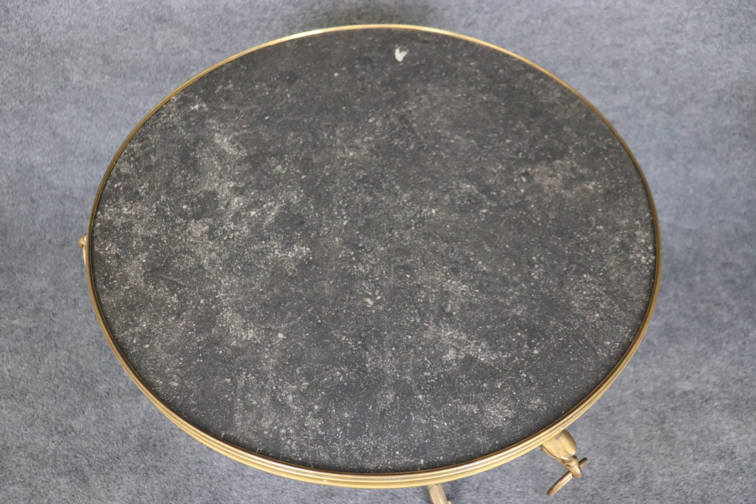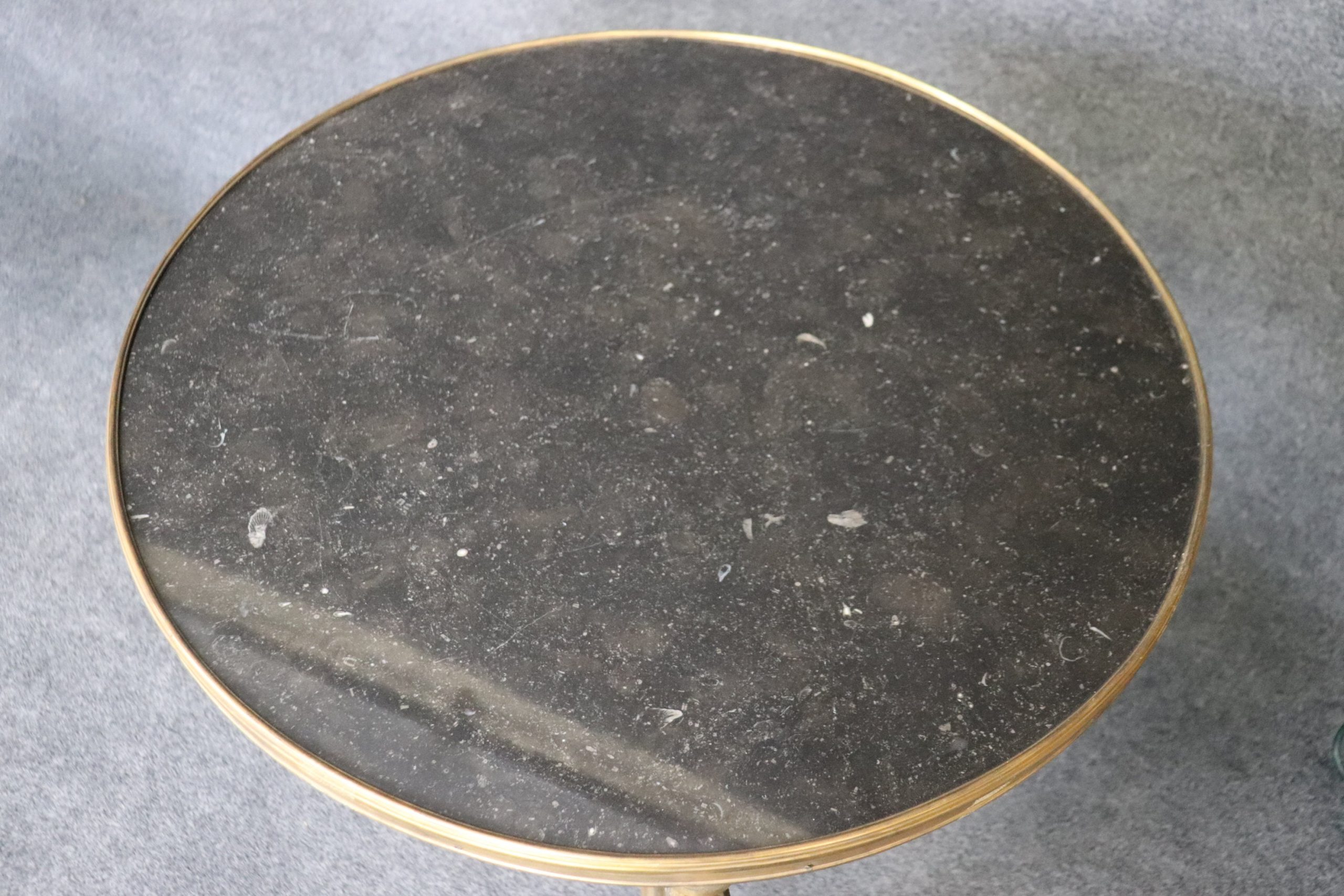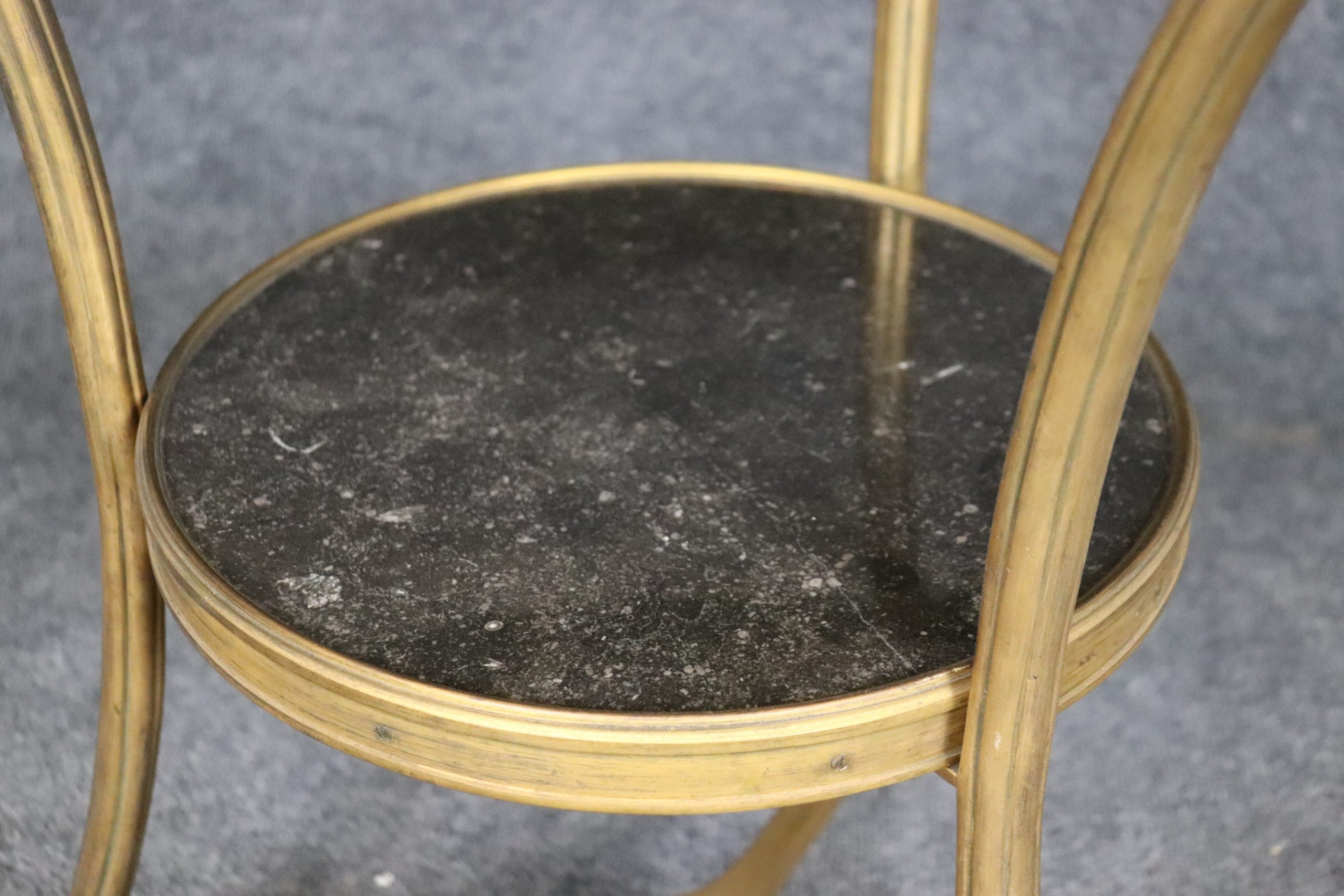 This antique Regency style bronze ormolu and marble top gueridons or marble top tables with eagle heads pack a big punch! This pair of gueridons are made of the highest quality and are perfect for you and your home or place of choosing. This pair is perfect to be used as a pair of end tables or side tables for your living room, or they can be used on each opposing side of an entry way as accent tables and can also be used as night stands if you’d like. A really nice quality about these tables is their ability to be paired with a variety of other styles you may already have in your home and will certainly be a conversation starter at your next gathering! The pair is in good vintage condition with light surface scratches and some minor oxidation to the base as to be expected with items of age but otherwise good condition.