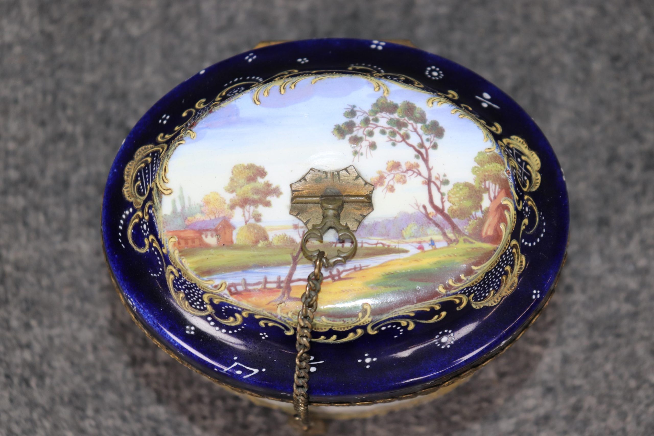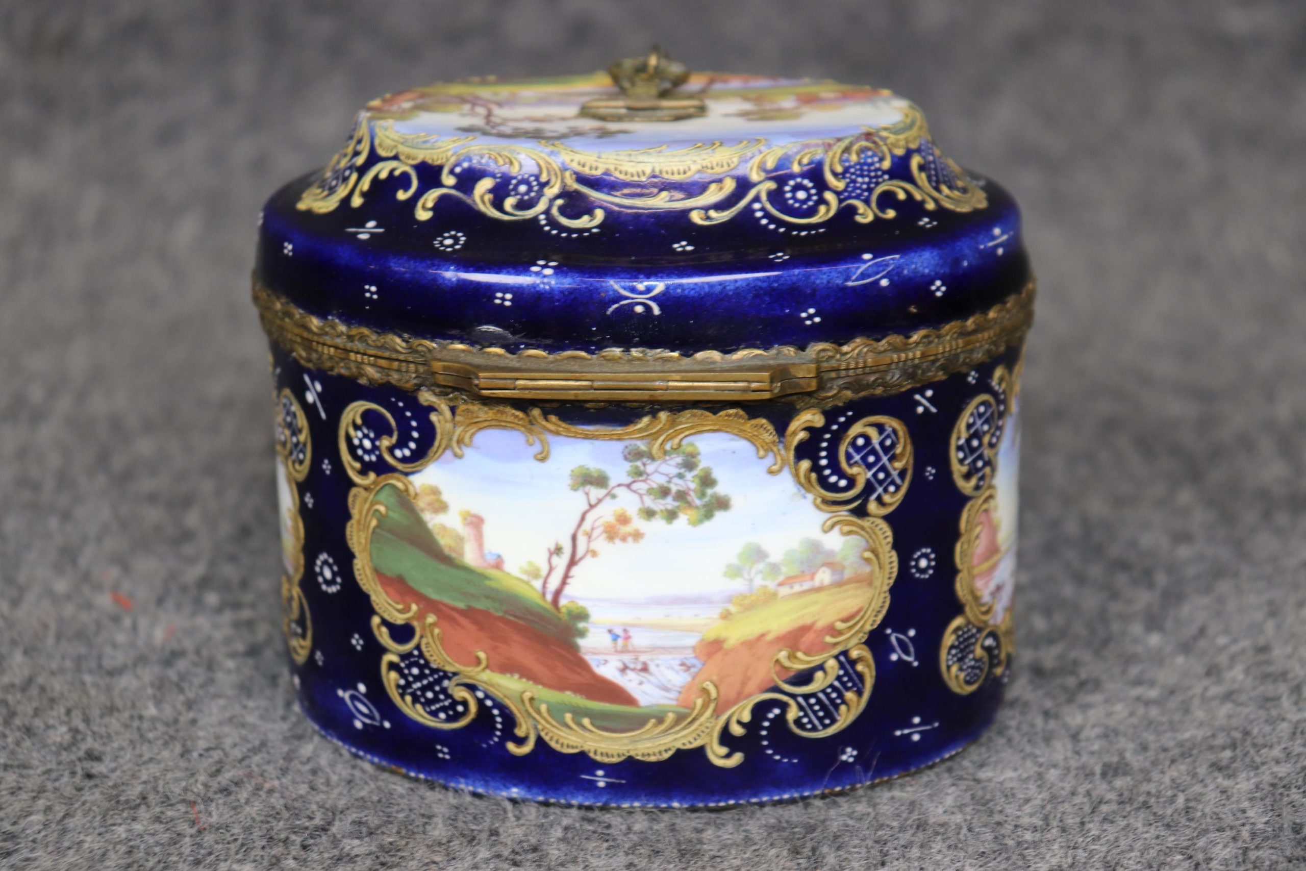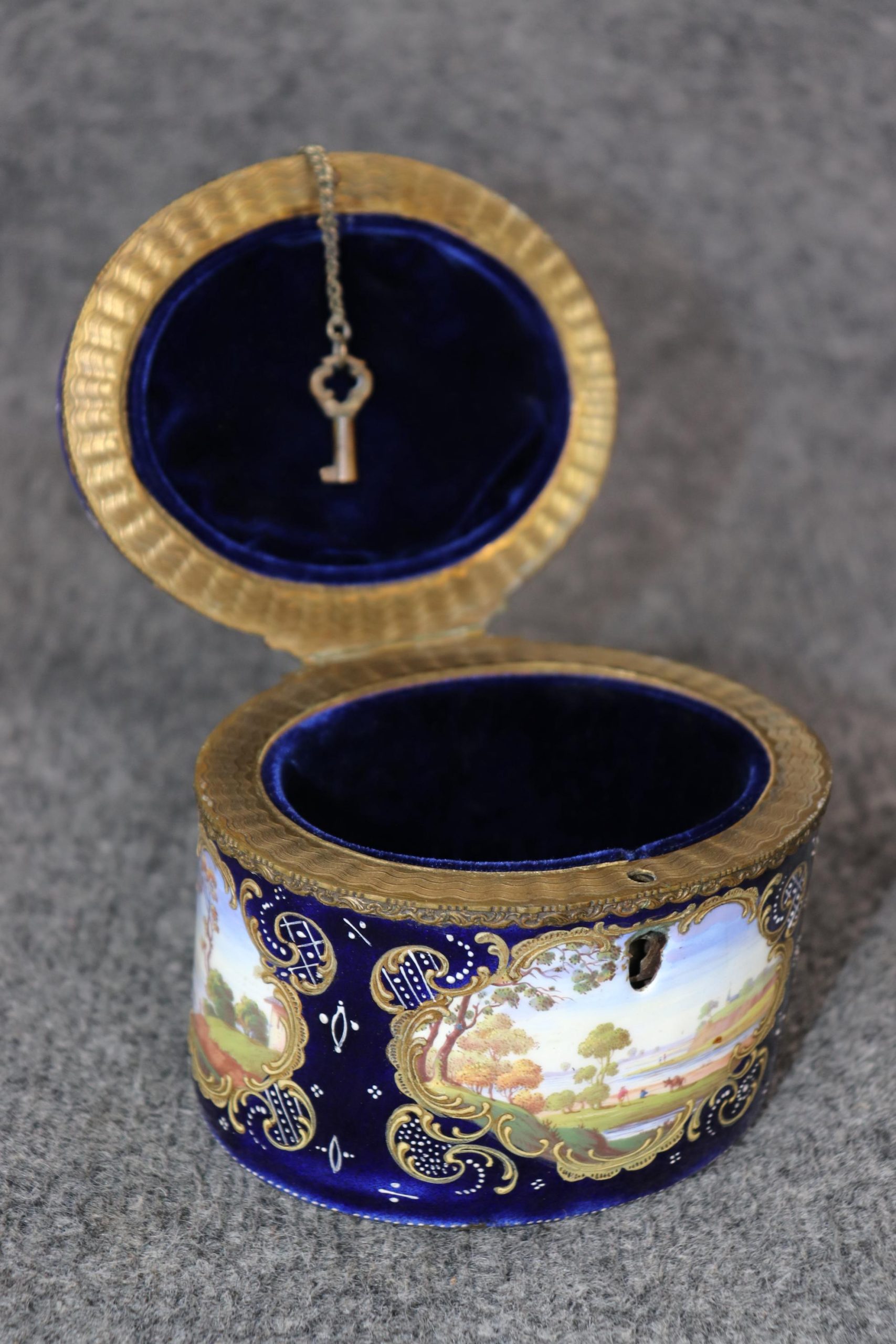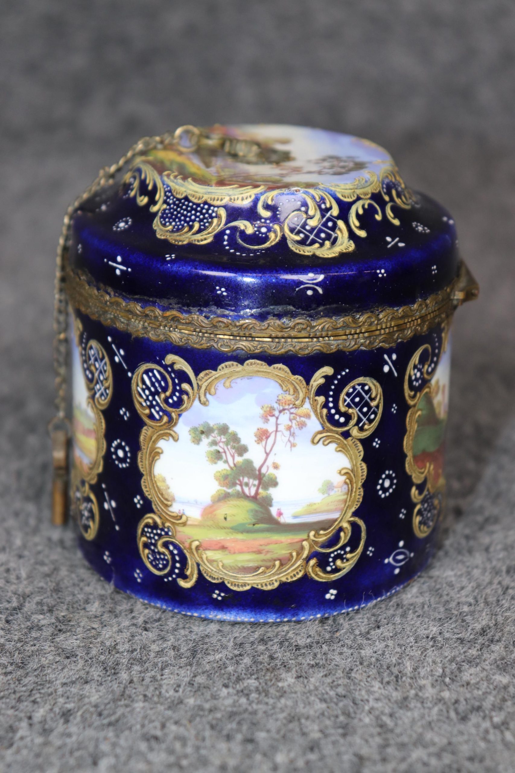 This antique 19th century Royal Vienna jewelry casket is made of the highest quality! Made in the 1890’s, this petite jewelry box perfect for storing away any precious jewelry or small object. If you look at the pictures provided, you can see the detail floral hand glazed scenes on all sides of the piece. This would make a wonderful addition to your bedroom, office, or any other room of your choosing and is bound to bring a sense of character and creativity! two unique things about this piece is that its equipped with the original key and is part of the jewelry box. The box also features its original velvet lining! Most of the time these boxes lose their original key throughout the years. This Piece is among some of the finer examples available on the market and is really a museum quality piece. This jewelry casket is in good antique condition with some surface scratches and wear, as to be expected of an item this age.