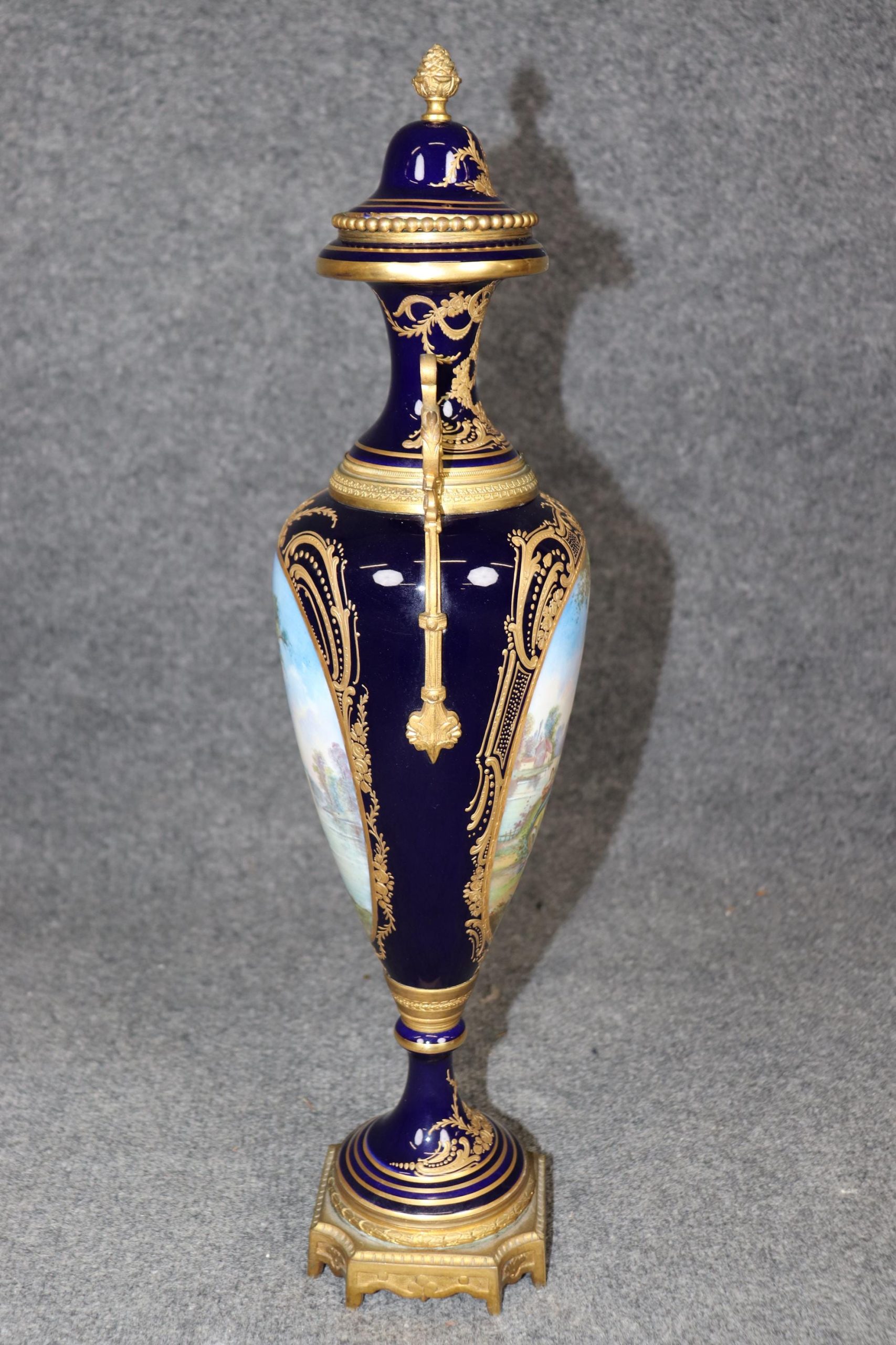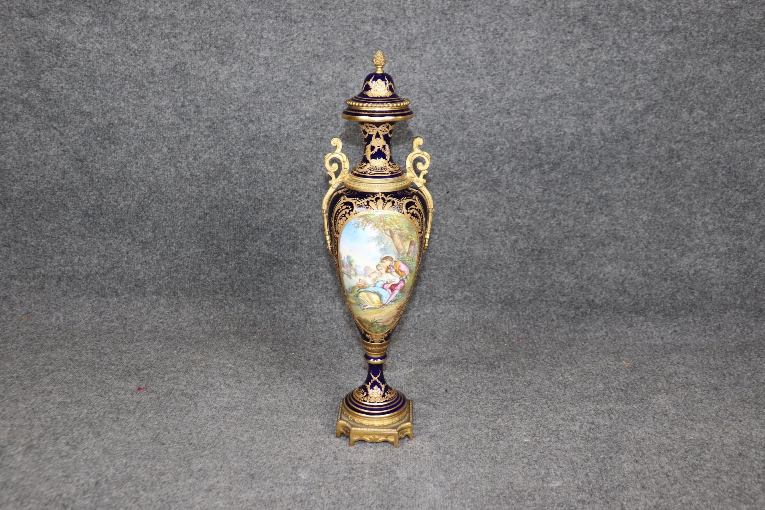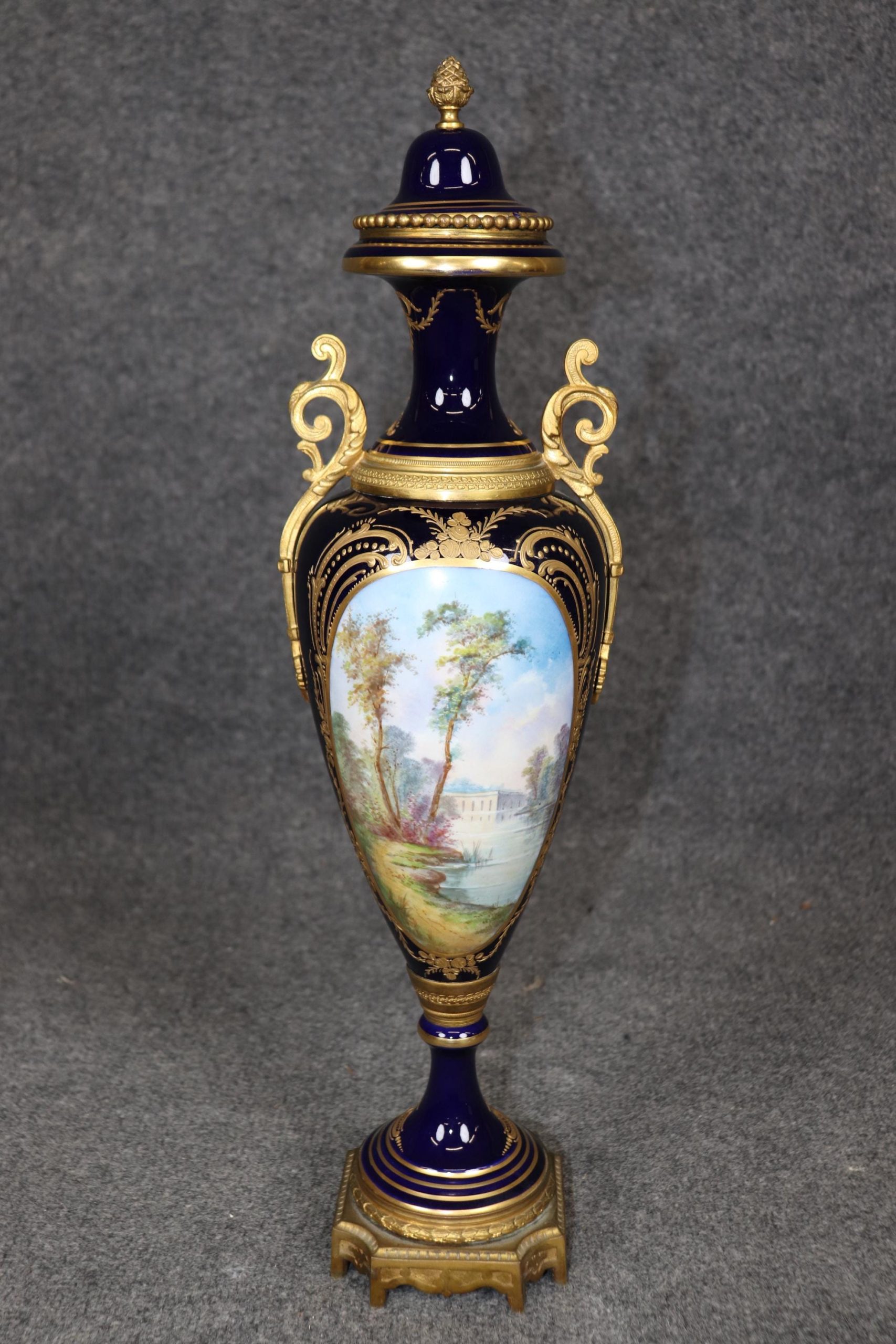This Antique 19th Century Sèvres Royal Blue Porcelain Vase Made in France is more than just a decorative object—it’s a piece of history. Combining extraordinary craftsmanship, timeless design, and exquisite materials, this vase embodies the best of French porcelain artistry during the 19th century. With its striking royal blue color, intricate hand-painted designs, and opulent gilded accents, this vase remains a testament to the enduring legacy of Sèvres and the luxurious tastes of the aristocracy. Its beauty, rarity, and craftsmanship make it a highly prized collector’s item, sought after by those who appreciate the elegance and sophistication of the finest porcelain ever made.