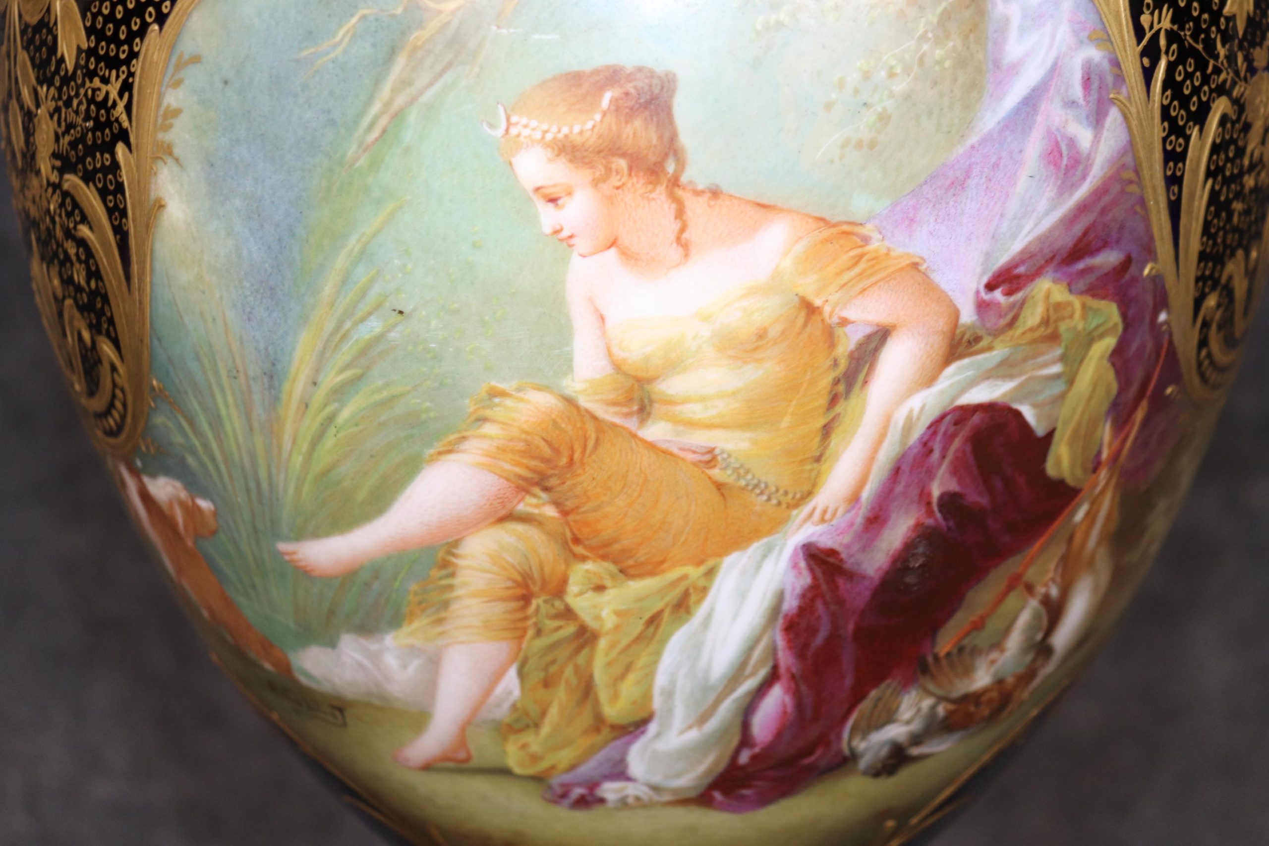 Antique Sevres Royal Blue Porcelain Vase: French Painted Urn