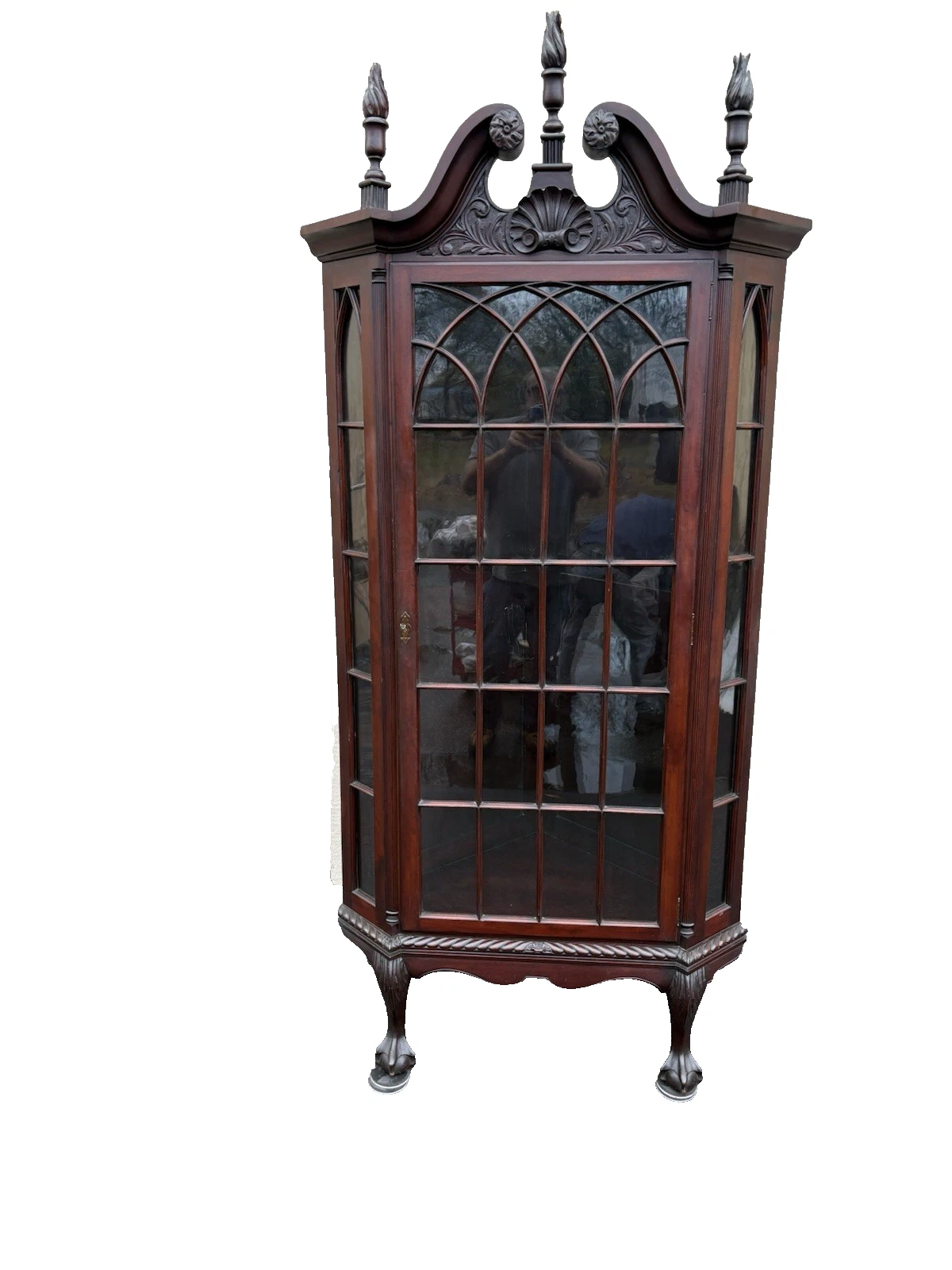 Antique Victorian Mahogany Corner China Cabinet Curio