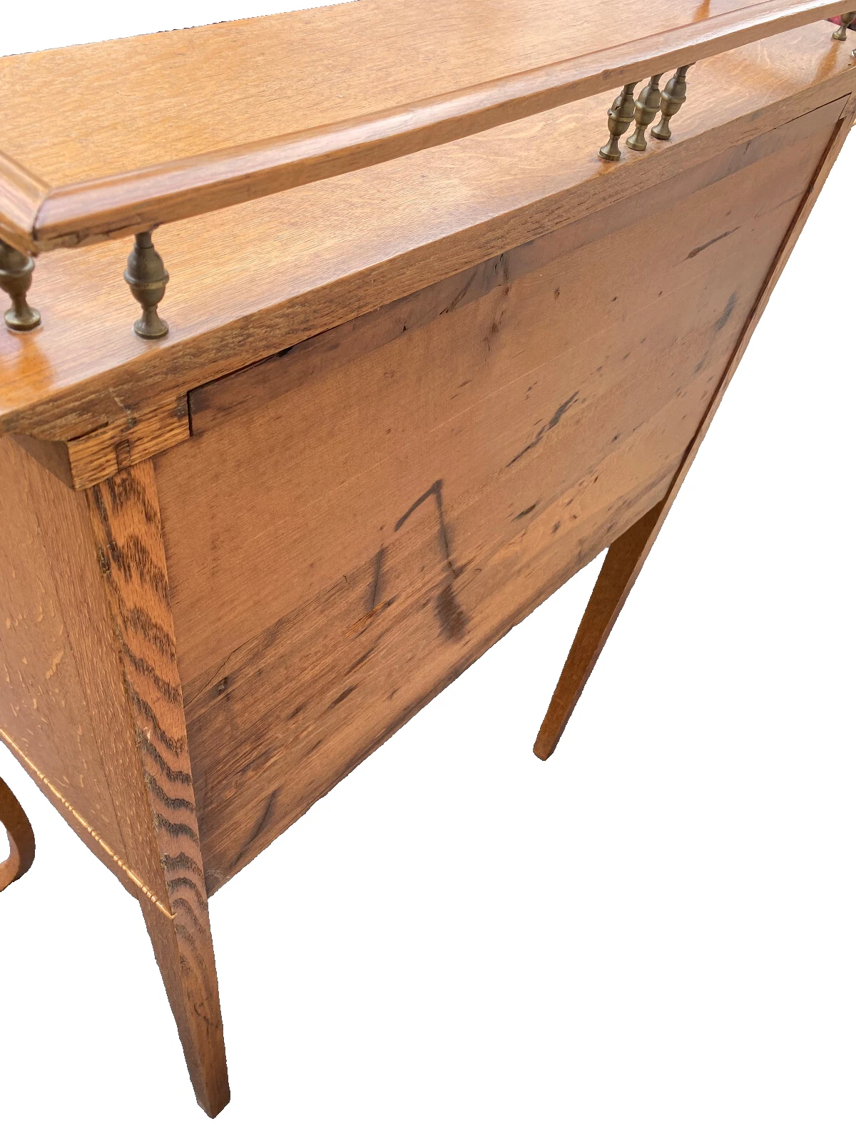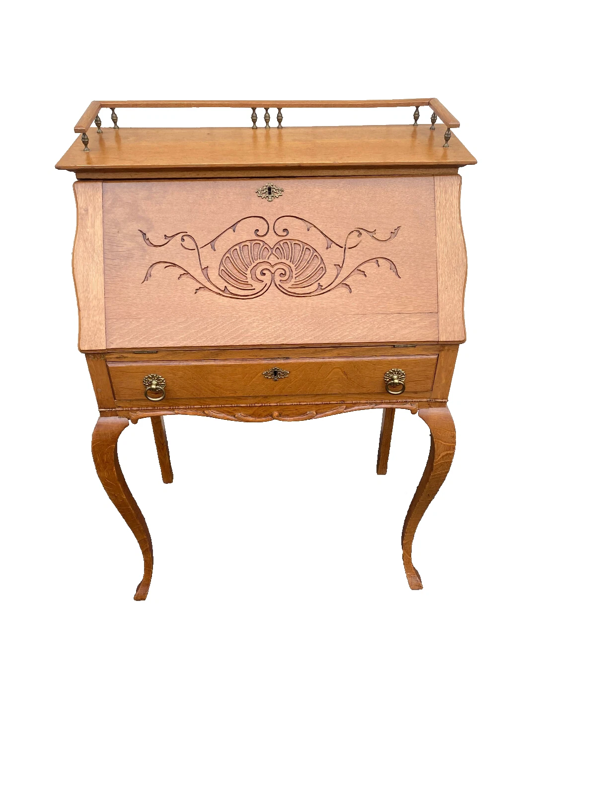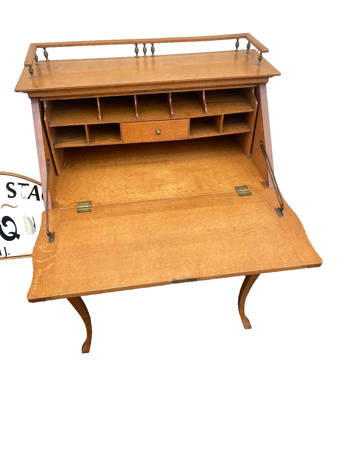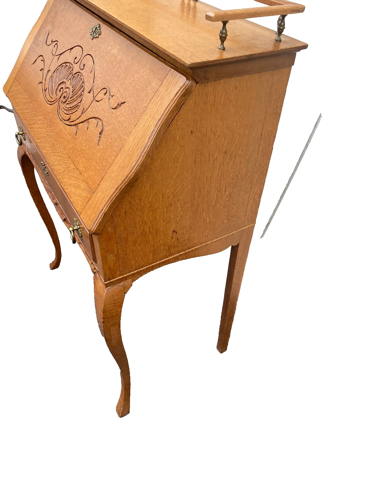 This exquisite antique Victorian oak slant front desk captures the essence of early 20th-century craftsmanship with its beautifully grained wood and elegant design. The desk features a gently sloped writing surface that opens to reveal generous storage, perfect for keeping your workspace organized. Its warm oak hue and timeless silhouette make it a captivating addition to any home office or study, inviting creativity and inspiration. This piece, dating back to the early 1900s, is not just a functional item but a testament to the artistry of its time.