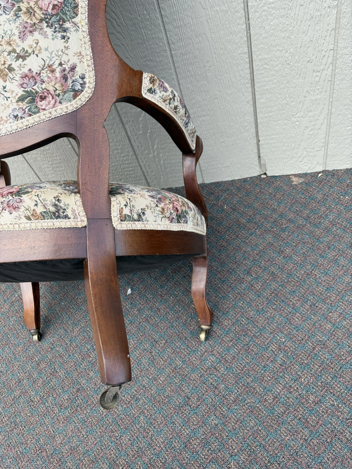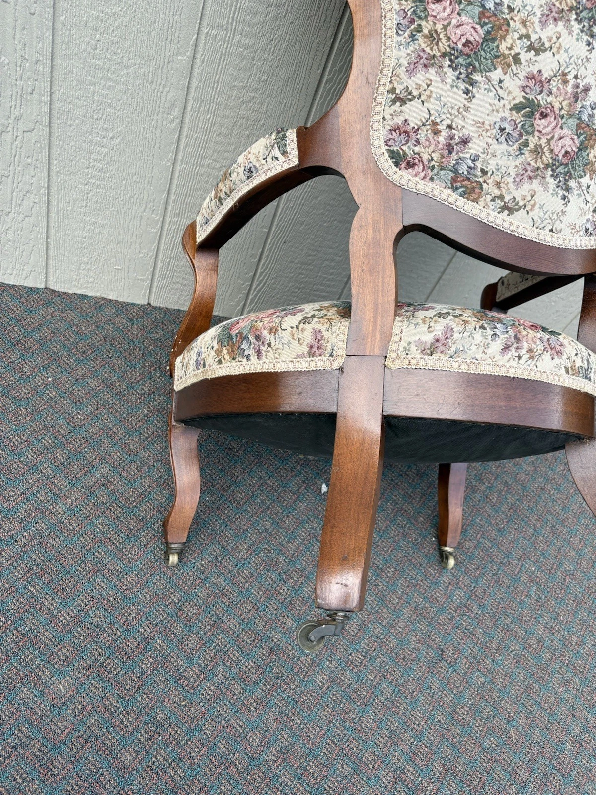 This exquisite Victorian walnut armchair, crafted between 1850 and 1899, showcases the timeless elegance of the era with its stunning carvings and rich, multicolored wood grain. Handcrafted with care, this piece not only offers a comfortable seat but also serves as a captivating conversation starter, reflecting the artistry of a bygone time. Its sturdy construction ensures it remains a cherished addition to your home, whether placed in a cozy reading nook or as a standout piece in your living room. Embrace the charm of history with this remarkable armchair that invites you to sit back and appreciate its unique character.