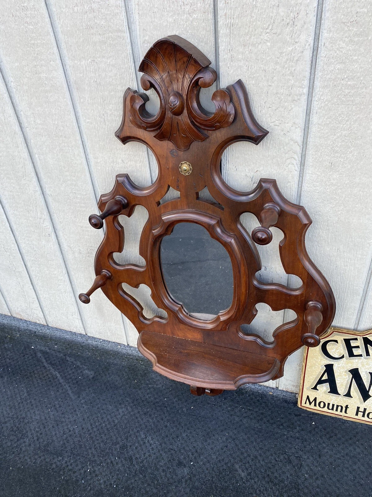 This exquisite Antique Victorian Walnut Hatrack Wall Mirror, crafted in the late 19th century, embodies the elegance and charm of its era. The rich walnut frame, showcasing intricate detailing, offers a warm, inviting presence, while the sturdy construction ensures it has stood the test of time. Its dual function as both a mirror and a hat rack makes it a practical addition to any entryway, reflecting not only your style but also a piece of history that has graced homes for generations.