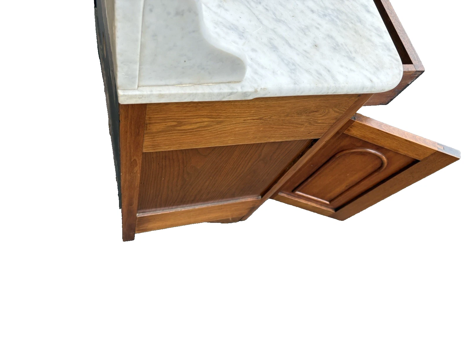 This exquisite Victorian walnut washstand chest dresser, crafted in the late 19th century, embodies the elegance and charm of its era. Adorned with a stunning marble top, it showcases the remarkable craftsmanship of its handmade design, ensuring both beauty and durability. The rich walnut finish enhances its warm character, while the single drawer provides a practical touch for any room. A delightful piece of history, this dresser invites you to imagine the stories it has witnessed over the years.