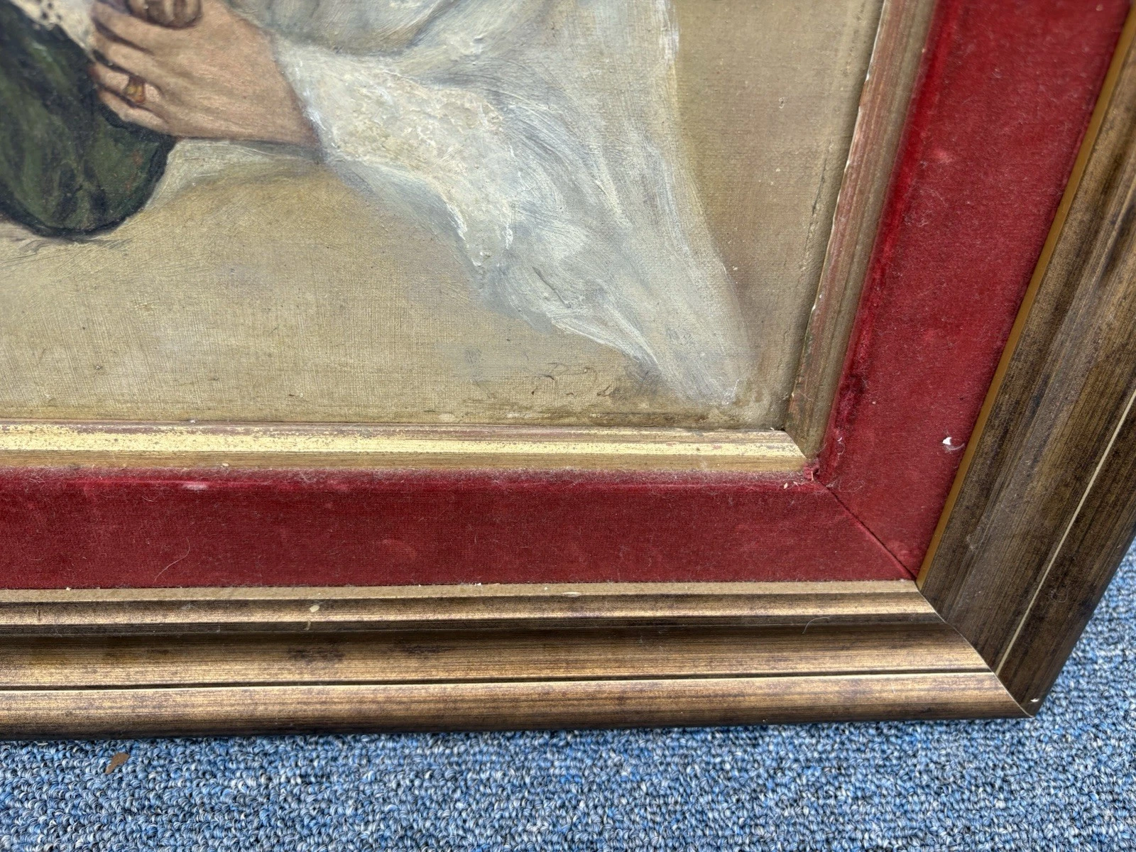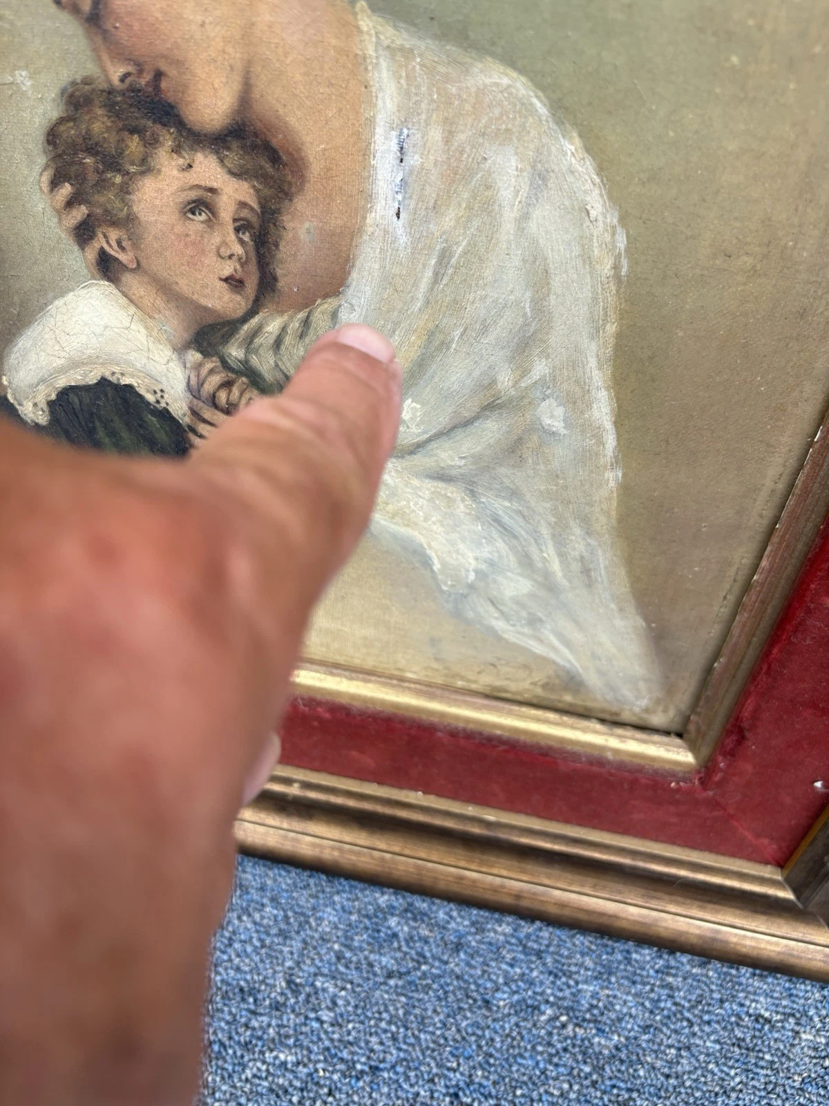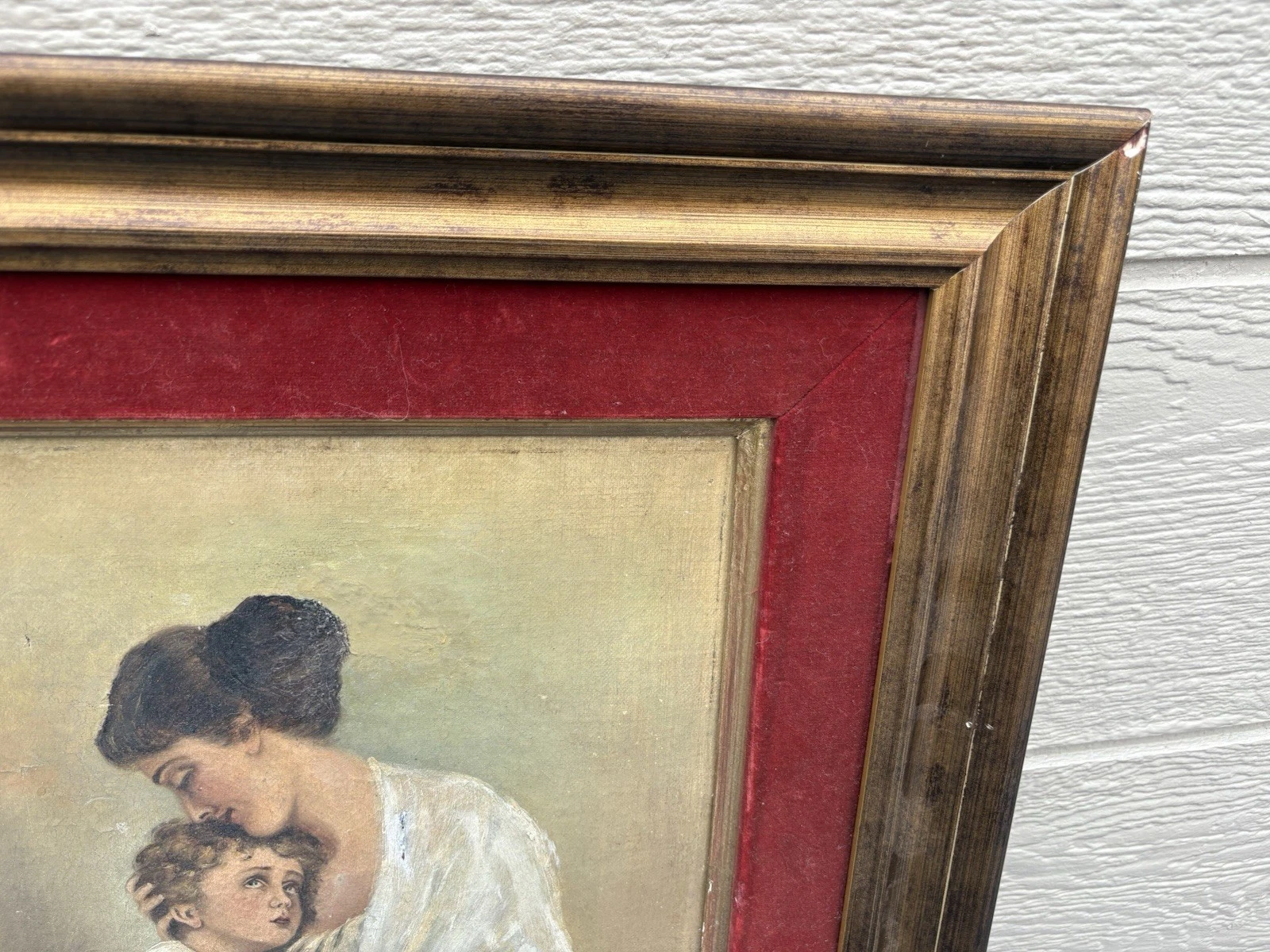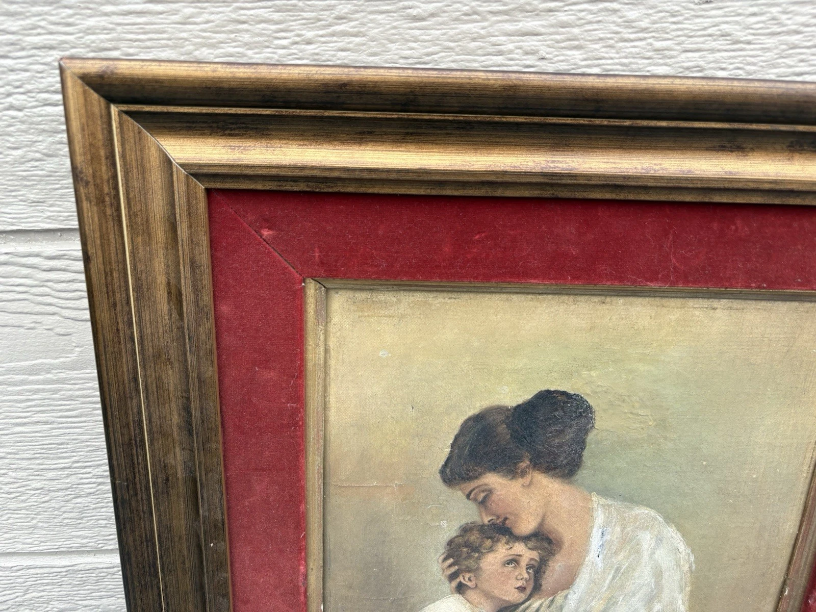 This charming antique oil on canvas captures a tender moment between a mother and child, showcasing the artist’s skill in realism. The delicate brushwork and rich colors bring warmth to the scene, inviting you to appreciate the intimate bond portrayed. Although an old repair is evident on the mother’s dress, it adds a layer of history and character to the piece, making it a unique addition to any collection. Signed by the artist, though the signature remains a mystery, this artwork speaks to the timeless beauty of familial love.