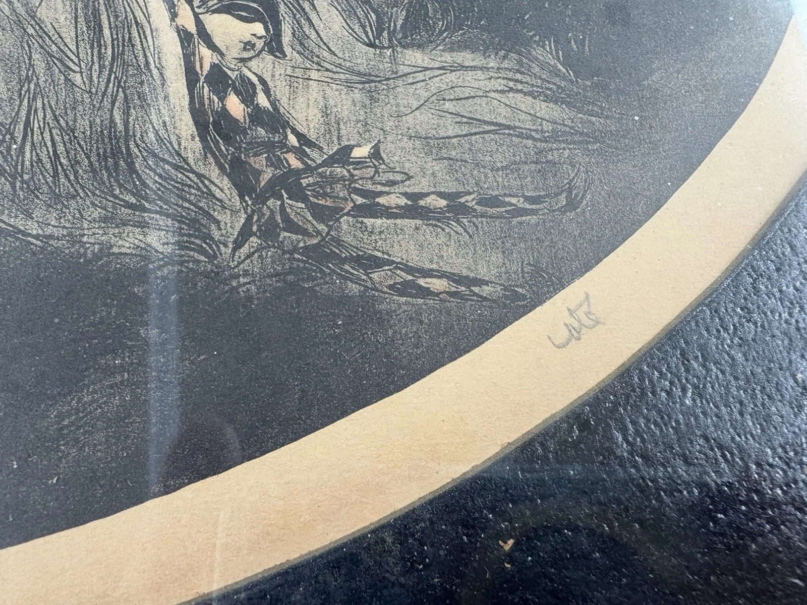 This enchanting Deco print, crafted by artist Cote’ during the mid-20th century, captures the whimsical charm of French dolls with an elegance reminiscent of Louis XV style. The intricate details and soft colors reflect the artistry of the era, inviting you to step back in time to a world of grace and sophistication. While it carries the gentle patina of age with some stains and imperfections, these characteristics add to its unique story, making it a delightful conversation piece for any vintage lover.