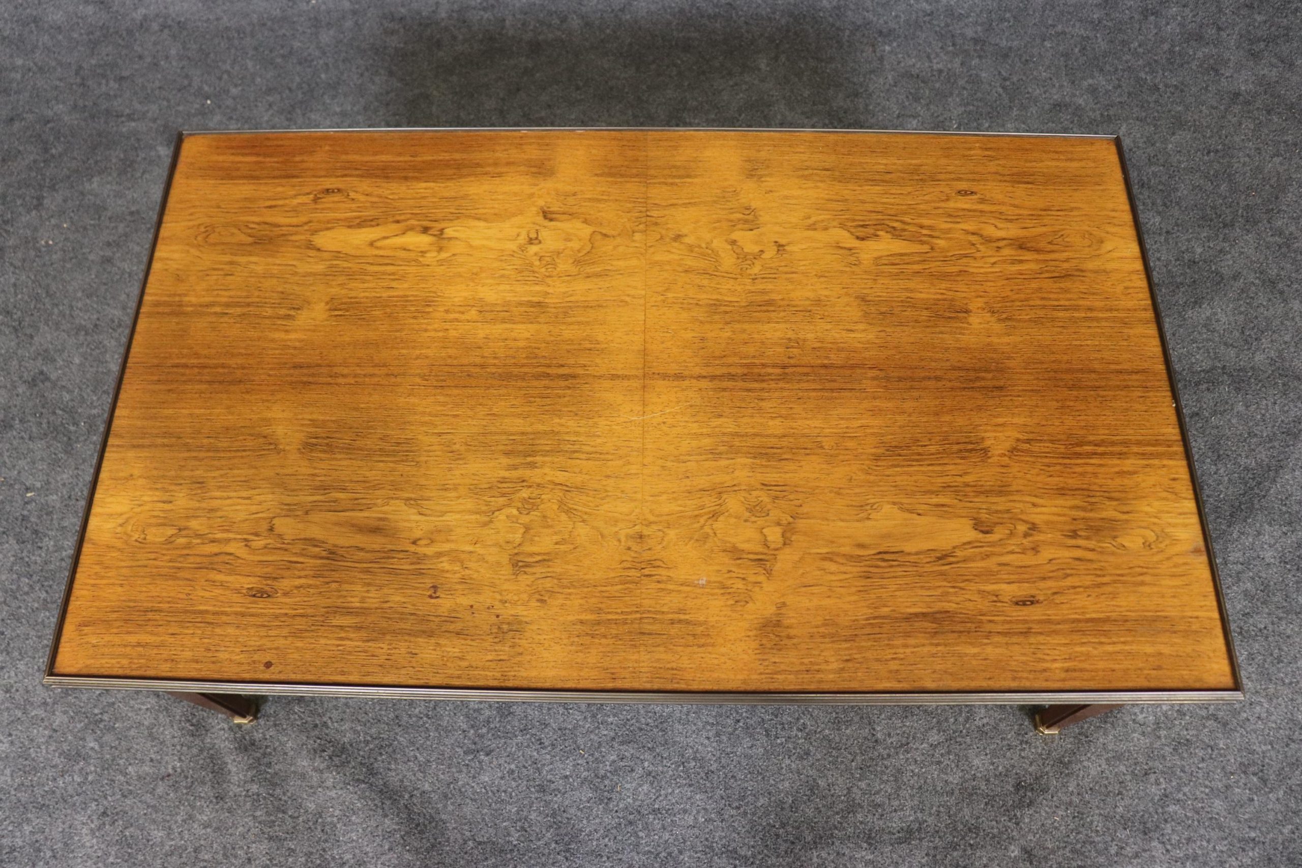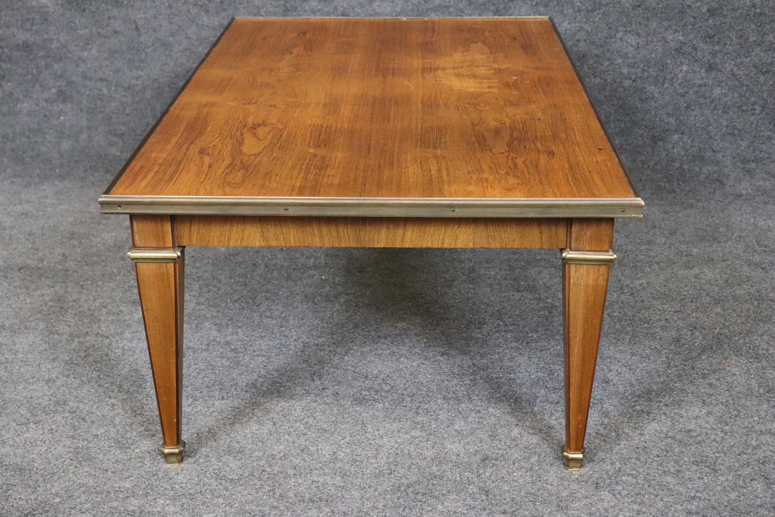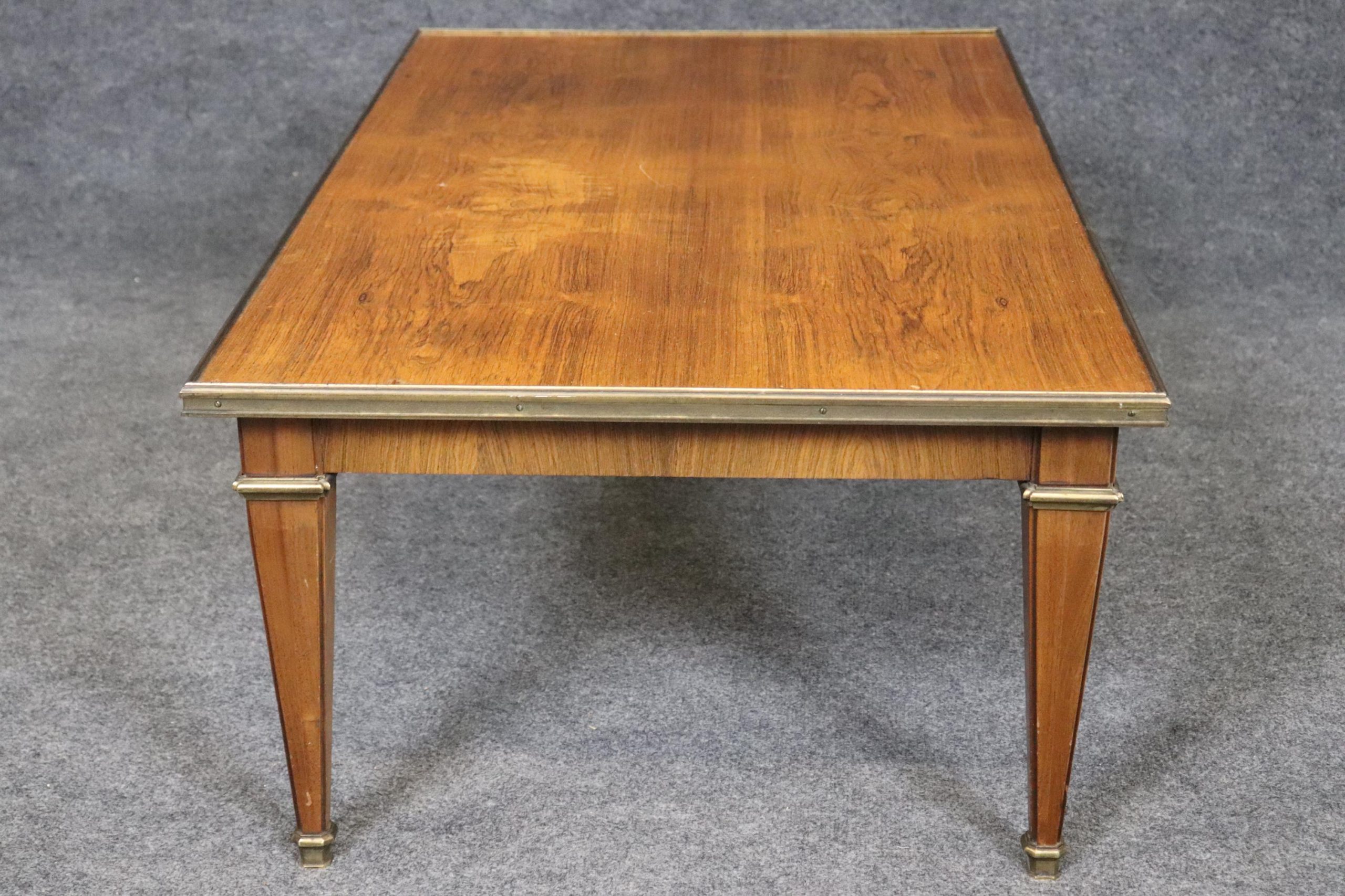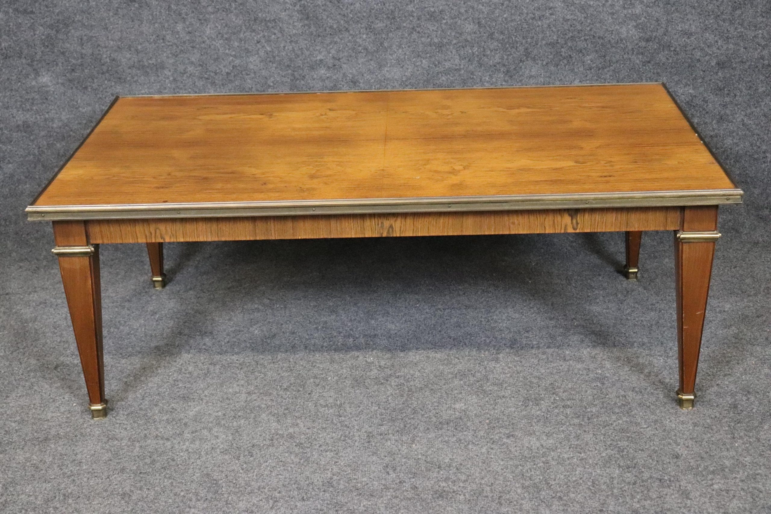 This Baker Furniture mid century Directoire style brass mounted coffee table, in the manner of Maison Jansen is of the highest quality! Baker Furniture, a high-end furniture manufacturer, was founded in 1890 by Siebe Baker in Allegan, Michigan, initially as Cook, Baker & Company. This table is bound to bring a sense of luxury and sophistication into your living room, office or place of choosing and will surely be a conversation starter at your next gathering. Antique furniture and vintage pieces have stood the test of time and this coffee table is no exception! With its quality materials and great craftsmanship this is bound to last you and your family for many years to come. The table is in very good vintage used condition with minor light surface scratches, but otherwise in good condition!