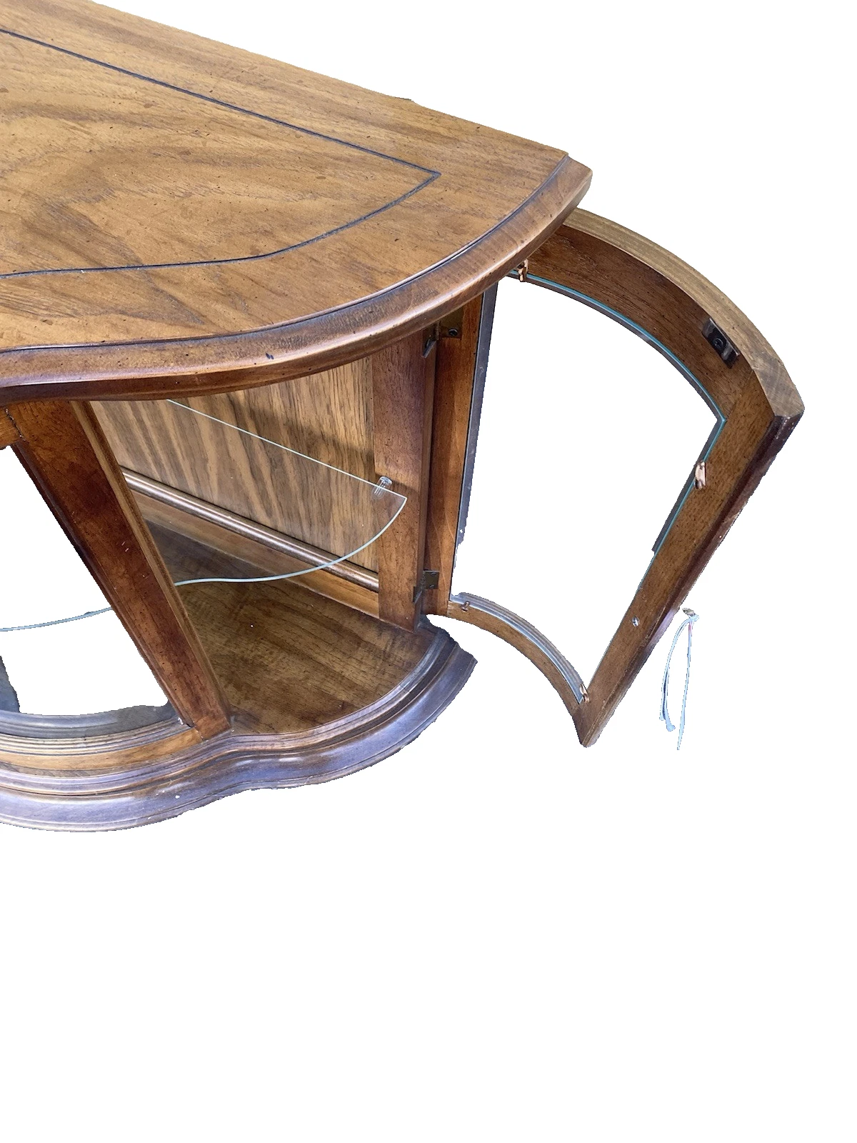 This enchanting Bow Glass Credenza Curio Cabinet is a delightful blend of modern elegance and artisanal craftsmanship. Handcrafted with a warm wooden finish, its gracefully curved bow glass doors invite light to illuminate your treasured items, creating an inviting display. The cabinet’s understated design and thoughtful details make it a versatile addition to any space, offering both functionality and a touch of sophistication. Perfect for showcasing your favorite collectibles, this piece embodies the charm and character that only a lovingly made item can provide.