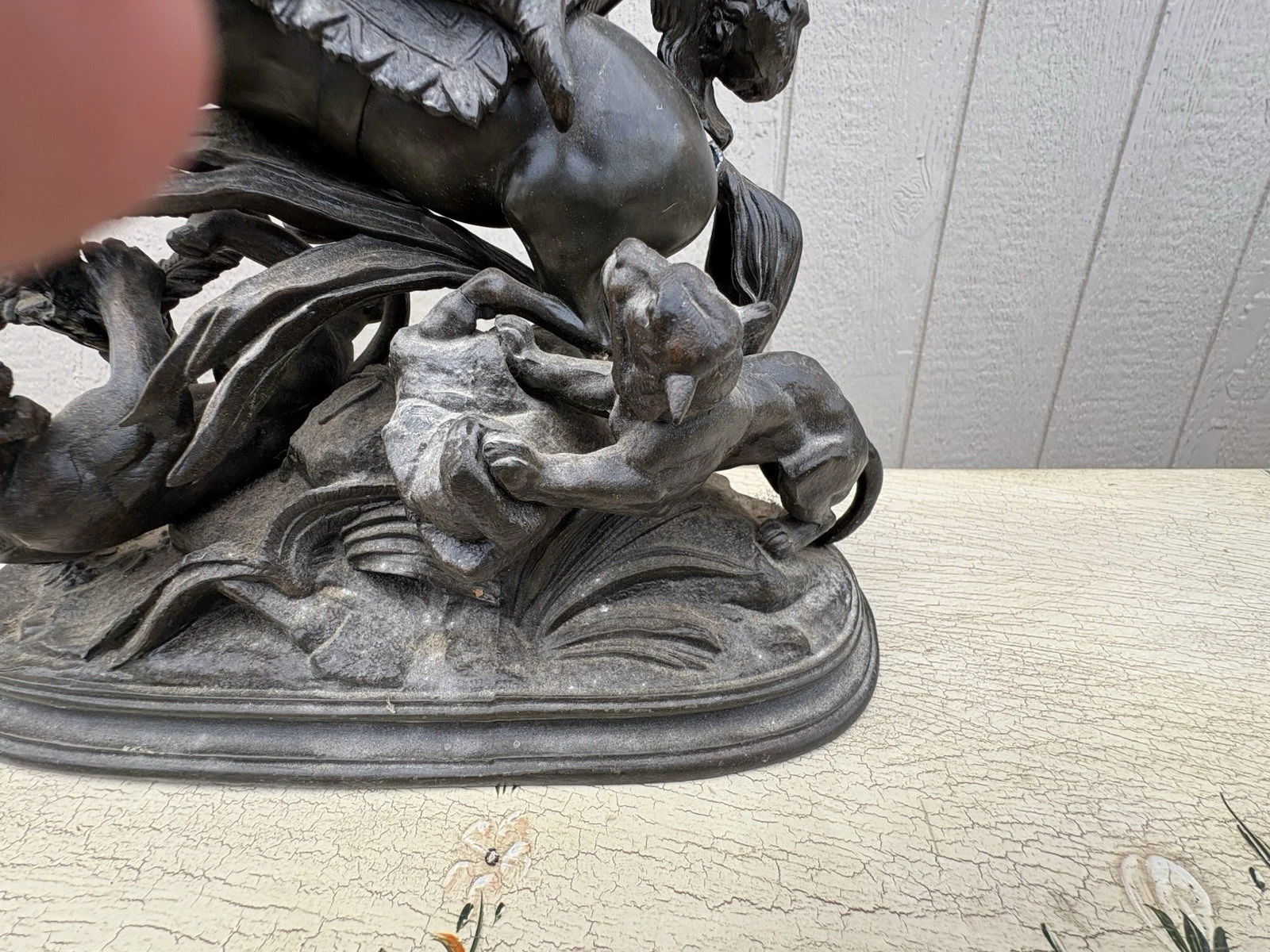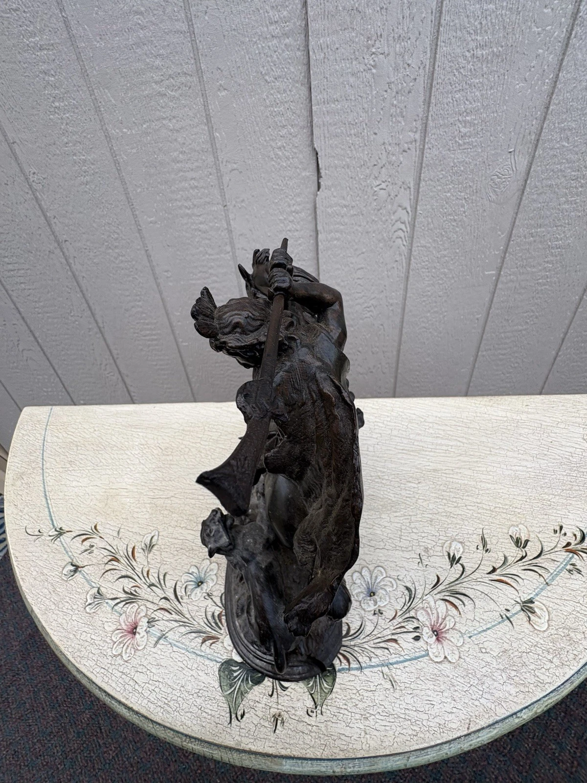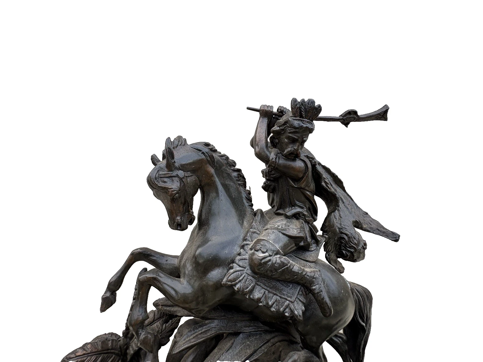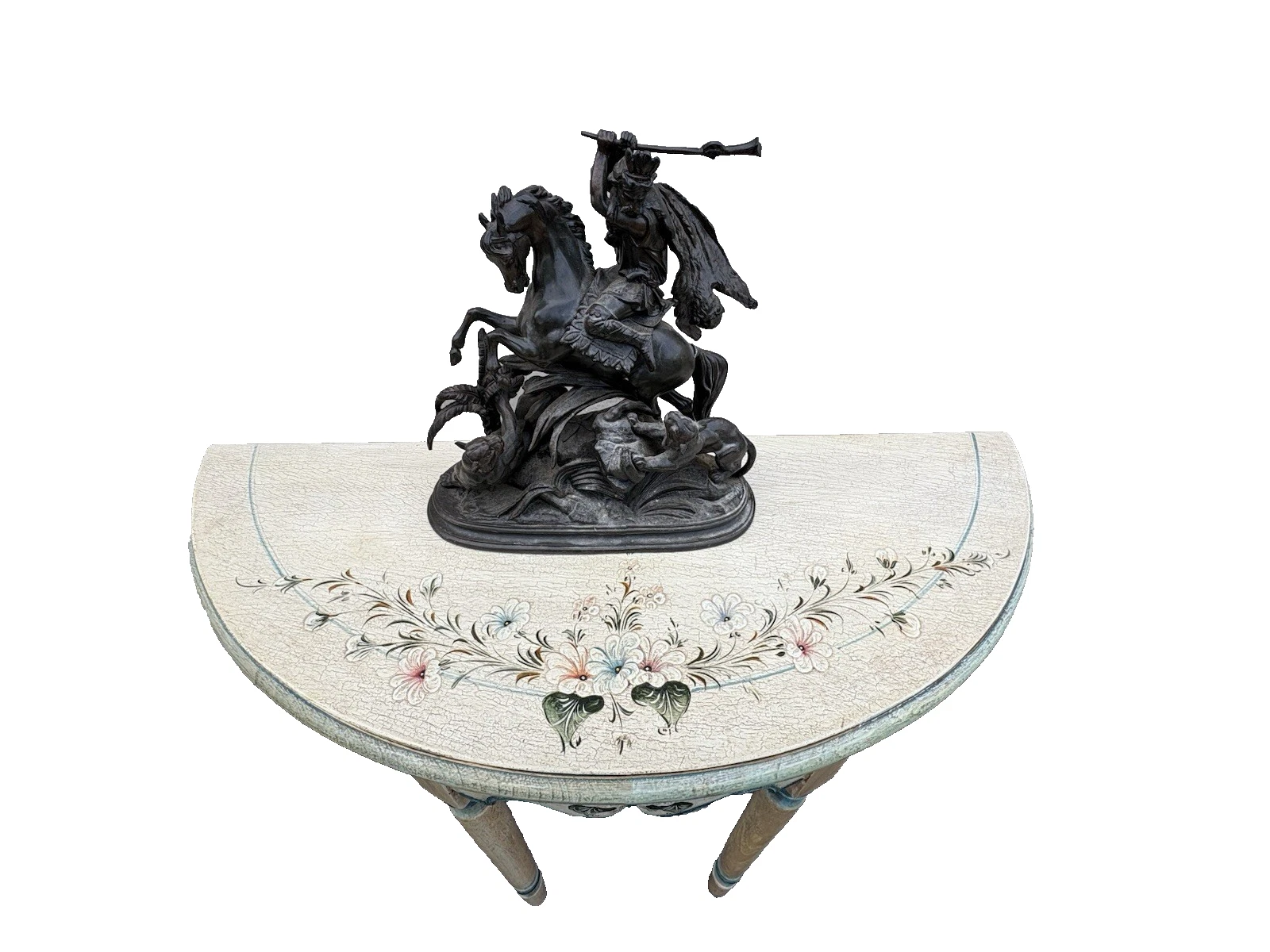 This stunning Victorian bronze figural statue captures the dynamic relationship between man, horse, and lion, showcasing the artistry and craftsmanship of its time. The intricate details, from the flowing mane of the horse to the fierce expressions of the lions, reflect a masterful hand that has preserved the narrative of bravery and nobility. Perfect for adding a touch of historical charm to your collection, this piece invites admiration and sparks conversation, embodying the rich stories of the past in a beautifully crafted sculpture.