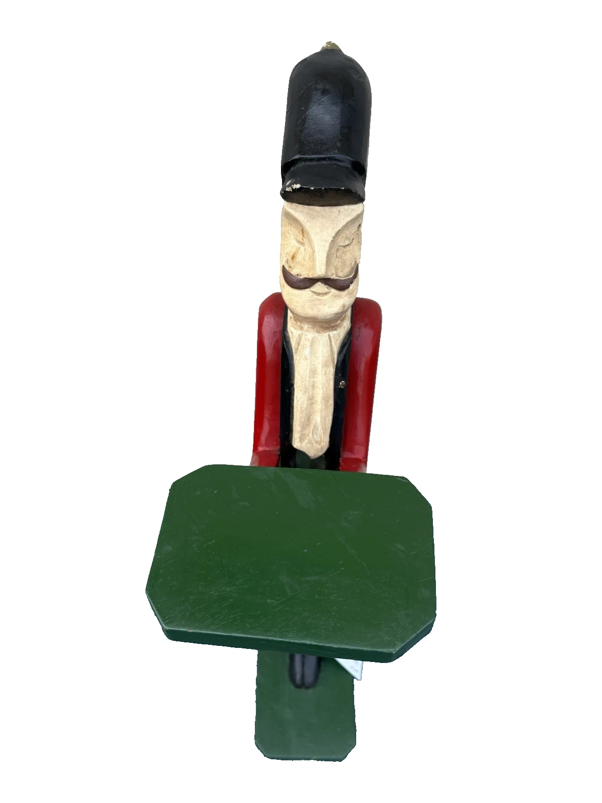 This charming butler card holder stand, crafted in the United States around 1990, showcases the artistry of handmade woodwork with its warm, multi-colored tones. Its graceful height and elegantly simple design make it a delightful addition to any decor, perfect for displaying cards or small treasures. Each curve and joint reflects the care put into its construction, embodying a blend of functionality and timeless style that is sure to charm visitors and enhance your home. A true conversation starter, this piece carries with it a sense of history and tradition that only a family-owned store like ours can appreciate.