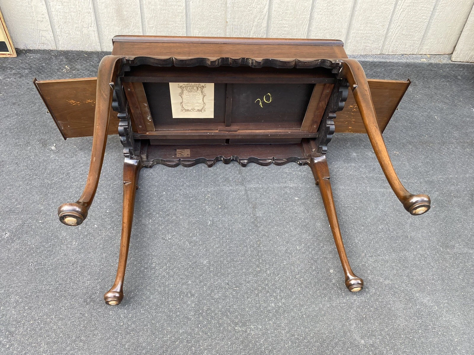 This charming mahogany tea table from C.W. Kittinger beautifully exemplifies the elegance of Queen Anne design, featuring graceful lines and a warm, rich finish that invites both function and style into any room. The thoughtfully crafted pull-out leaves on either side enhance its versatility, providing additional surface space for entertaining or displaying cherished items. With its sturdy construction and timeless appeal, this table serves as a lovely reminder of craftsmanship that prioritizes quality and aesthetic, making it a treasured addition to your home.