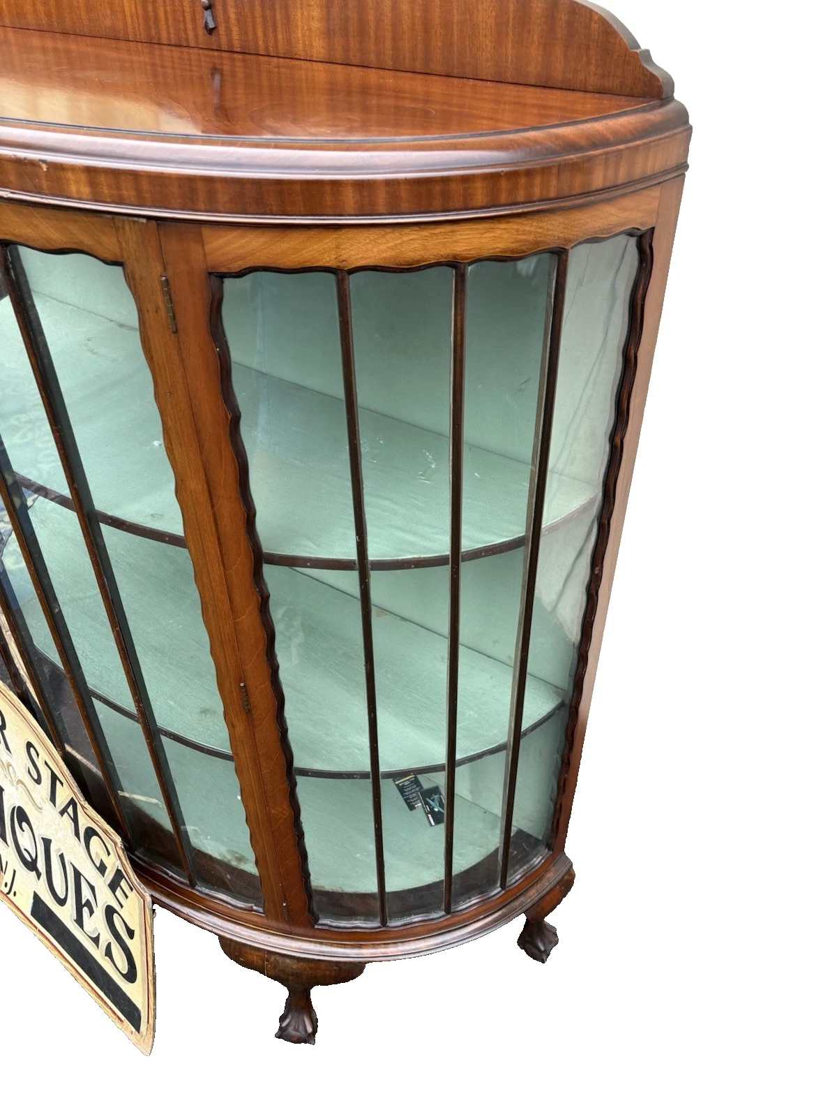 This exquisite Chippendale-style curio cabinet, crafted from rich mahogany in the 1940s, embodies timeless elegance and meticulous craftsmanship. With its graceful claw feet and two spacious shelves, it offers a beautiful platform to showcase your cherished collectibles or fine china. The cabinet’s warm, deep hue and sturdy construction reflect the artistry of a bygone era, making it a cherished addition to any home. Each curve and detail tells a story, inviting you to create new memories with this remarkable piece of history.