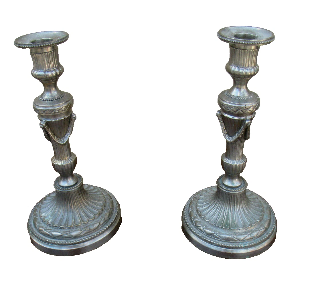 COL 01 WS: Pair Fancy Silver Metal Fancy Candle Sticks