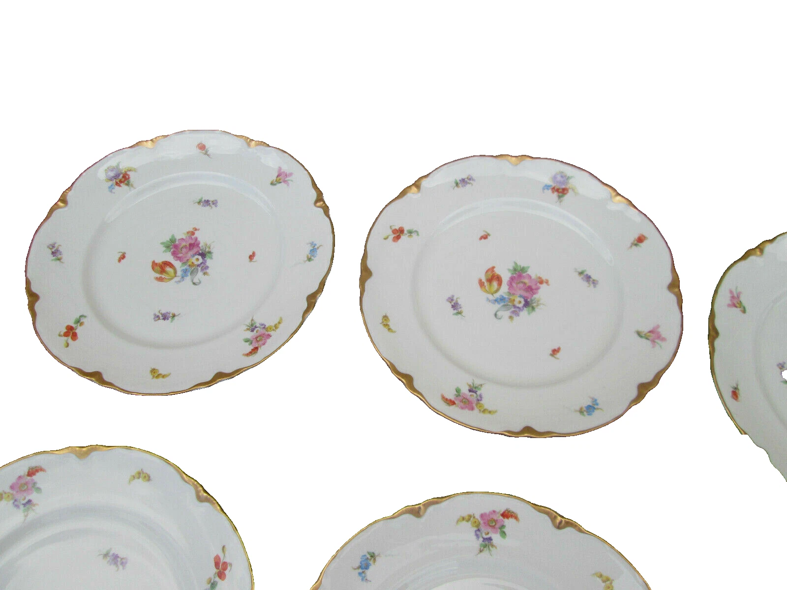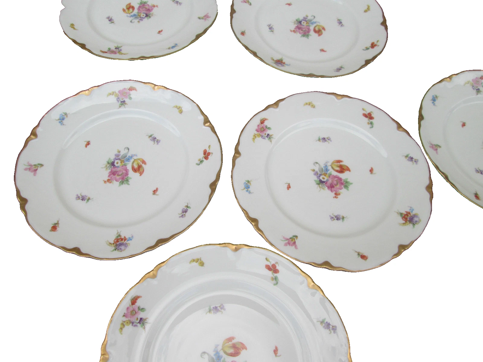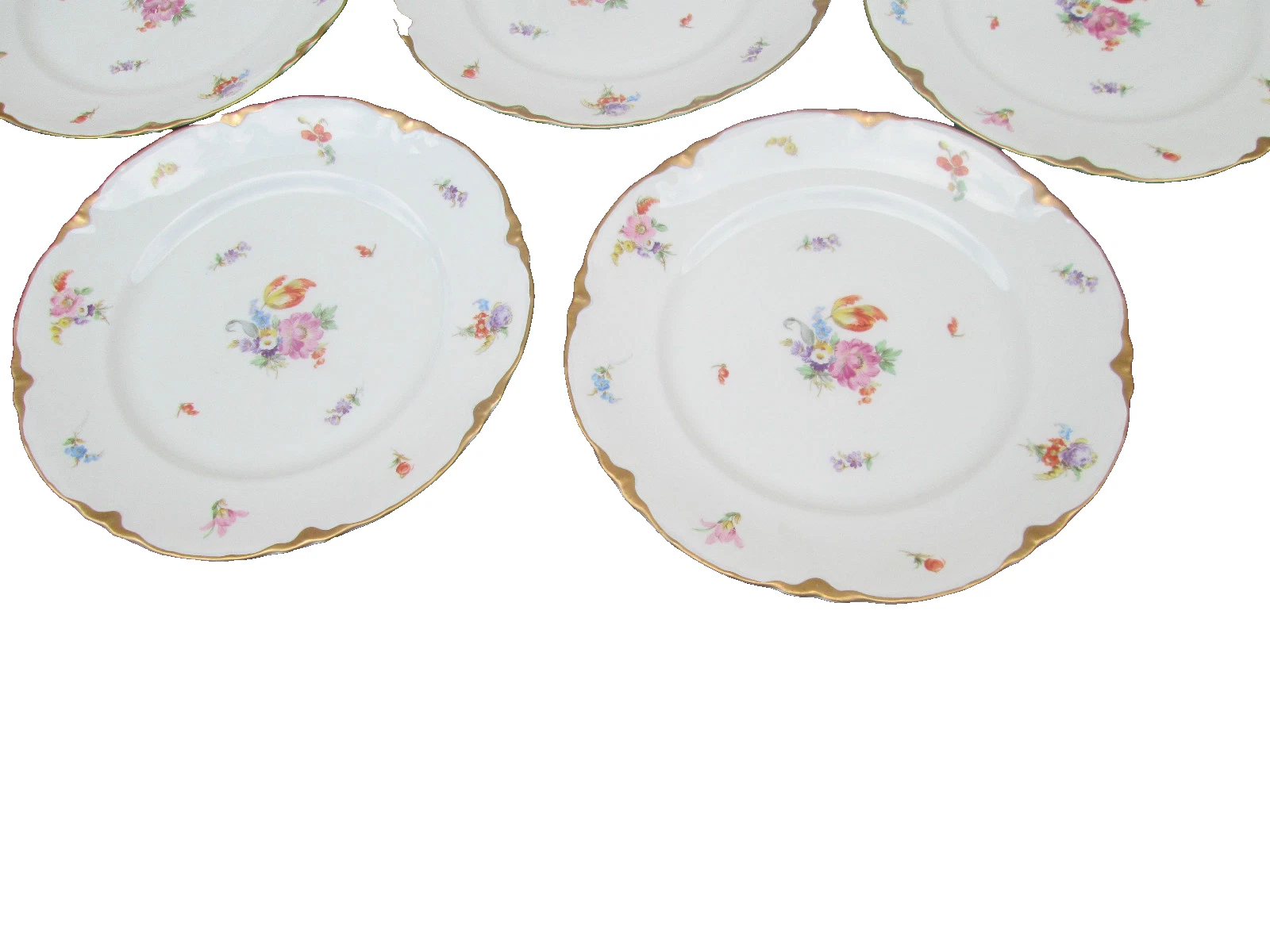 This delightful set of ten Warwick vintage porcelain dinner plates embodies the grace of early 20th century American artistry. Each plate features intricate floral designs blooming against a gentle ivory background, beautifully accented by delicate gold rims, showcasing the craftsmanship that went into their creation. Perfect for elevating both everyday meals and festive gatherings, these plates bring a touch of nostalgia and charm to your dining experience, inviting stories and warmth to the table with every use.