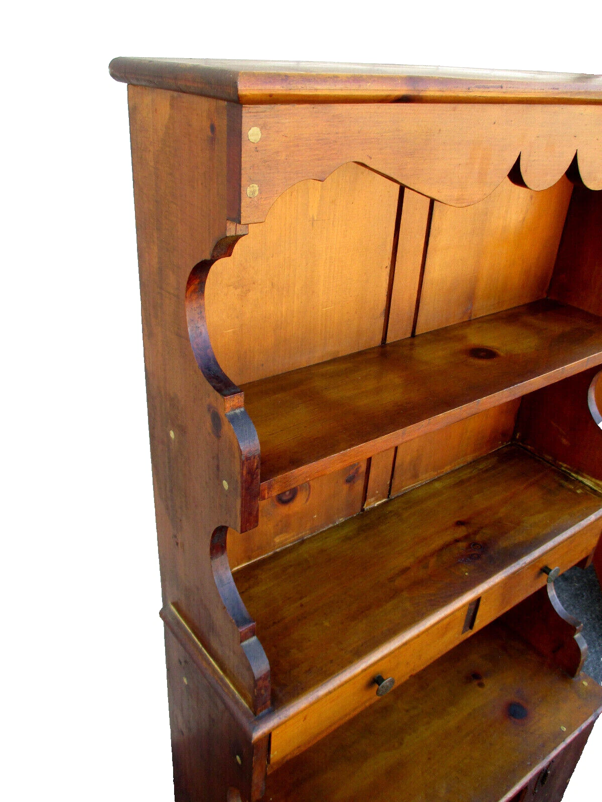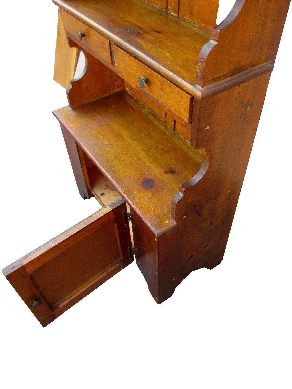 This charming Country Primitive cupboard cabinet is a delightful miniature salesman sample that captures the essence of 1920s craftsmanship. Handcrafted from solid wood, its rustic character shines through with a warm patina and sturdy construction, making it a perfect accent for any room. With two shelves to display treasured items, this unique piece not only serves as a functional curio but also a conversation starter, inviting stories of the past into your home. Embrace the nostalgia of bygone days with this lovely addition to your decor.
