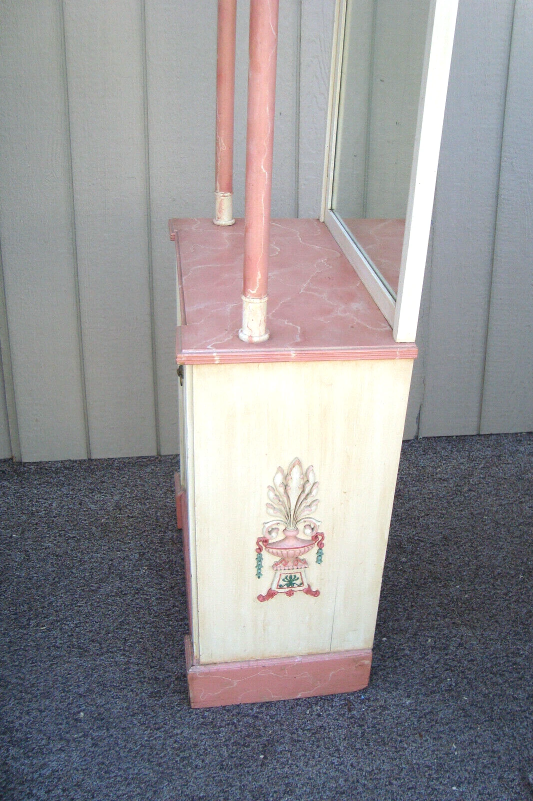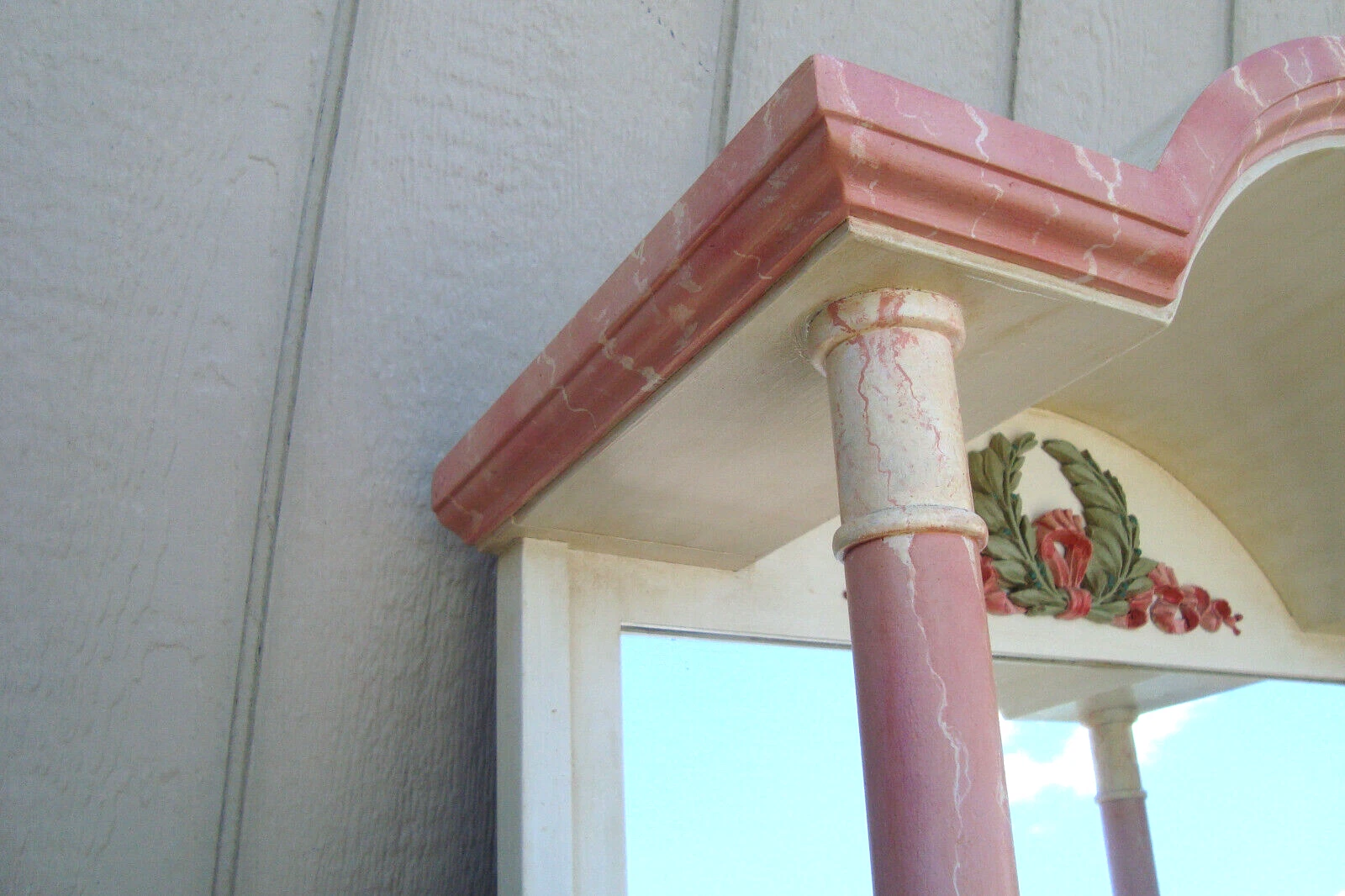 Custom Faux Painted Wood Bookcase Curio Cabinet with Mirror