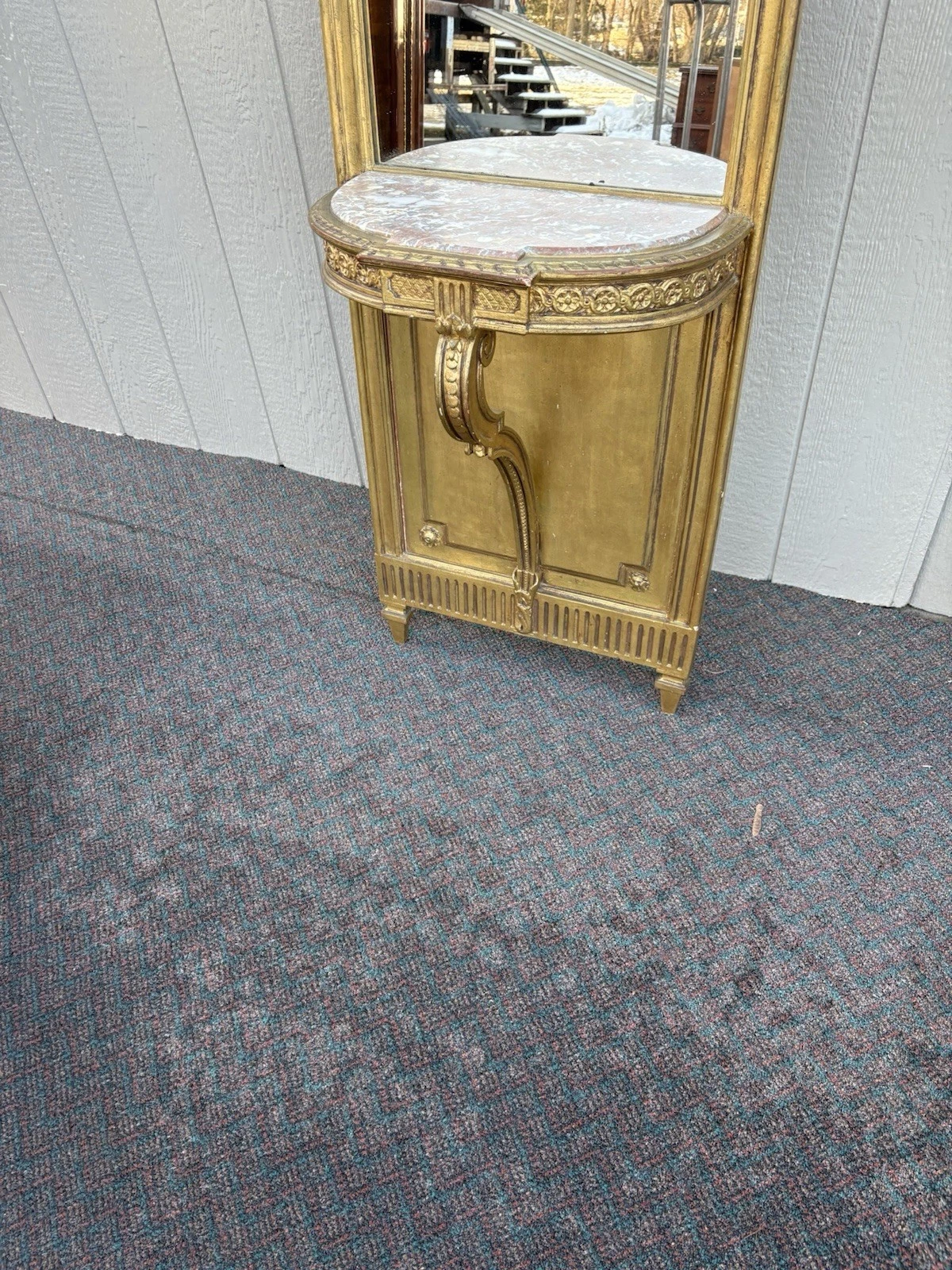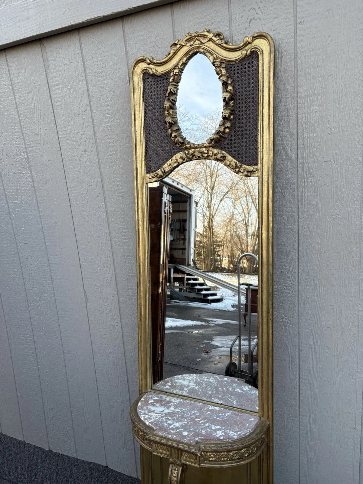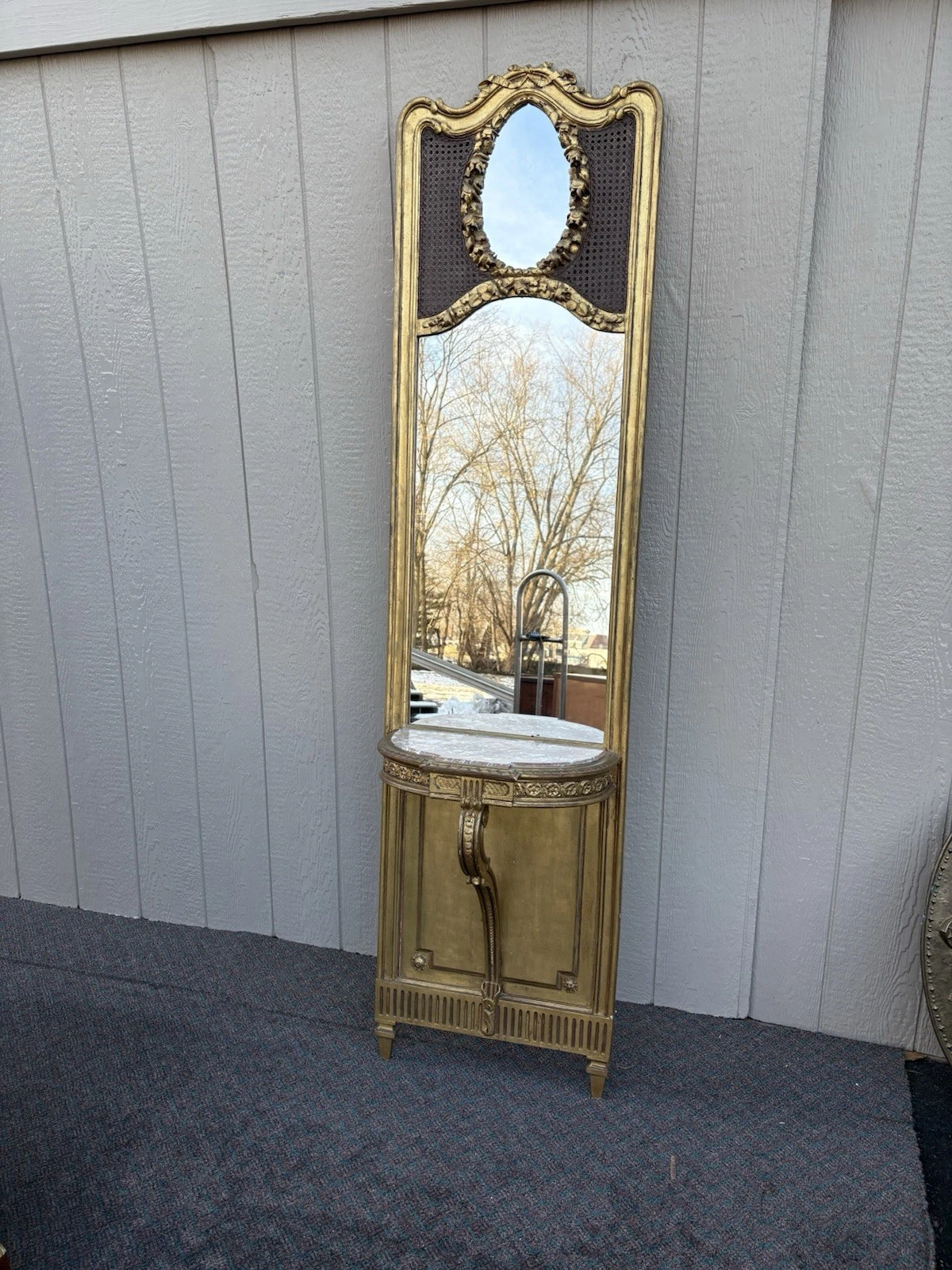 Decorator Gold Pier Mirror with Marble Top Shelf
