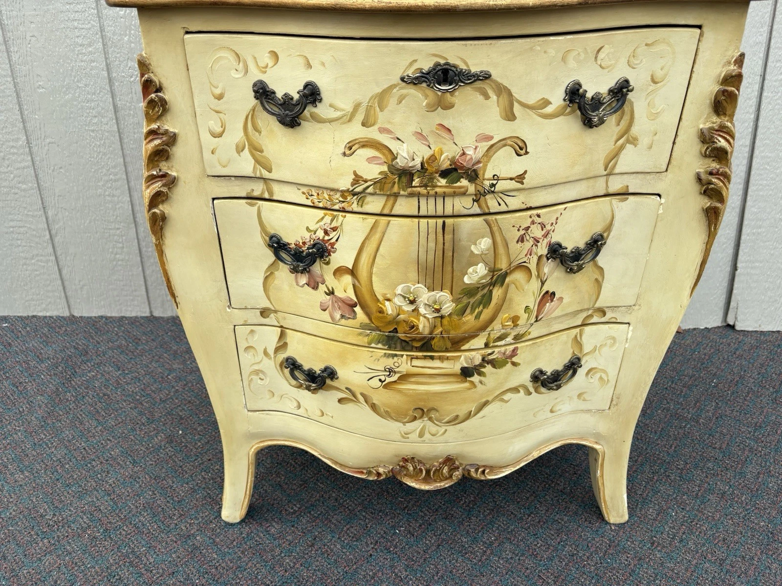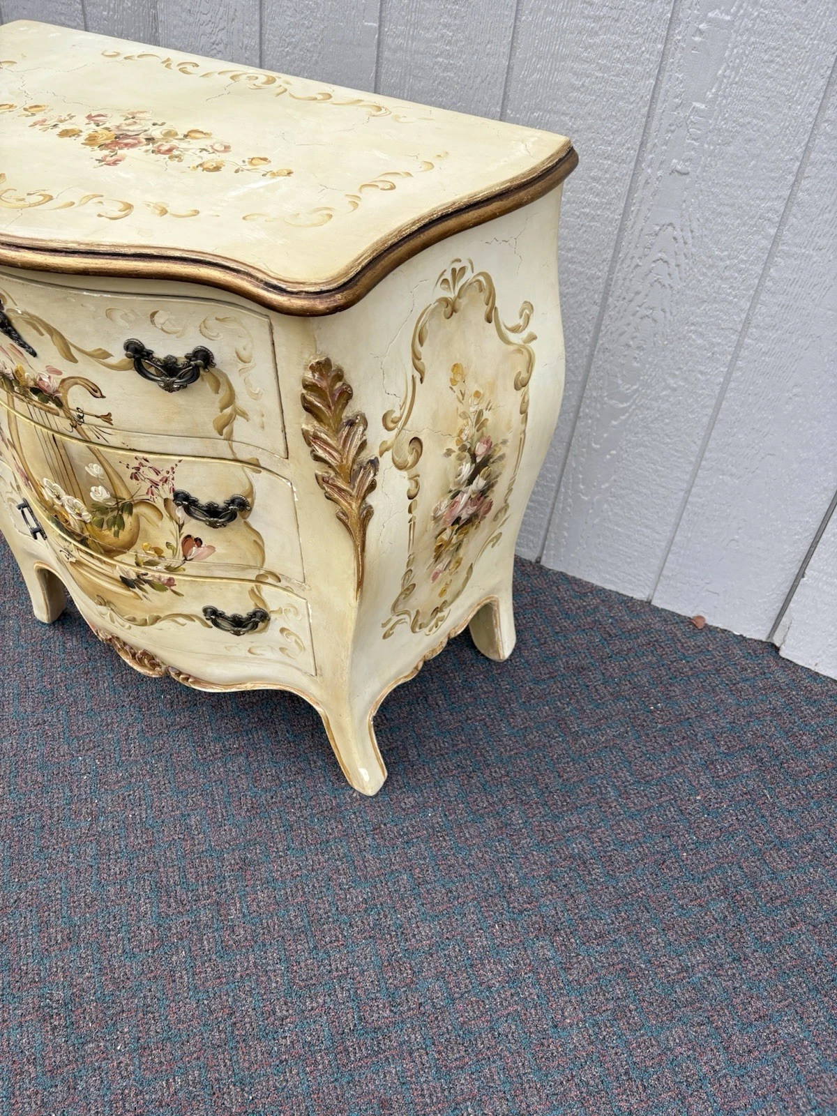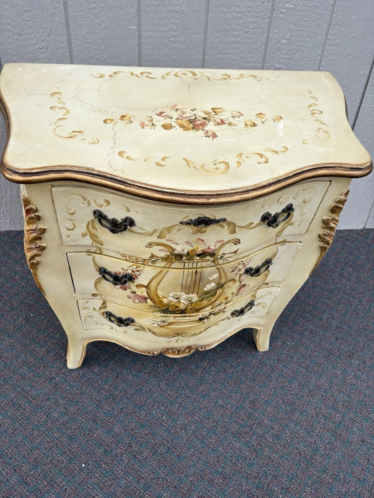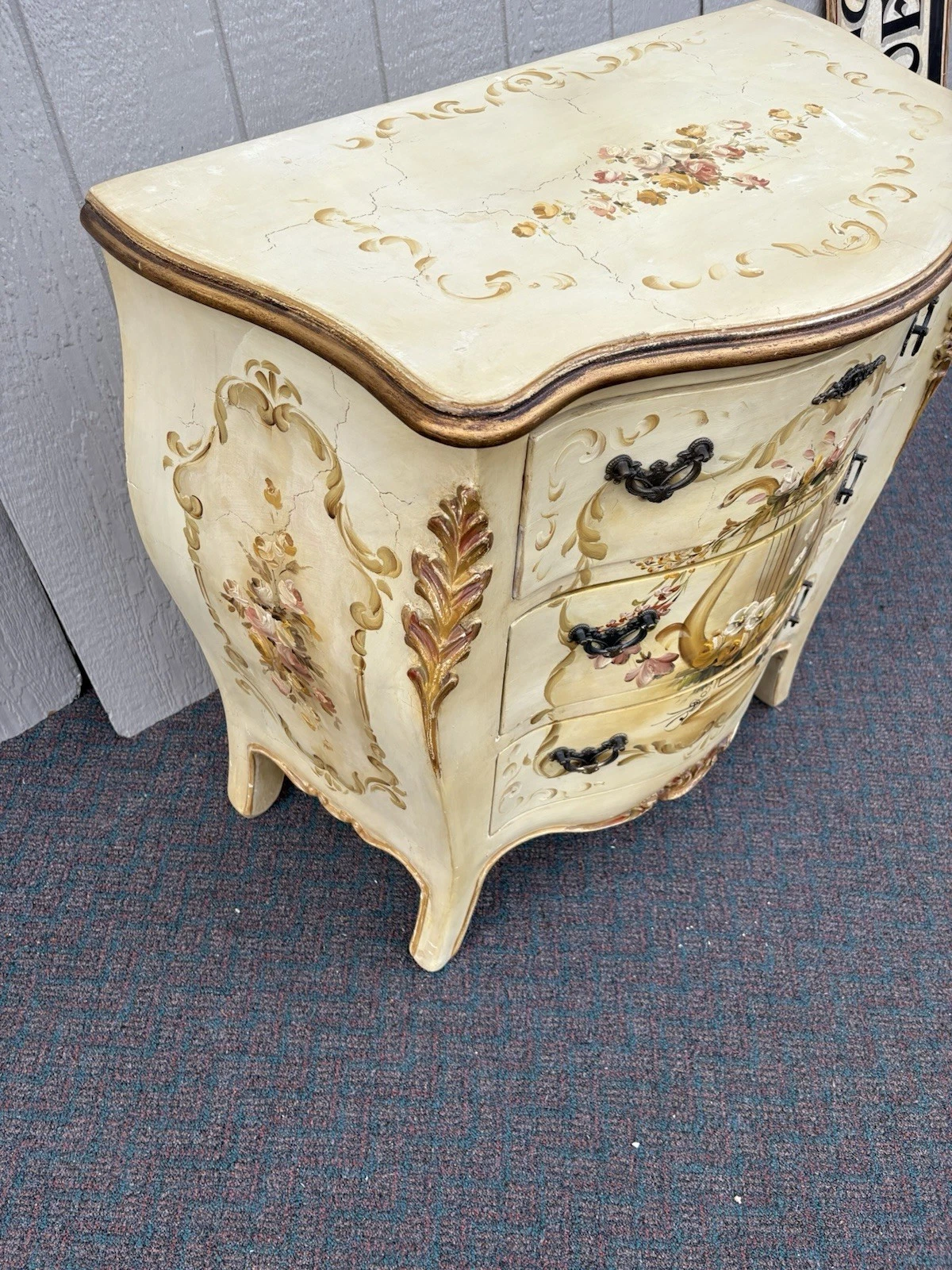 This charming decorator server cabinet dresser chest showcases the artistry of handmade craftsmanship with its vibrant multicolor finish that effortlessly brightens any room. Featuring three spacious drawers adorned with a playful mix of tones, this piece embodies a delightful blend of function and style, making it a versatile addition to your home. Its post-1950 design reflects a warm, inviting aesthetic, perfect for showcasing your personal treasures while adding a touch of vintage flair to your decor. A true conversation starter, this unique dresser carries a story of creativity and care that will enrich your living space.