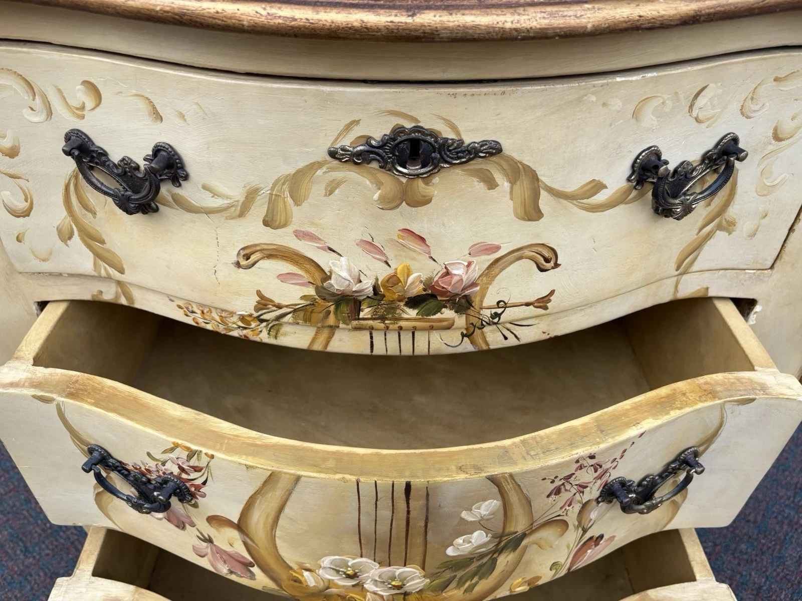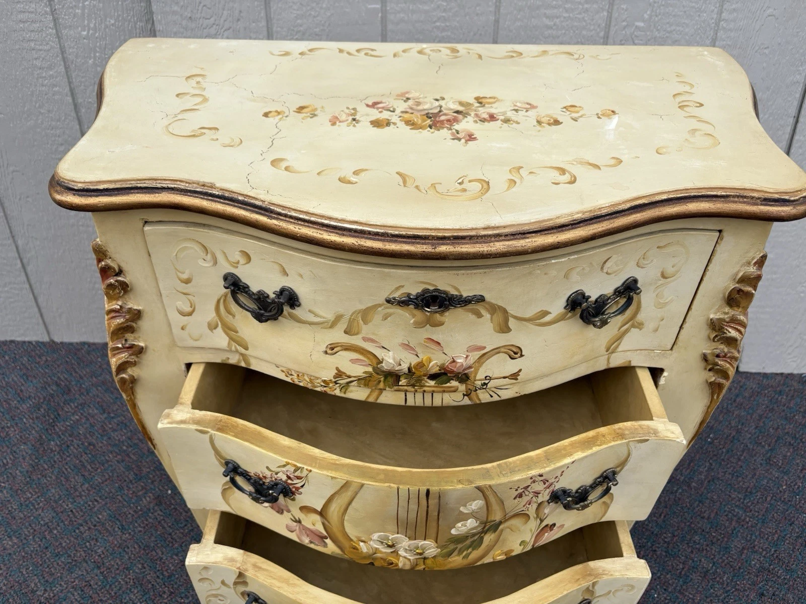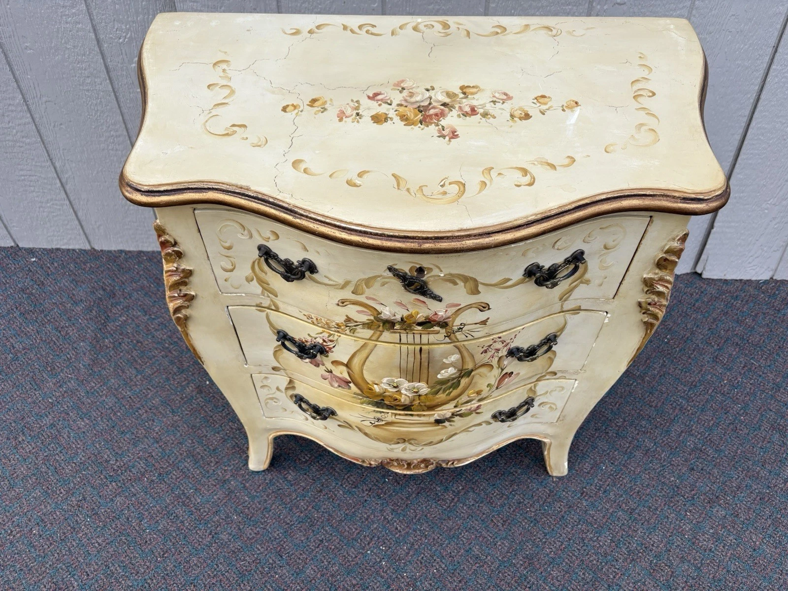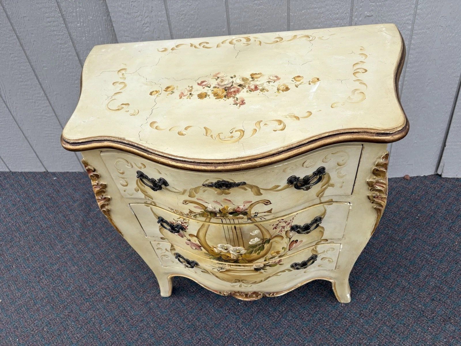 This charming decorator server cabinet dresser chest showcases the artistry of handmade craftsmanship with its vibrant multicolor finish that effortlessly brightens any room. Featuring three spacious drawers adorned with a playful mix of tones, this piece embodies a delightful blend of function and style, making it a versatile addition to your home. Its post-1950 design reflects a warm, inviting aesthetic, perfect for showcasing your personal treasures while adding a touch of vintage flair to your decor. A true conversation starter, this unique dresser carries a story of creativity and care that will enrich your living space.