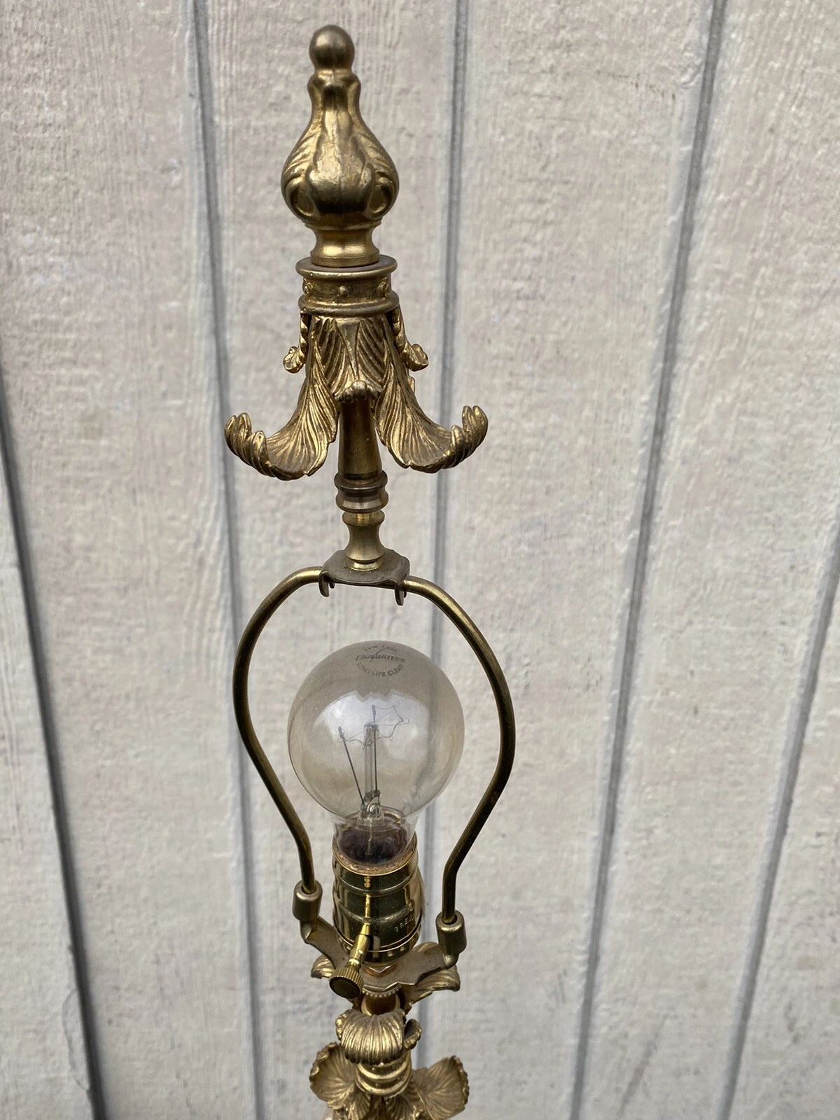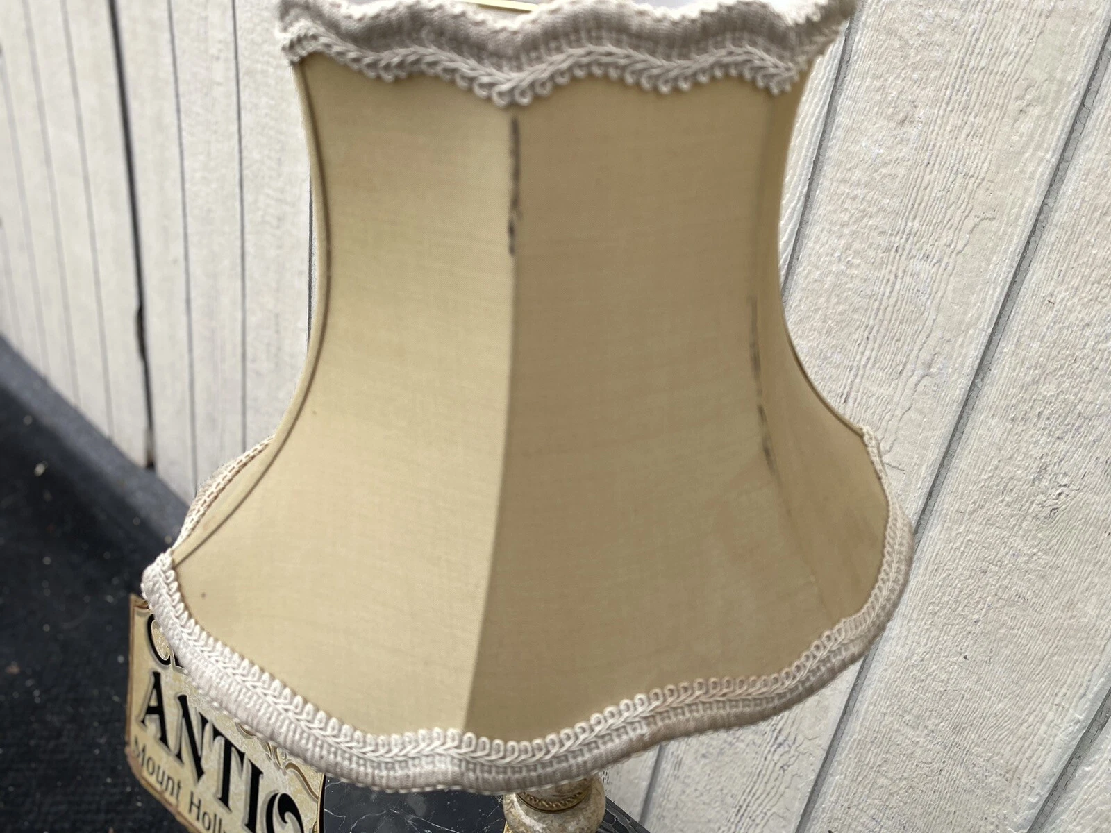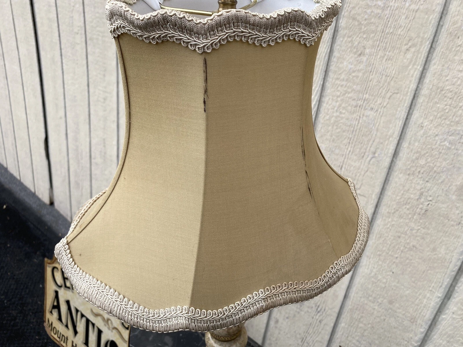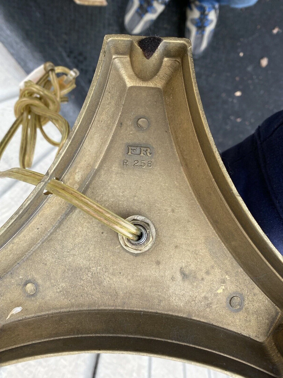 Illuminate your space with this charming decorator table lamp, a delightful piece from the 1970s that showcases a unique blend of color and style. The vintage shade, while showing some wear that adds to its character, complements the intricately stamped base marked FR r258, evoking a sense of nostalgia and craftsmanship. Perfect for adding a touch of warmth to any room, this lamp embodies the love and history that comes with family-owned antiques, making it not just a light source but a conversation starter in your home.