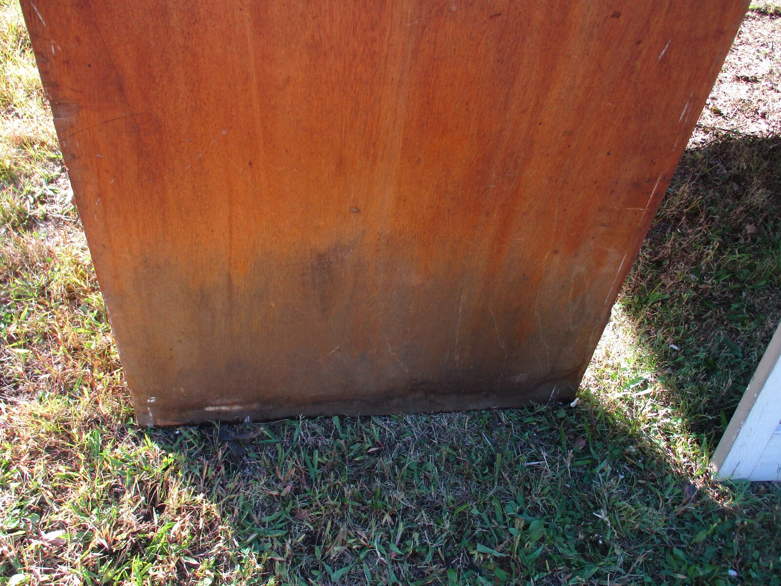 This vintage mid-century wood door from the 1960s beautifully marries form and function, featuring elegant glass panels that allow natural light to flow into your space. Crafted with care, its sturdy construction hints at a rich history, while subtle wear and discoloration impart an authentic charm that only time can bestow. The door’s unique character is further highlighted by a touch of wood damage on one edge, adding to its story and making it a perfect statement piece for your home. Embrace the nostalgia and warmth of this timeless entryway, a true testament to mid-century design.