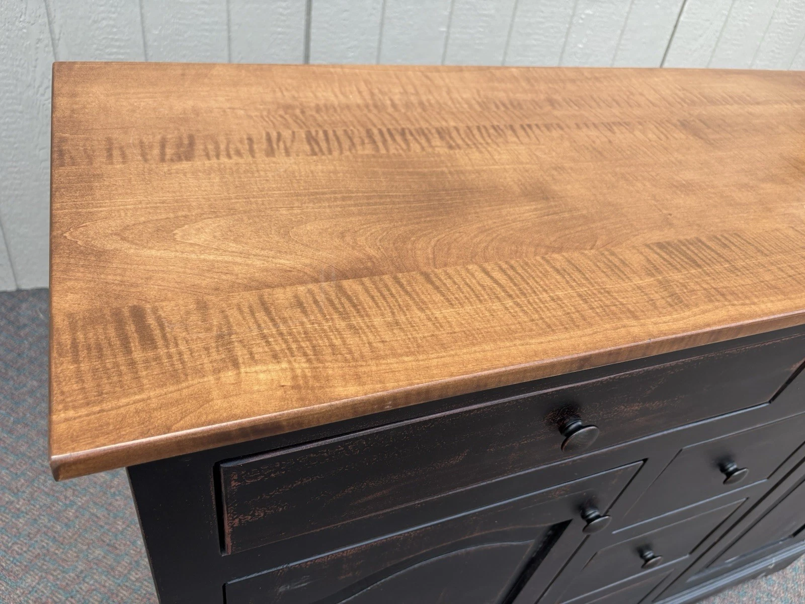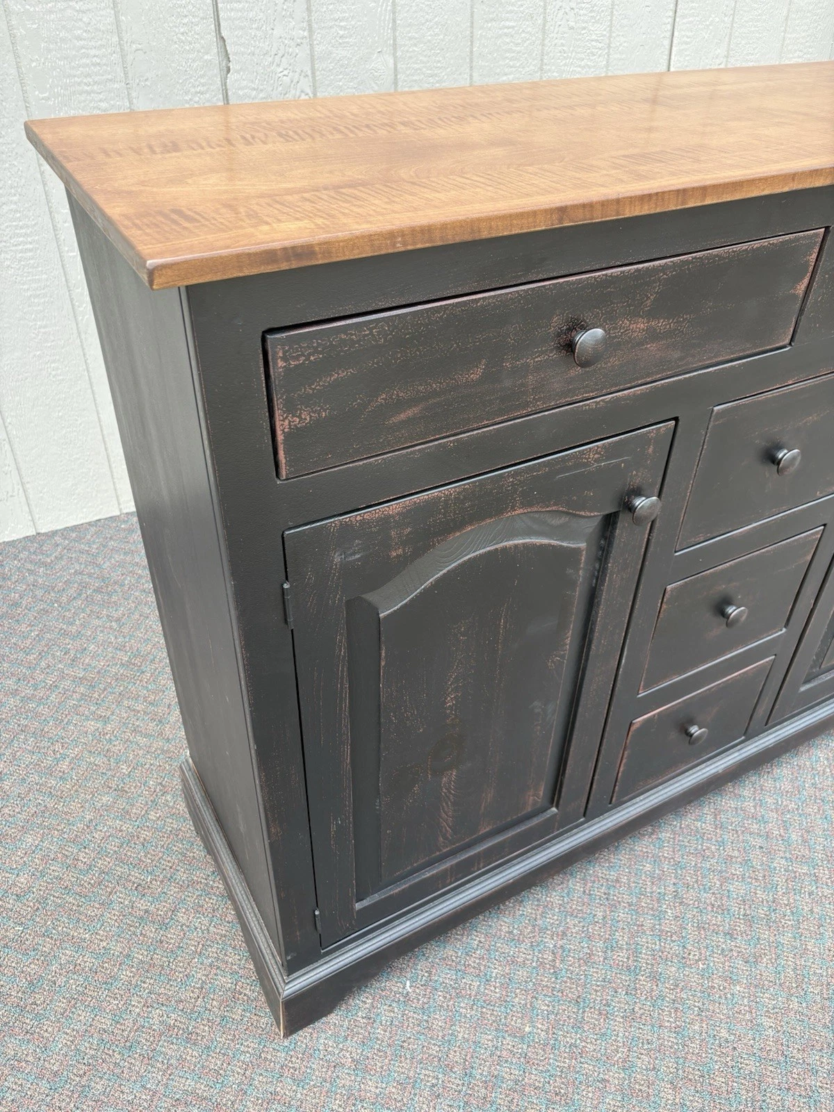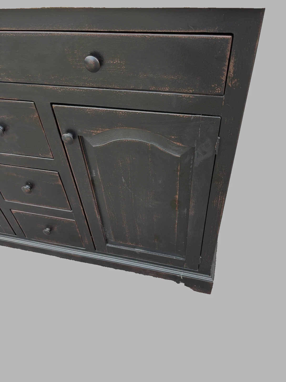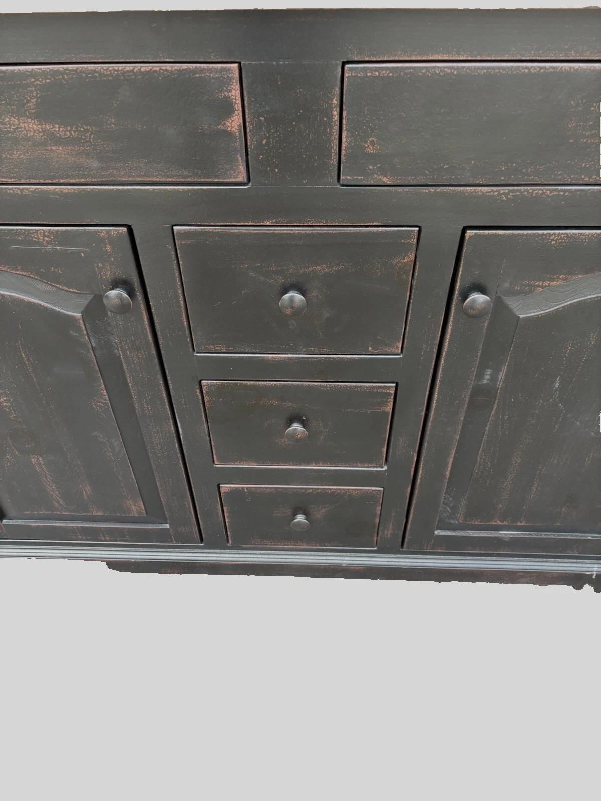 This striking modern buffet sideboard showcases a beautiful interplay of rich ebony tones and vibrant multicolors, making it a captivating centerpiece for any dining room or entryway. Crafted with meticulous attention to detail, it features five dovetailed drawers and two spacious doors, offering ample storage while exuding an air of sophistication. The sturdy construction and clean lines reflect a timeless elegance, perfect for both contemporary and traditional settings. As a piece that bridges modern design with functional beauty, this sideboard is sure to enhance your home with its unique character and charm.