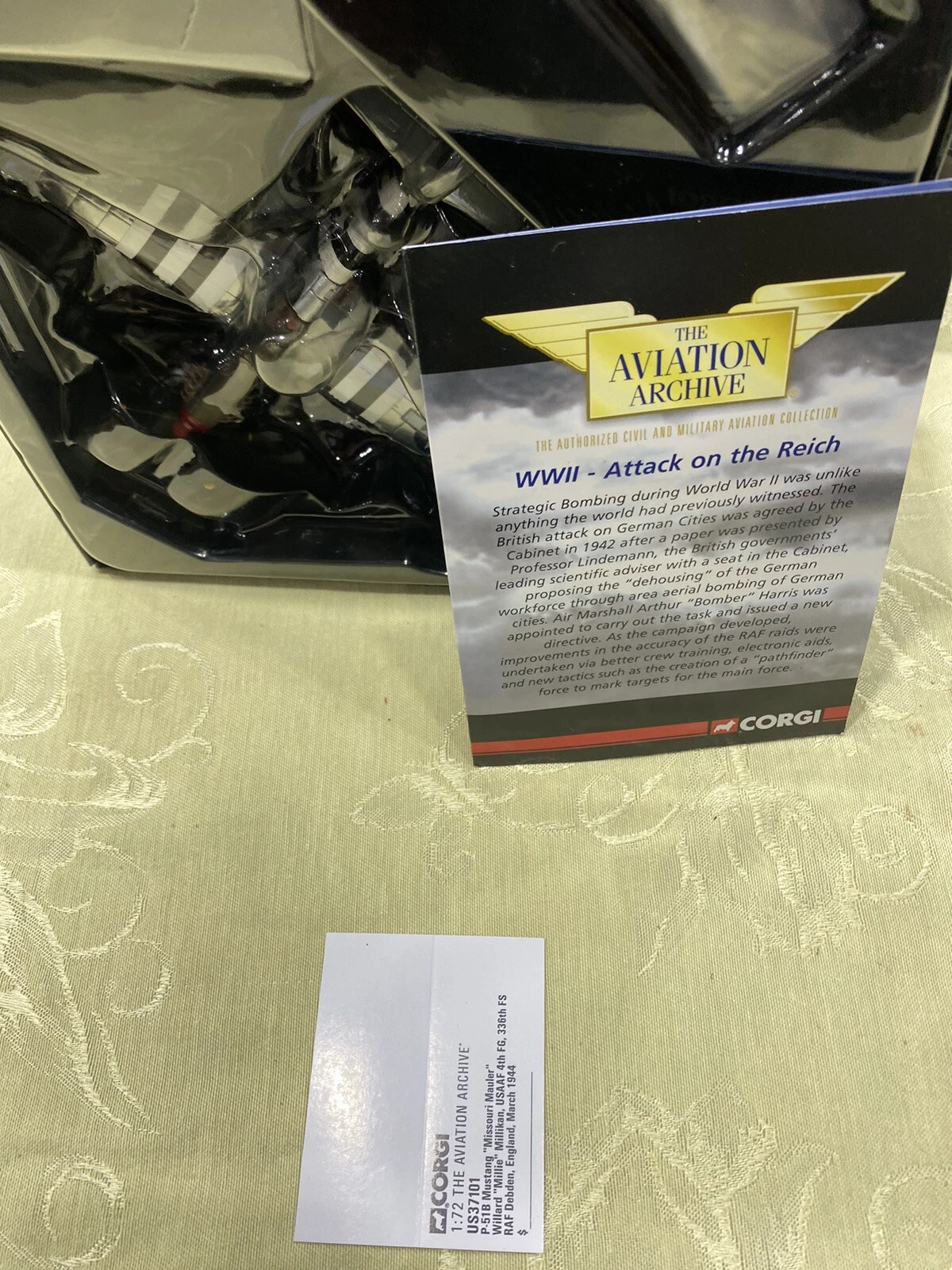 This exquisite diecast model of the P-51B Mustang “Missouri Mauler,” piloted by Willard Millie Millikan during World War II, captures the spirit of aviation history with remarkable detail. Crafted in 1944, this limited edition piece reflects the artistry and precision of its era, showcasing vibrant multi-colored finishes that evoke the pride of the USAAF. Housed in its original box with accompanying paperwork, this model not only serves as a striking display item but also a heartfelt tribute to the bravery of those who flew in the skies.