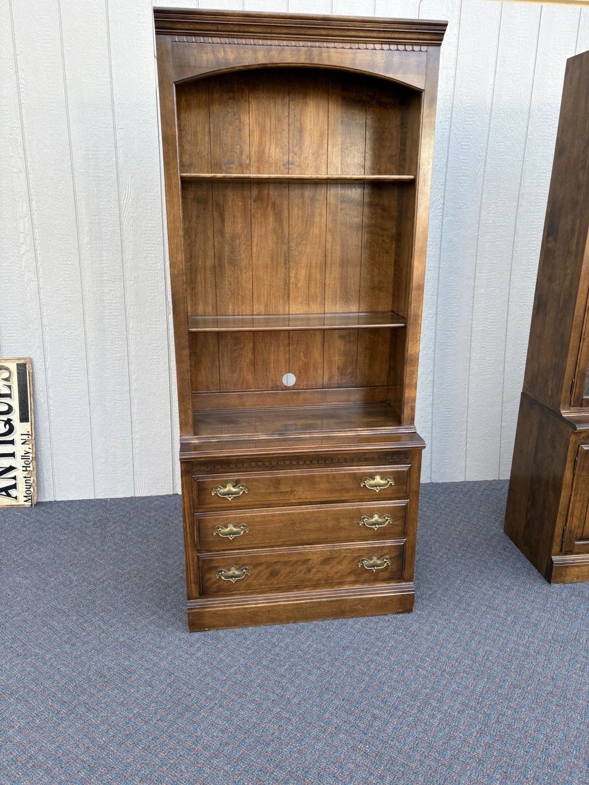 This elegant Ethan Allen bookcase curio china cabinet, crafted from rich maple, exudes a timeless charm that blends seamlessly with traditional decor. Its three generously sized shelves provide an ideal showcase for your treasured collectibles, while the sturdy construction ensures it remains a beloved centerpiece for years to come. With its warm wood tones and classic design, this piece carries a sense of history and craftsmanship that reflects the quality of American furniture-making. Perfect for adding a touch of sophistication to any room, this cabinet invites you to share your stories and cherished possessions.
