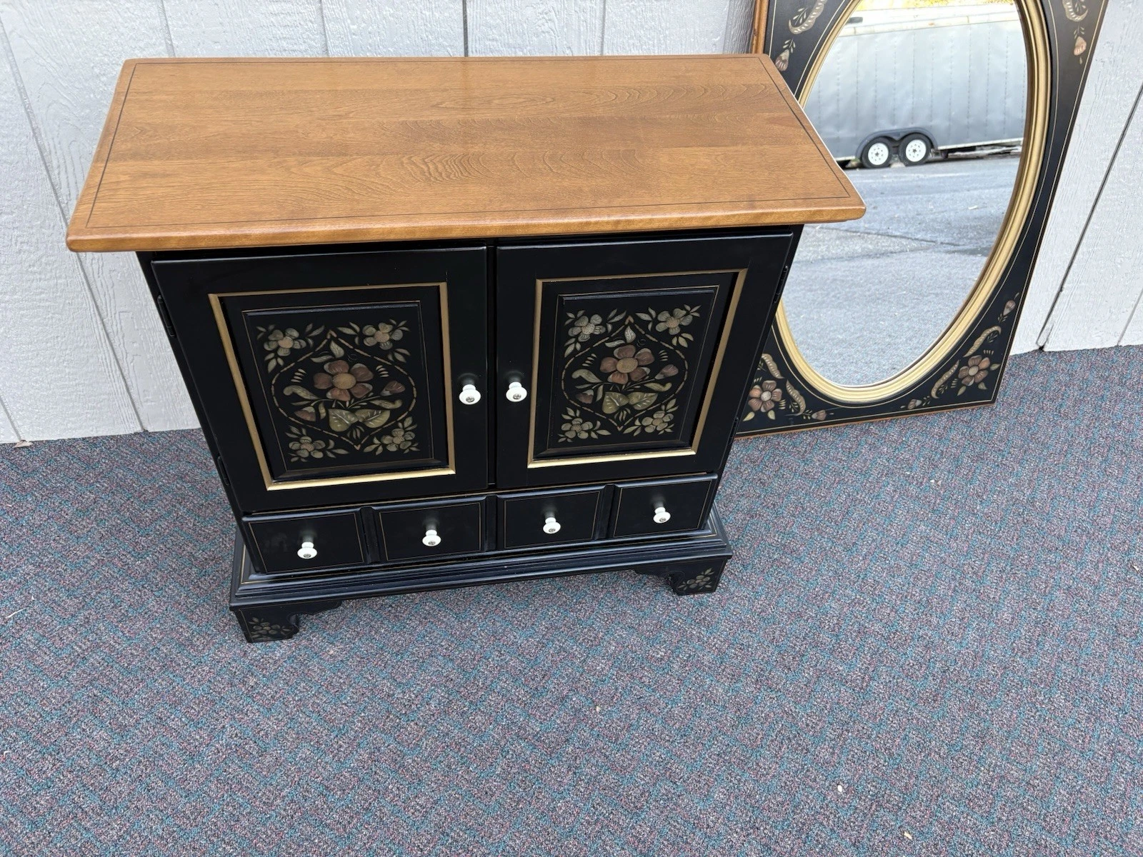 This charming Ethan Allen storage cabinet chest, adorned with a beautifully crafted mirror, showcases the timeless elegance of traditional American design. Made from rich maple, it features a warm multicolor finish that adds a touch of character to any room. With its thoughtful construction and ample storage space, this piece not only serves a practical purpose but also reflects the craftsmanship of its era, making it a delightful addition to your home. Embrace the blend of functionality and style that this cabinet brings, enhancing your space with its unique charm.