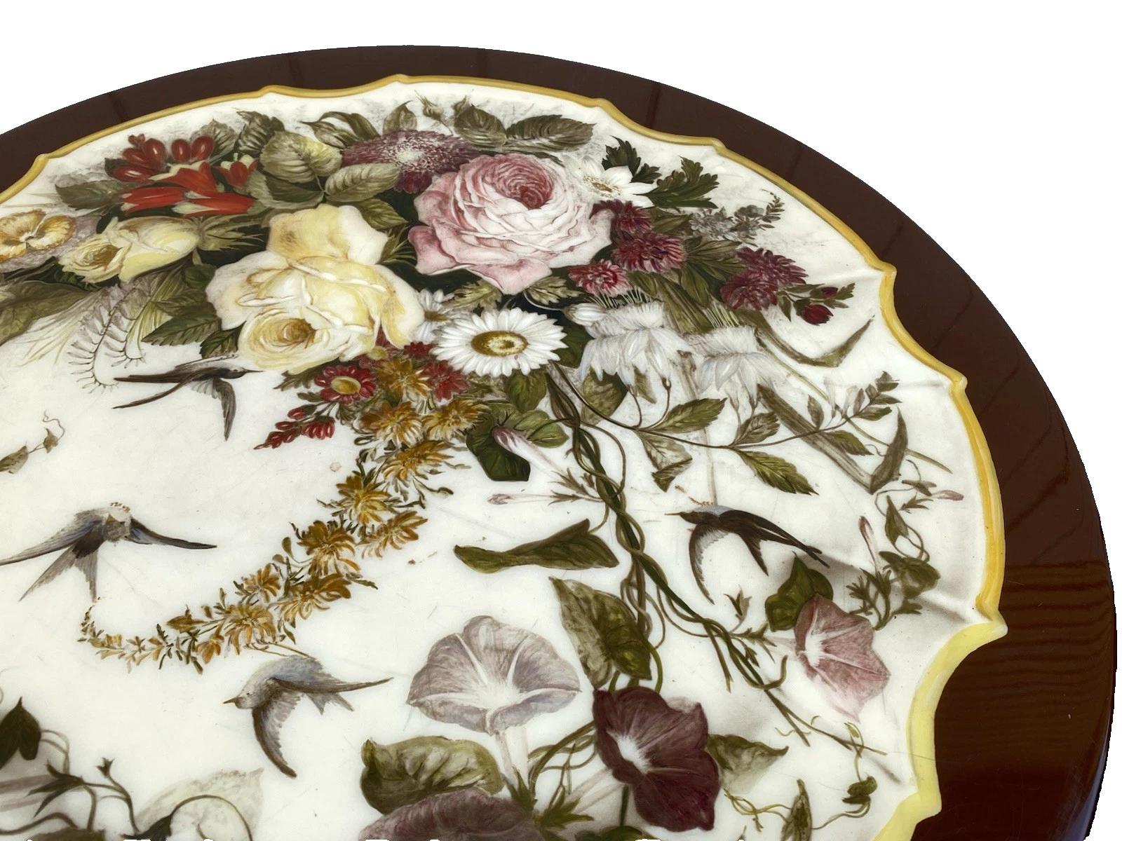 This charming floral pie crust lamp table stand is a delightful blend of modern design and timeless elegance, perfect for adding a splash of color to your living space. Crafted with care, its sturdy construction features a beautifully scalloped edge that brings a touch of whimsy to its functionality. The vibrant floral motif adds a unique character, making it an ideal companion for your favorite lamp or as a stand-alone accent piece. A wonderful addition to any home, it reflects the warm, inviting spirit of family gatherings and cherished moments.