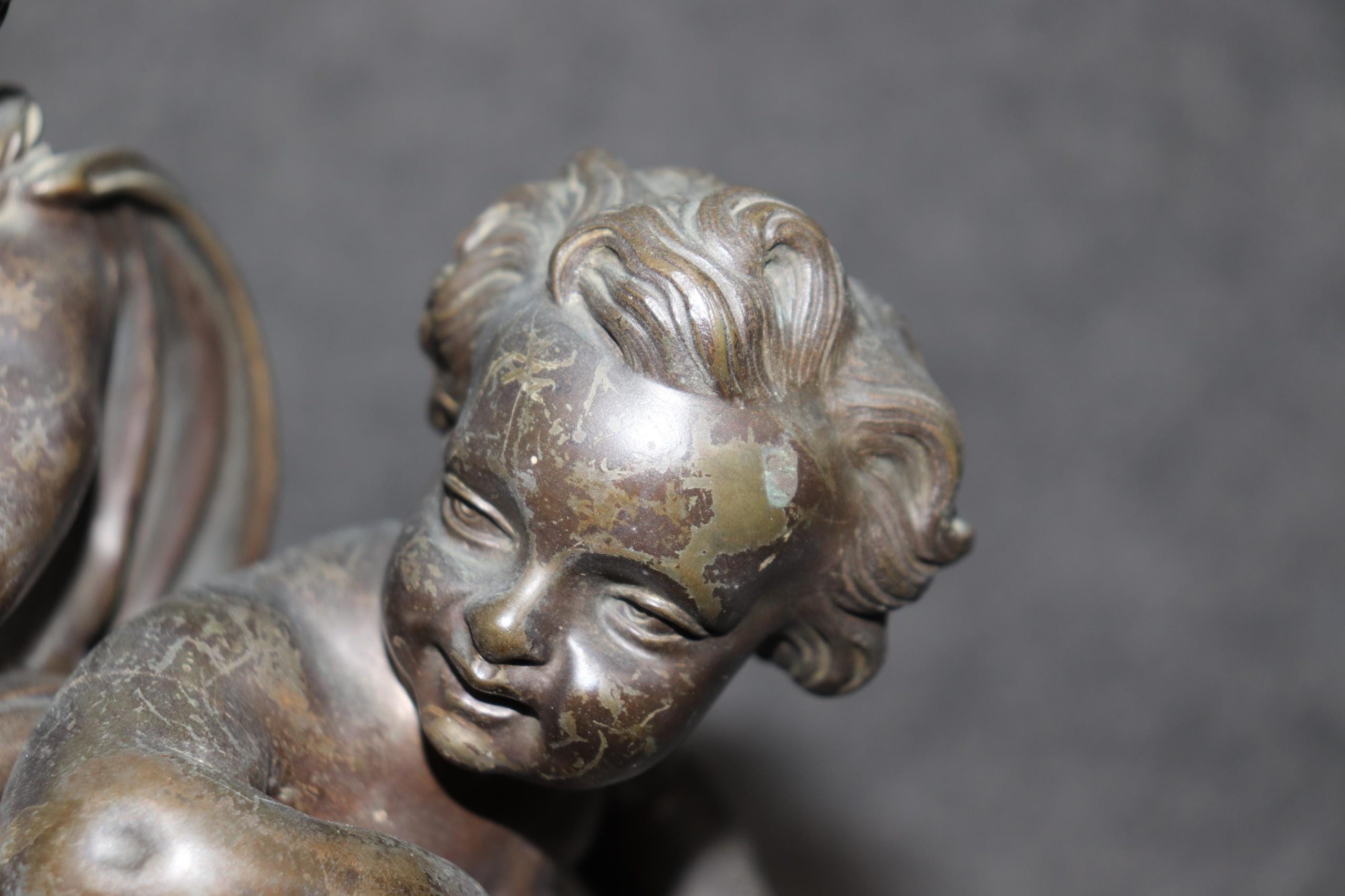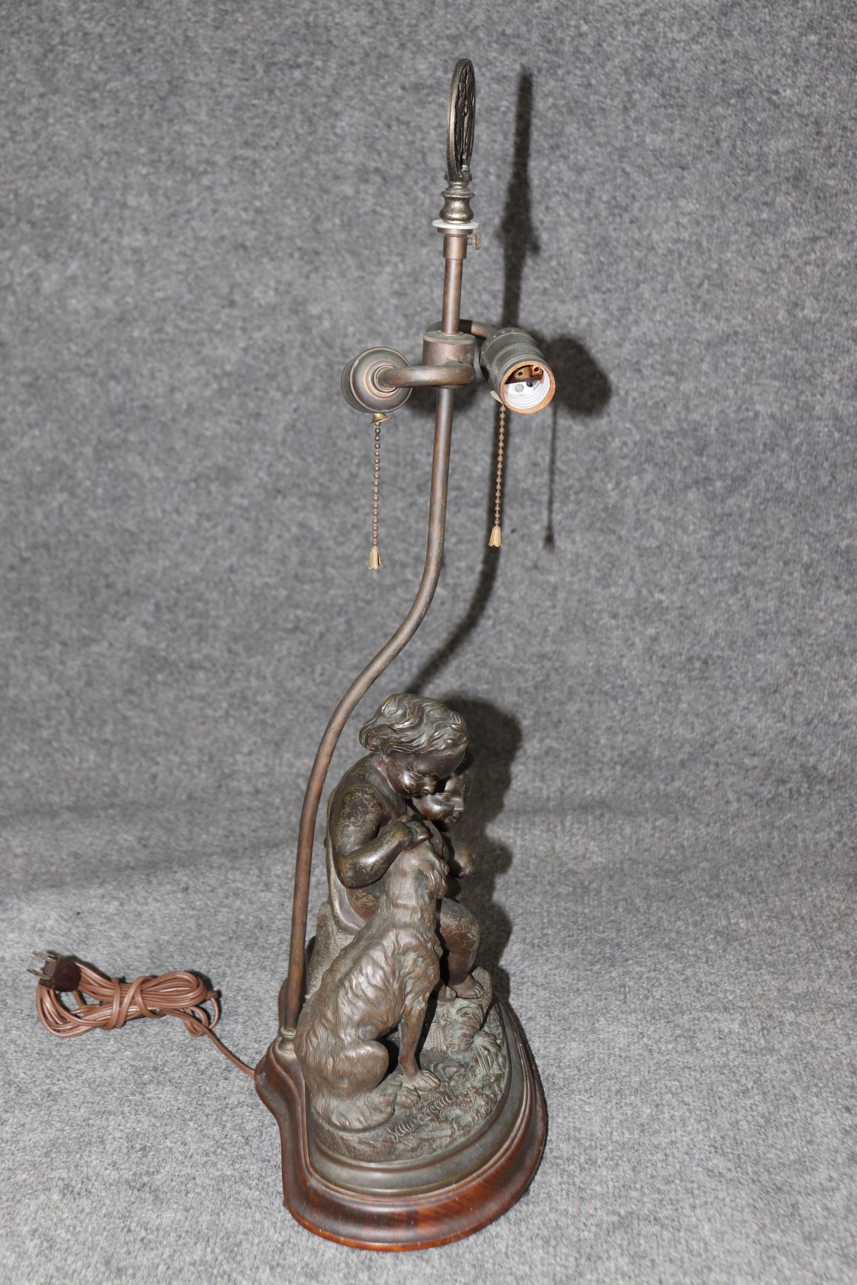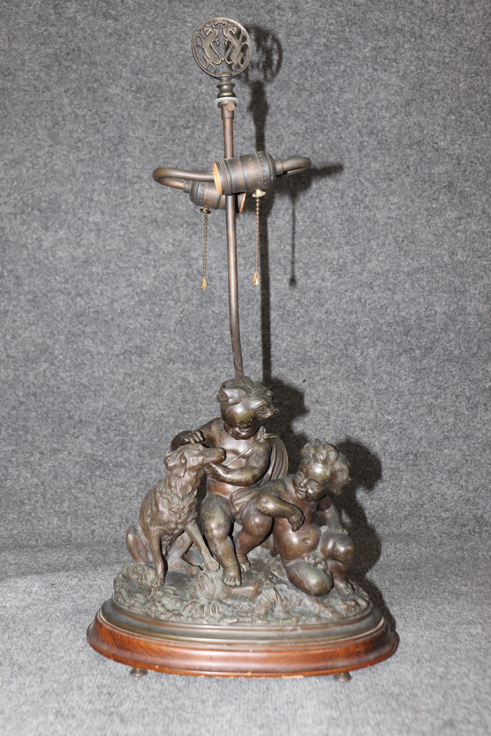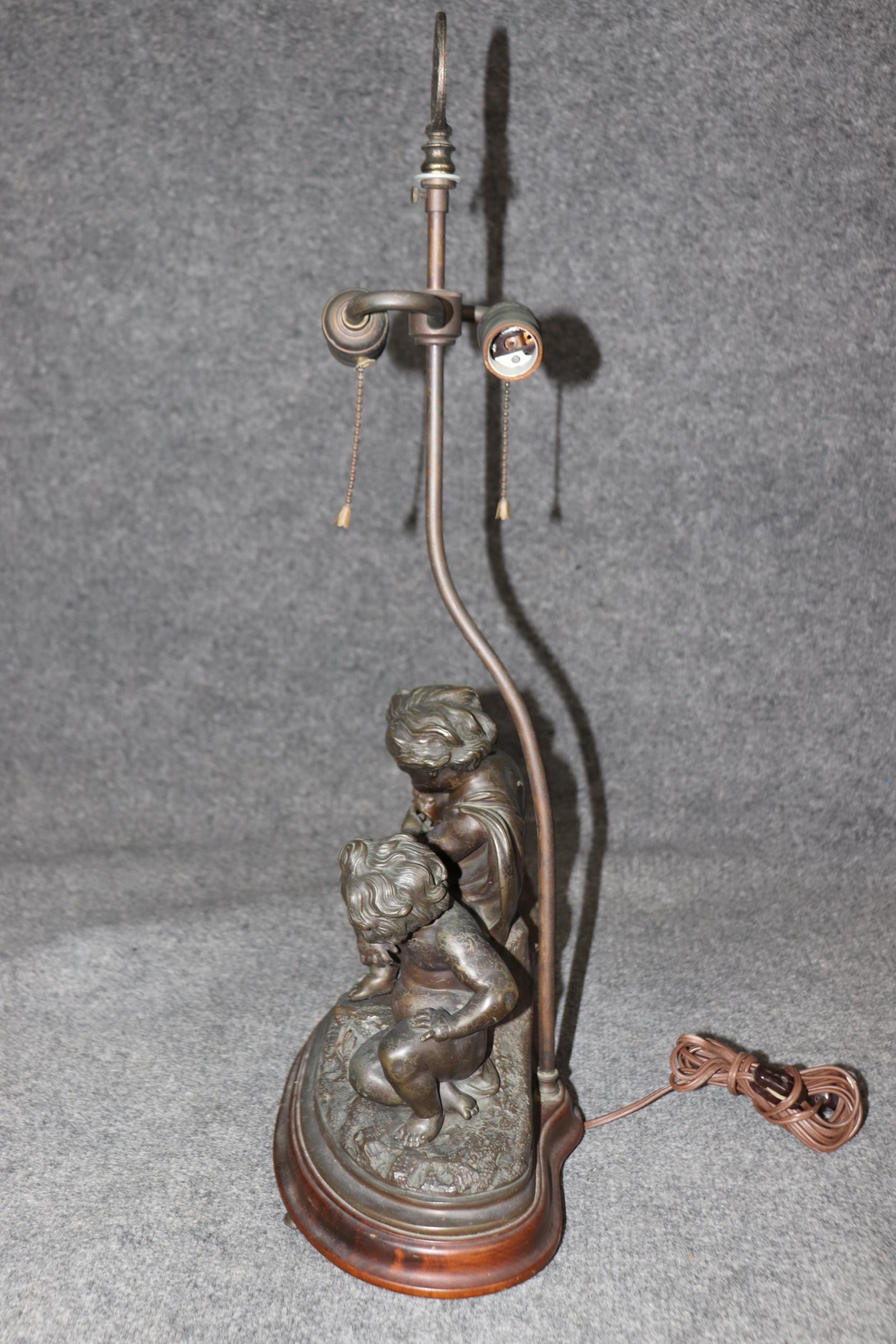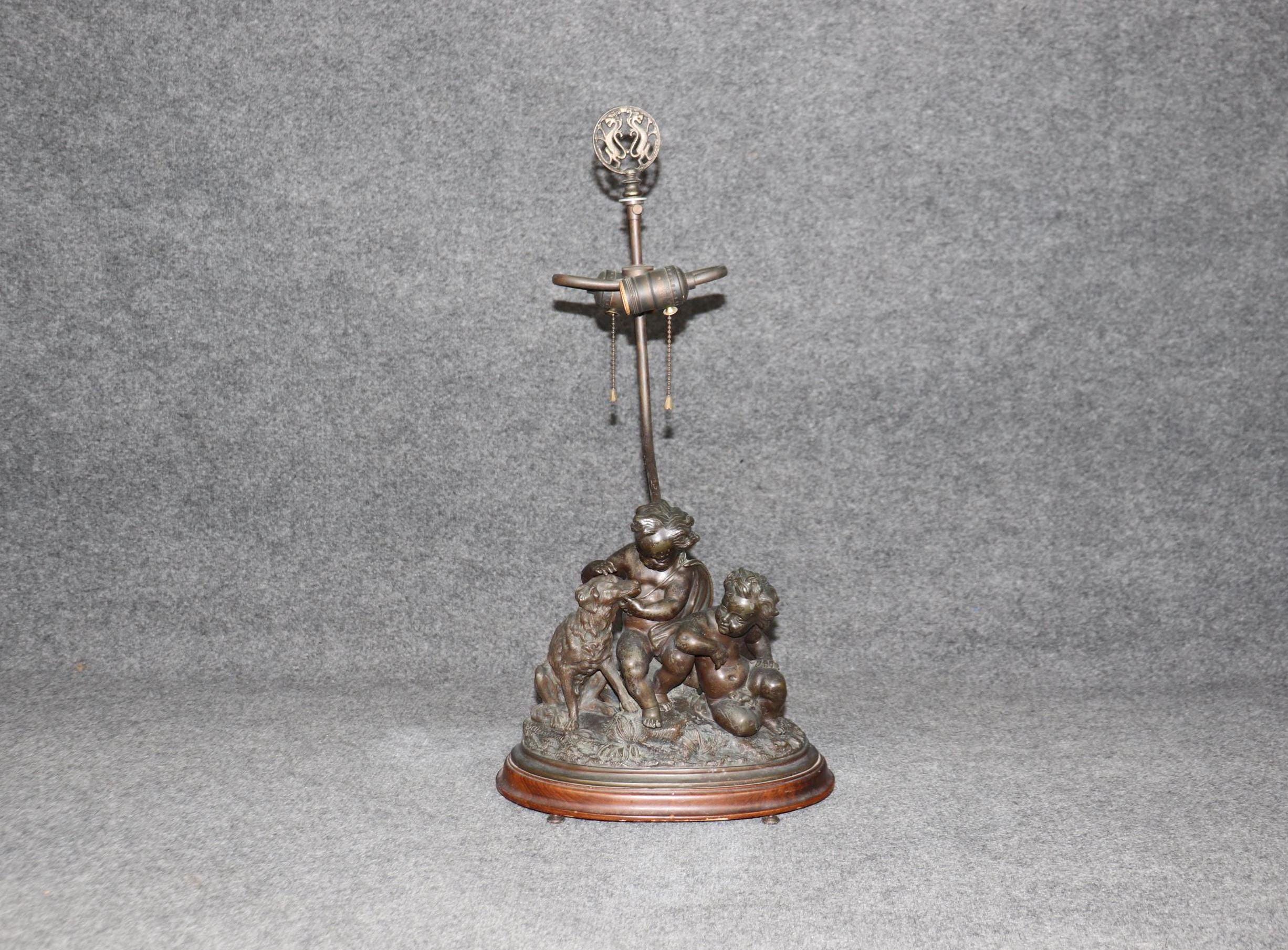 A true testament to the French decorative arts of the late 19th century, this lamp is both a functional and decorative masterpiece. Perfect for collectors or those seeking a touch of antique charm, it stands as a timeless symbol of luxury and artistic excellence and is perfect for use as a desk lamp or table lamp. The piece is in good antique condition with the exception of some tarnishing to the bronze as well as surface scratches to the cherub figures. The base also has some light surface scratching. We recommend that all lighting be rewired by a professional before use. Otherwise good condition considering age and use.