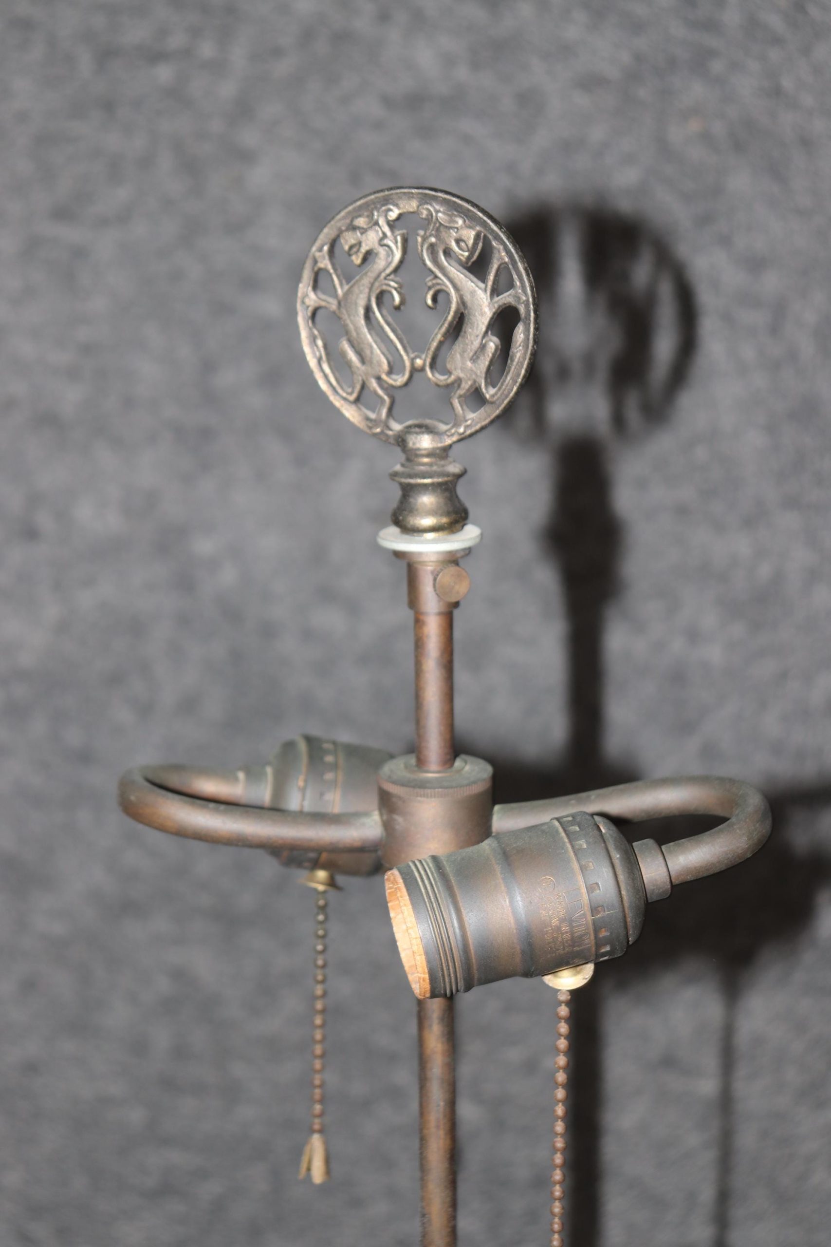 The cherub’s delicate expression and lifelike pose highlight Sauvageau’s masterful attention to detail, while the finely detailed bronze work reflects the grandeur and elegance of the period. The lamp is crowned with an intricately designed shade mount that complements the ornate base, bringing balance and refinement to the piece.