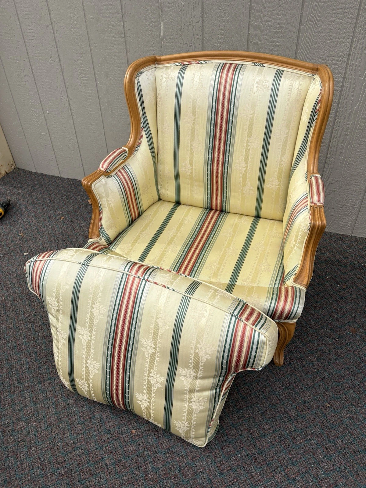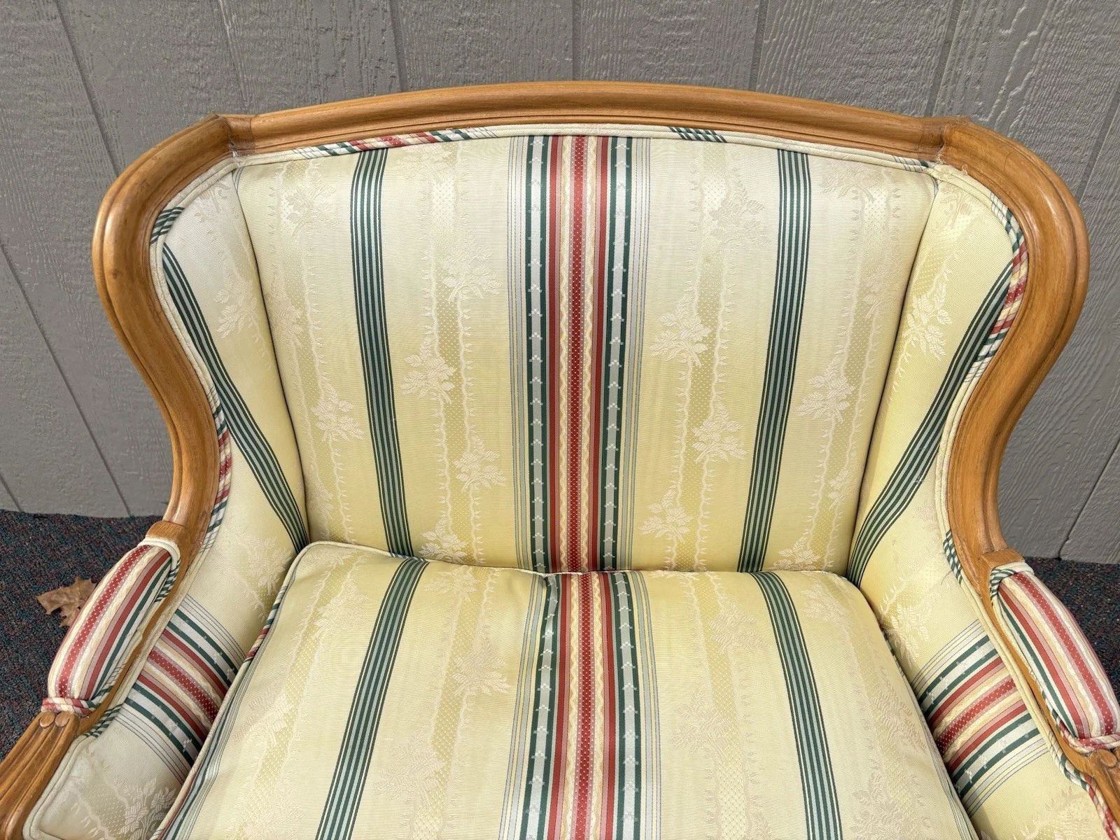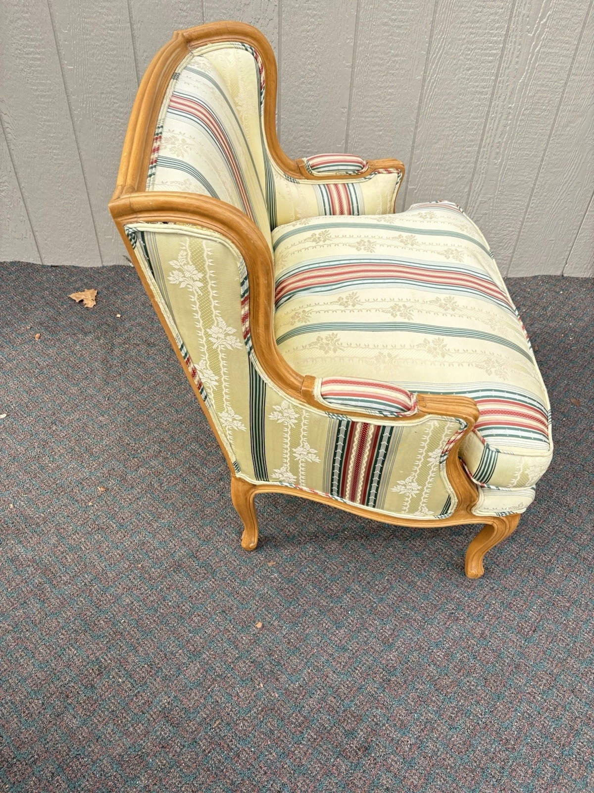 Embrace the charm of French country style with this exquisite bergere armchair, handcrafted in the United States. Its multicolored upholstery adds a vibrant touch, while the sturdy construction ensures comfort and durability for years to come. The elegant curves and generous seat invite you to relax, making it a perfect addition to any room in your home. This piece not only embodies quality craftsmanship but also carries a warm, inviting character that can transform your space into a cozy retreat.