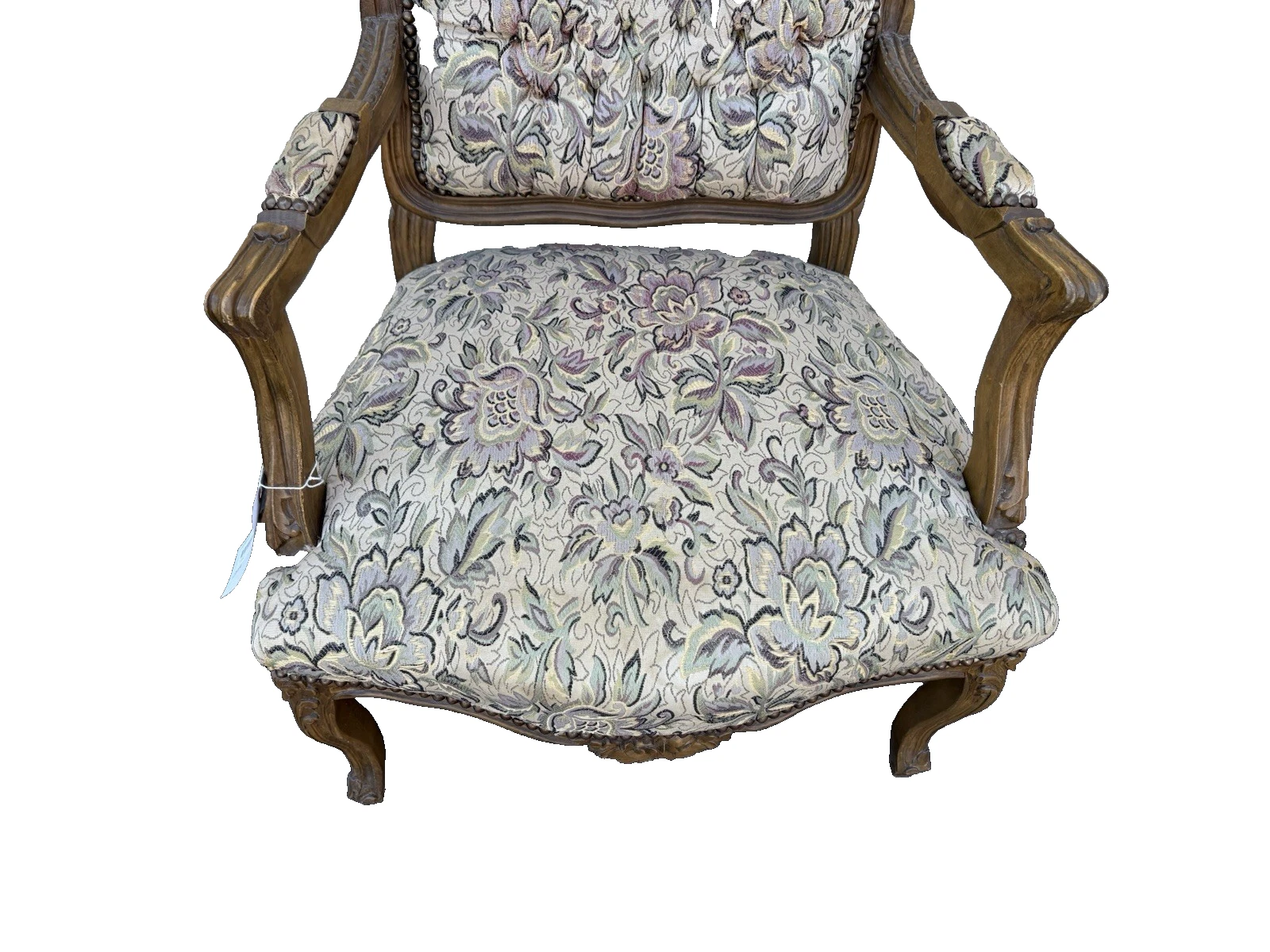 Embrace the charm of French Country design with this delightful Bergere armchair, handcrafted with care and attention to detail. Its multicolored tufted upholstery invites comfort, while the sturdy wooden frame offers both elegance and durability. This unique piece showcases the artistry of post-1950 craftsmanship, making it a perfect addition to any room that craves a touch of warmth and character. With its inviting presence, this armchair is sure to become a beloved spot in your home.