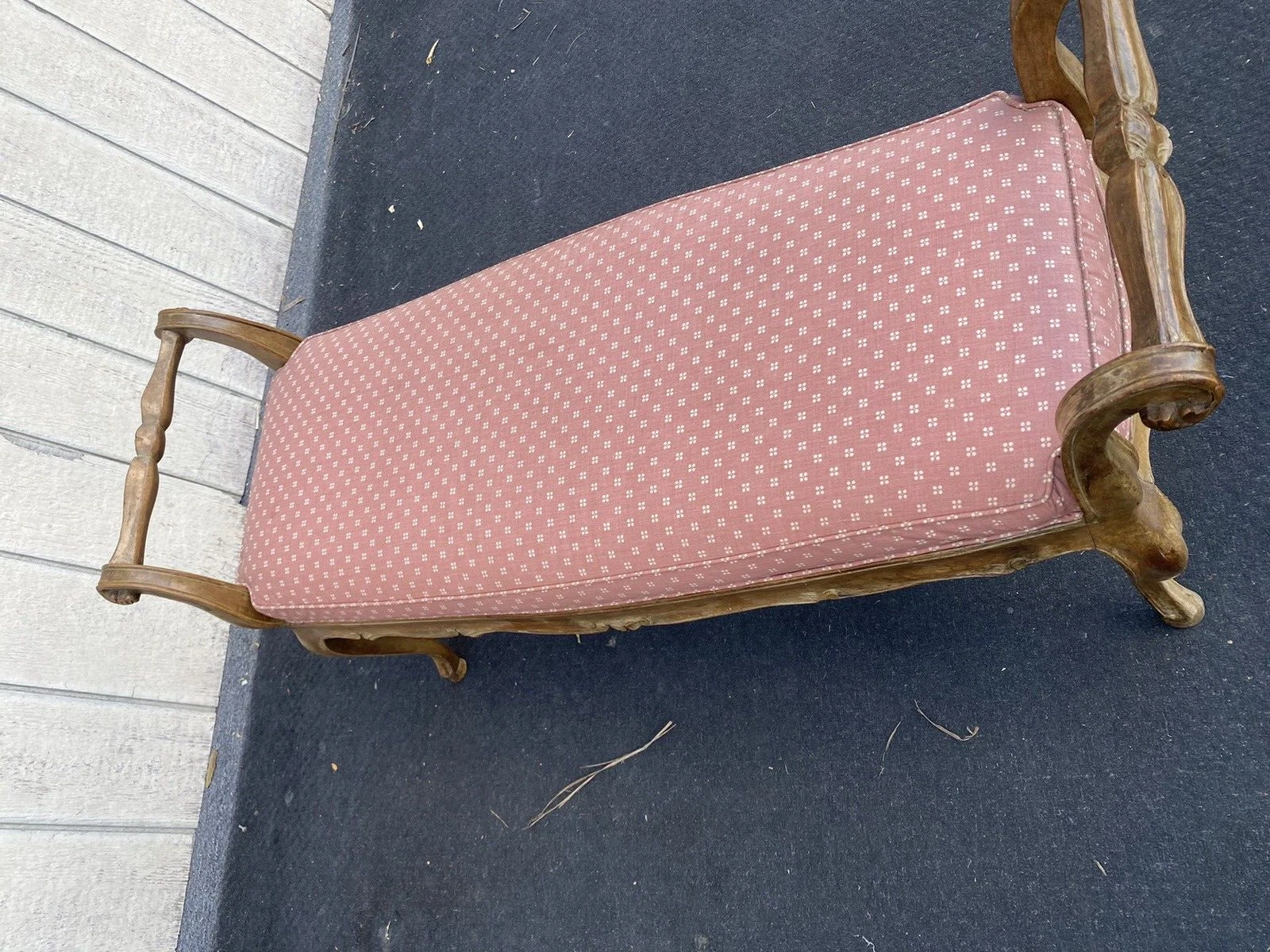 Embrace the charm of French country style with this exquisite Louis XV window bench ottoman, a delightful addition to any home. Handmade with care, its sturdy wooden frame is beautifully upholstered in a vibrant multicolor fabric, inviting you to sit and unwind. This piece not only offers comfortable seating for two but also serves as a lovely accent that enhances the warmth of your living space. Its elegant curves and timeless design reflect a rich history, making it a standout piece for those who appreciate craftsmanship and character.