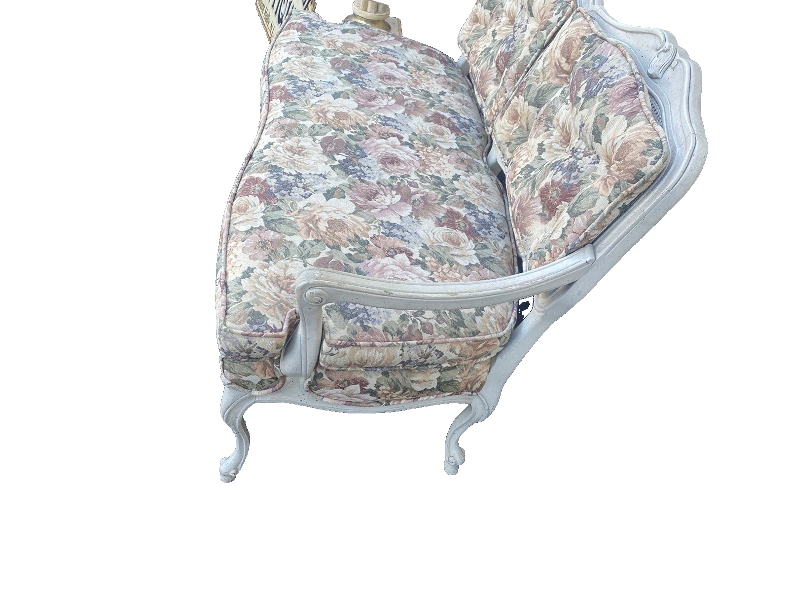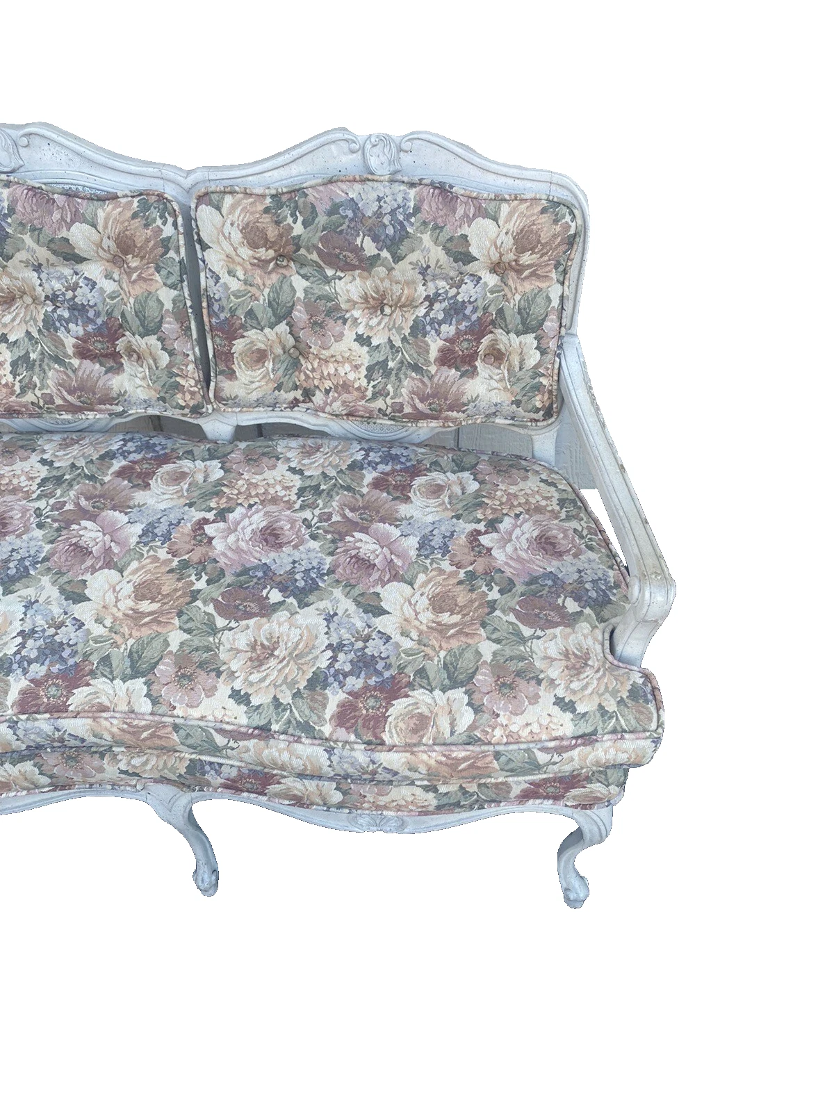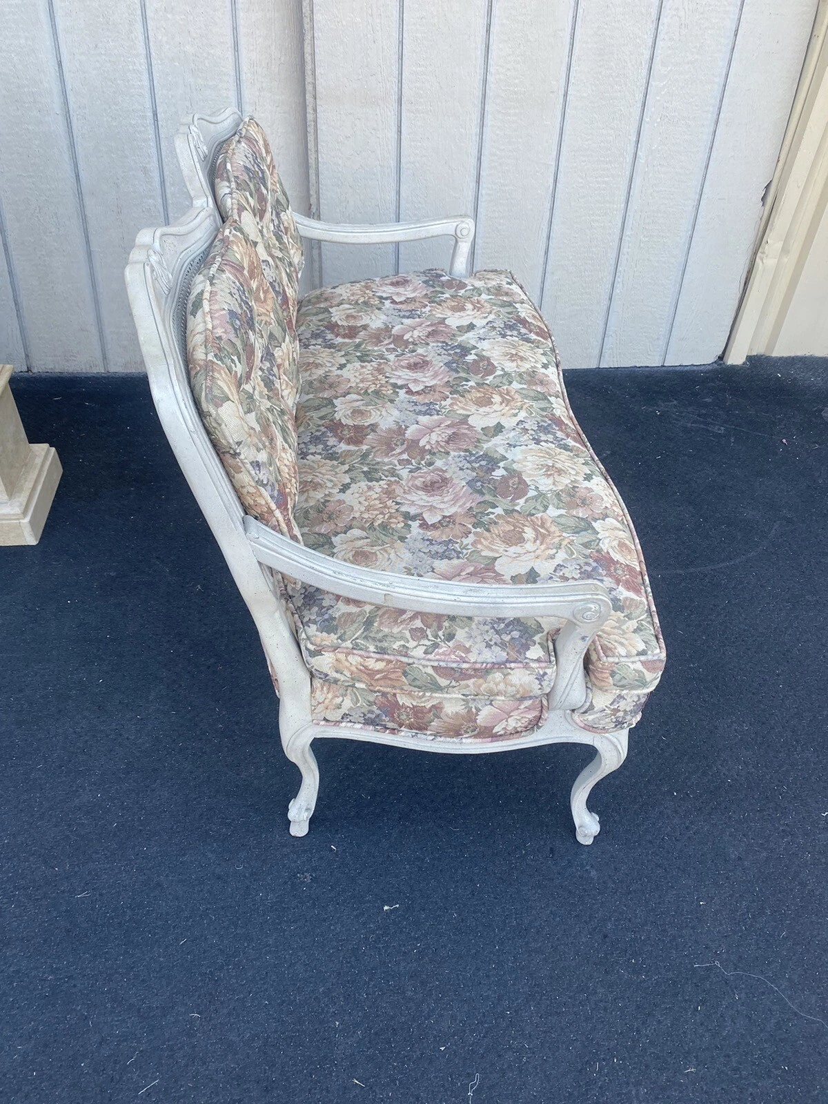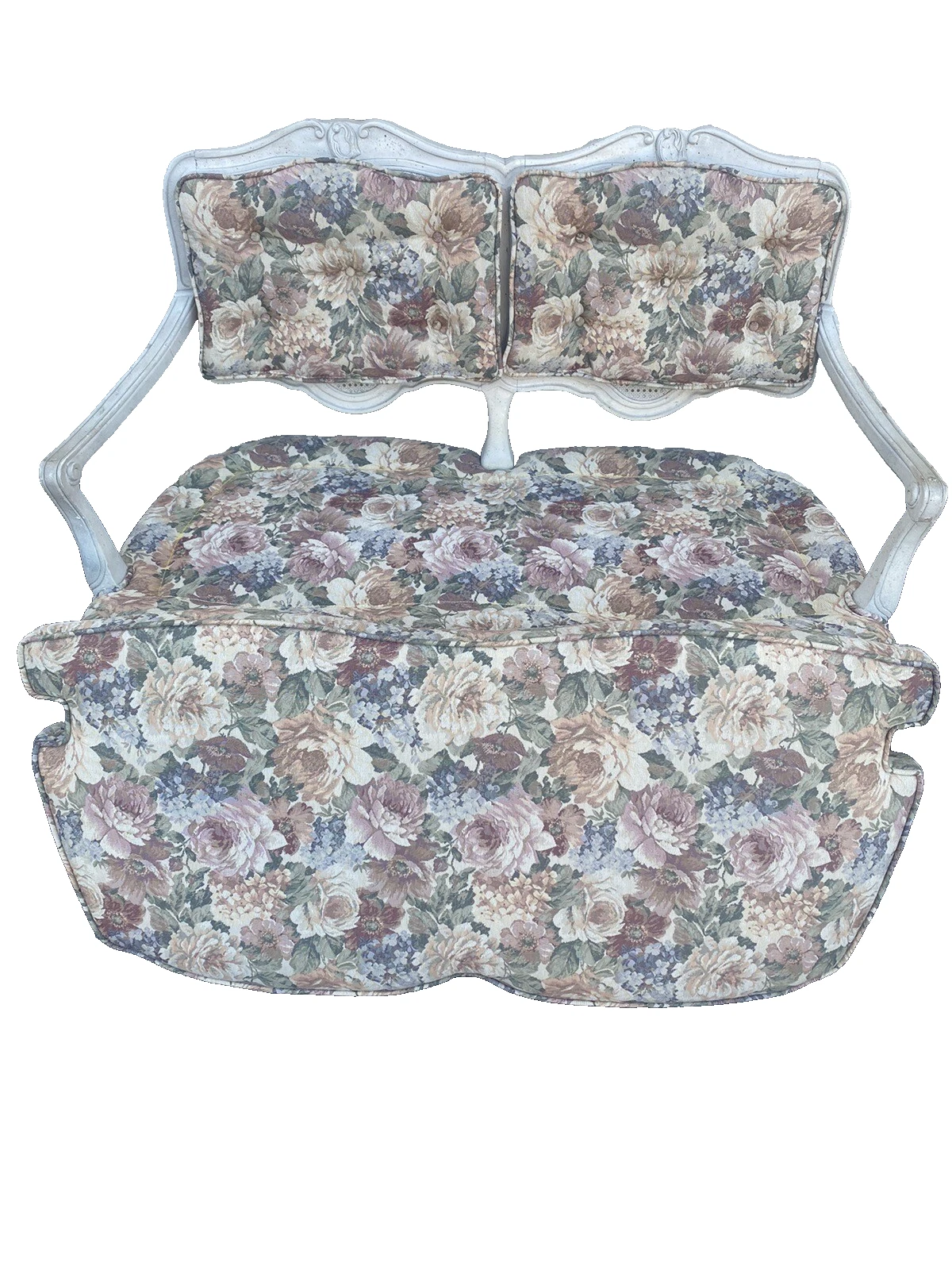 Step into a world of rustic elegance with this charming French Country settee, a perfect accent for any cozy corner of your home. The sturdy wooden frame showcases graceful lines reminiscent of Louis XV design, while the rich, multicolored fabric adds a touch of warmth and character. This piece is not just a seat; it’s an invitation to relax and enjoy moments with family and friends, embodying the inviting spirit of a family-owned home. A delightful blend of comfort and style, it will surely become a cherished focal point in your living space.