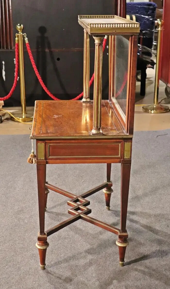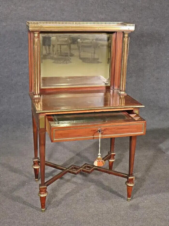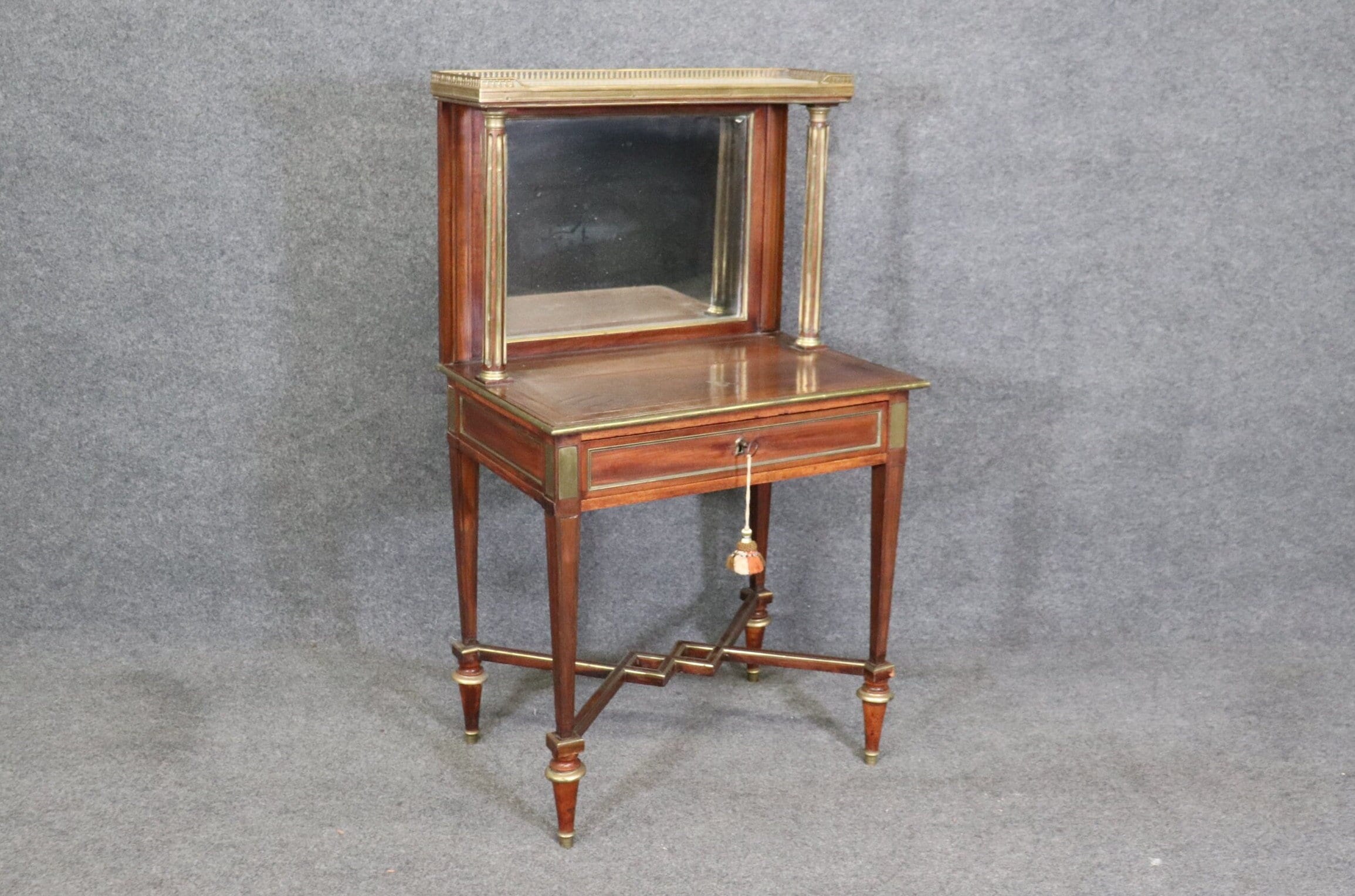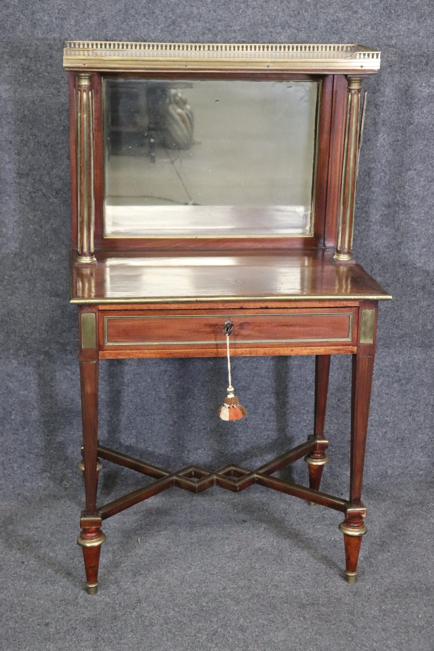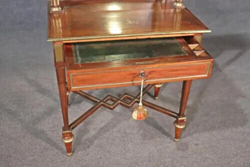 French Directoire Style Brass Trimmed Vanity Desk Circa 1890, Antique Furniture